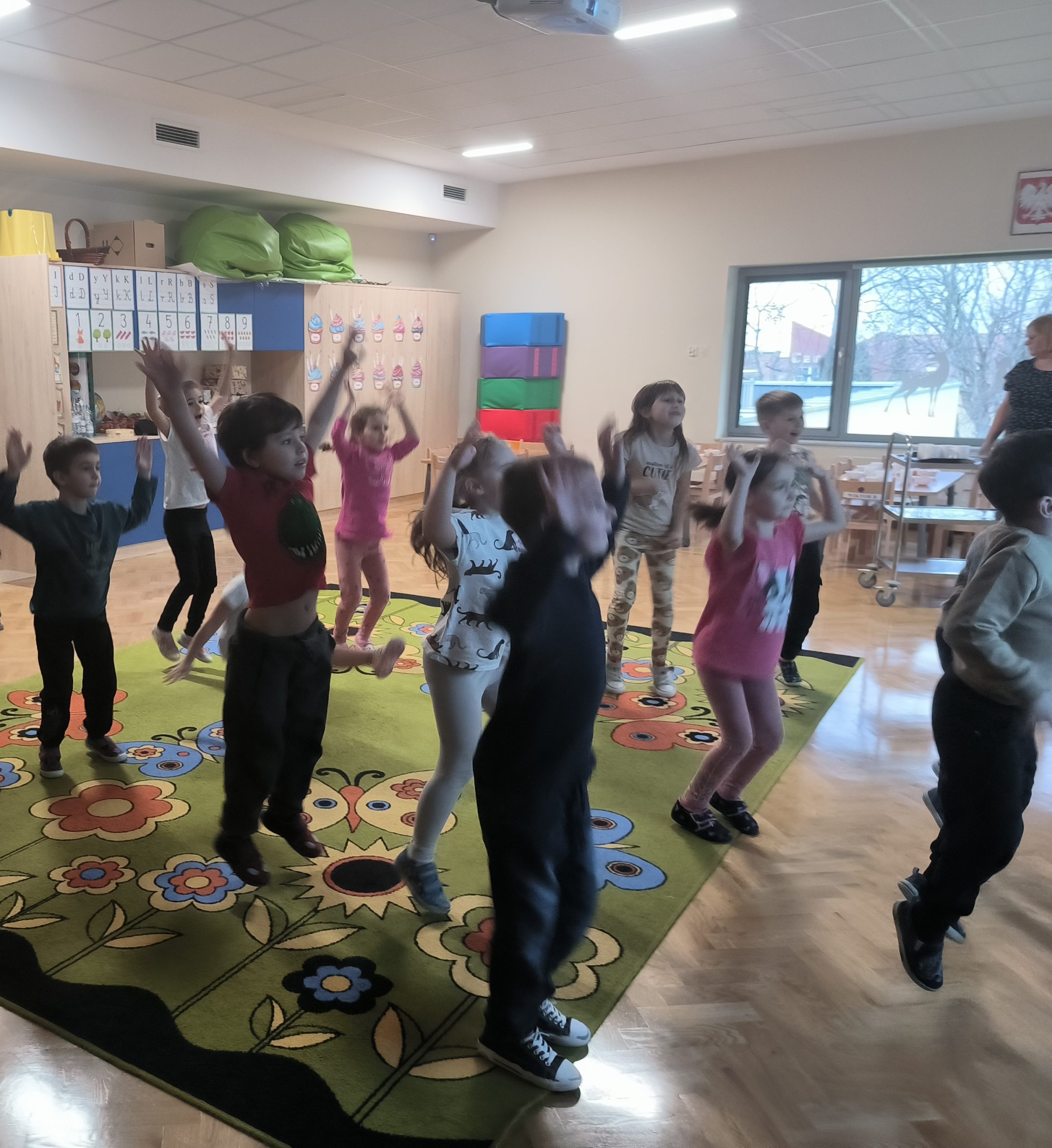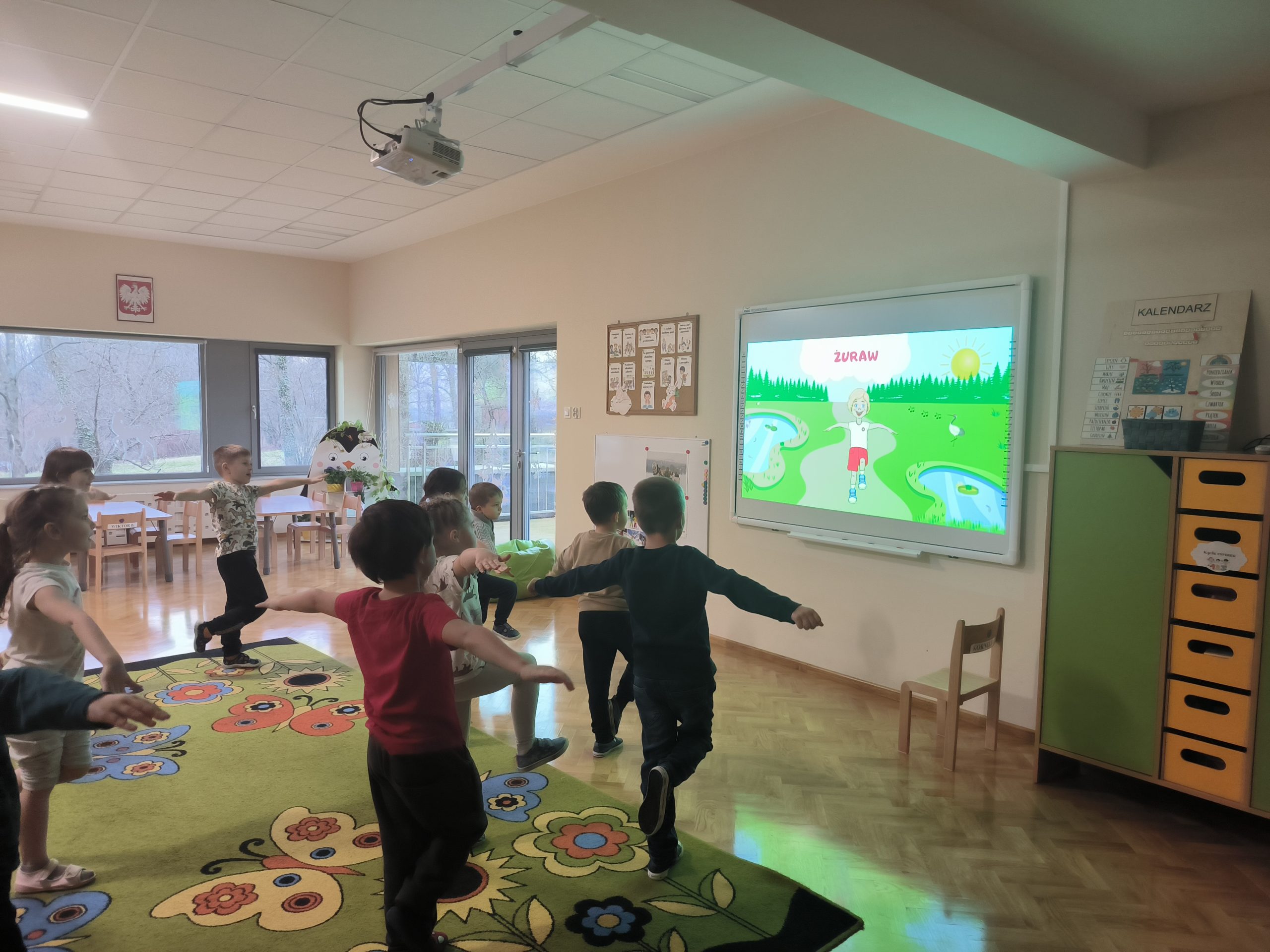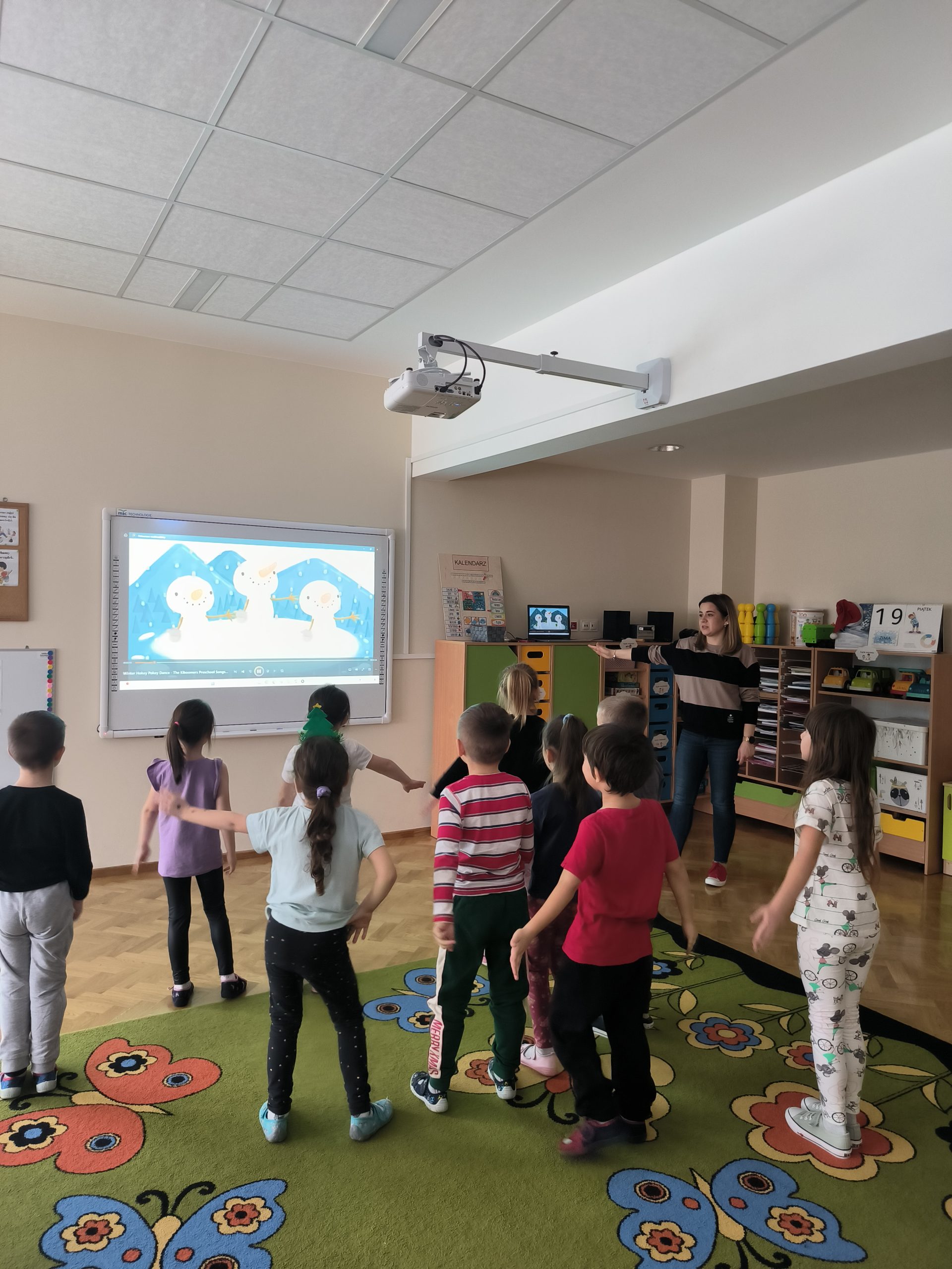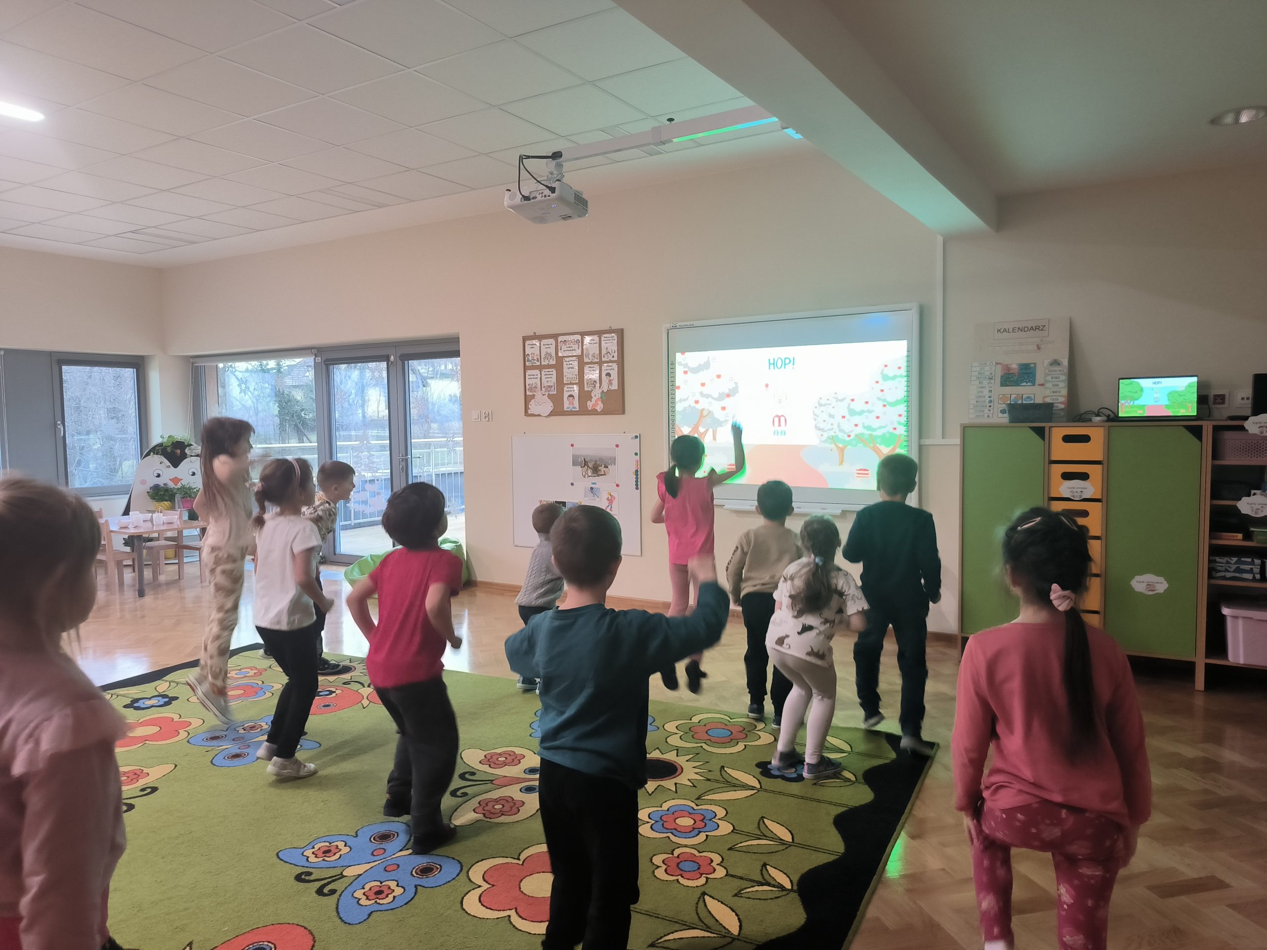 W naszej sali pojawiła się tablica multimedialna dzięki której możemy z dziećmi oglądać prezentacje, tańczyć i uczyć się. Chcemy, aby nasze przedszkole było miejscem ciekawych zabaw i rozwijania umiejętności przydatnych w codziennym życiu, takich jak choćby współpraca i radzenie sobie w różnych sytuacjach. Wreszcie by nauka była rozwijającą wszechstronnie zabawą. Dlatego proponujemy dzieciom ciekawe zajęcia z wykorzystaniem tablicy interaktywnej. To świetna pomoc do uatrakcyjnienia zajęć. Przedszkolaki mogą oglądać specjalne programy zamieszczone w Internecie, albo uczestniczyć w specjalnie dla nich przygotowanych ćwiczeniach. Tablica interaktywna służy nam do malowania obrazów, układania puzzli, przechodzenia przez labirynty, poznawania instrumentów muzycznych, tworzenia melodii, poznawania różnych kontynentów i podróży w czasie, zarówno w przeszłość jak i przyszłość. To tylko niektóre z możliwości, jakie wykorzystujemy w przedszkolu wykorzystując tablicę interaktywną.