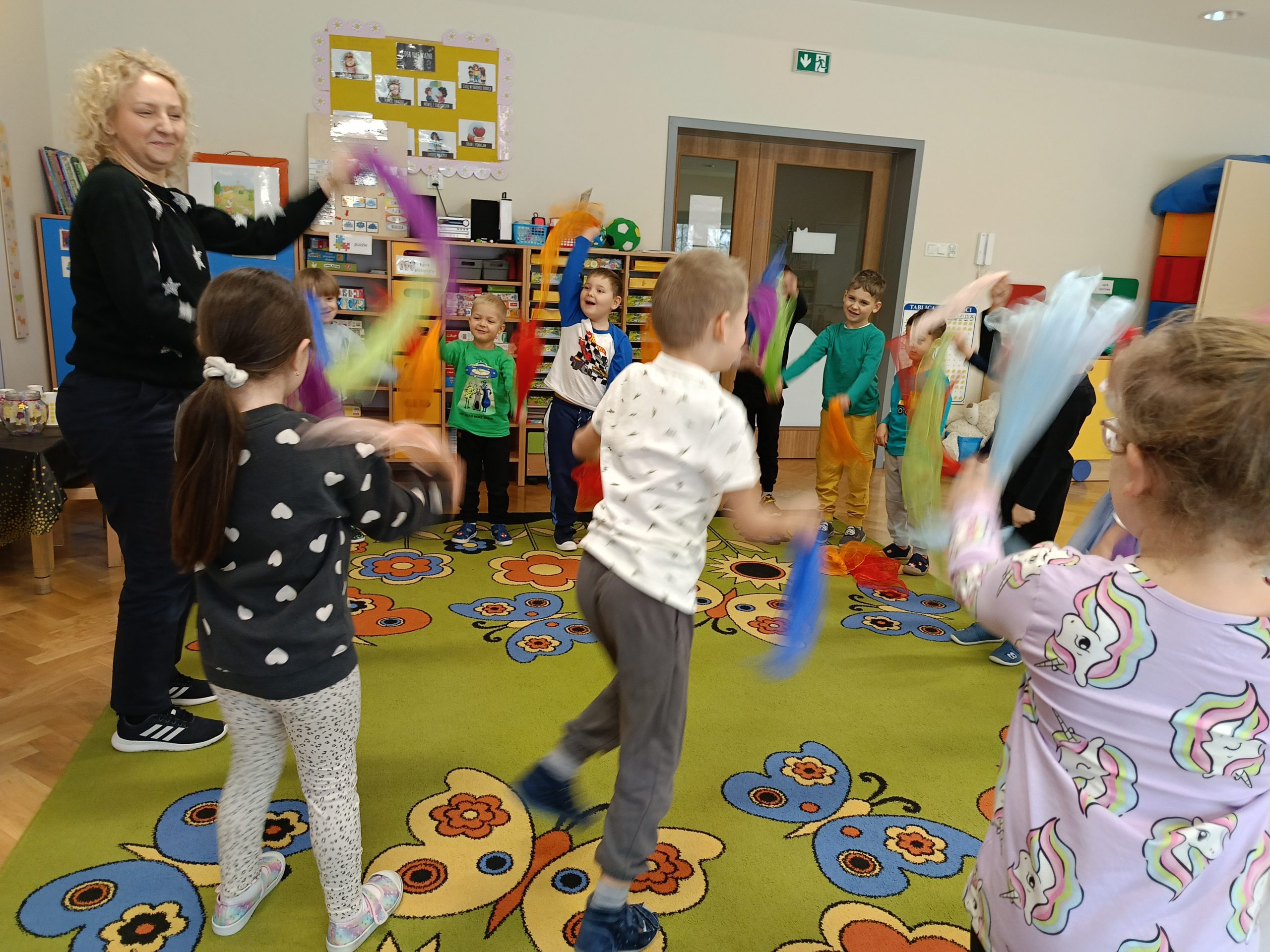 Nasze przedszkolaki spisały się wspaniale – każde zadanie zostało wykonane z ogromnym zaangażowaniem i uśmiechem. W nagrodę za wspólną pracę otrzymaliśmy andrzejkowy klucz oraz słodką niespodziankę. To właśnie wtedy rozpoczęła się prawdziwa zabawa – roztańczone andrzejkowe szaleństwo!