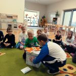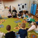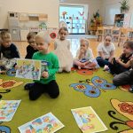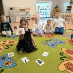W środku znaleźliśmy historyjkę obrazkową, dzięki której dowiedzieliśmy się o tradycjach andrzejkowych i wróżbach. Czekały na nas również andrzejkowe puzzle, tajemnicze niebieskie pudełko z obrazkami do podziału na głoski i sylaby oraz zestaw patyczków, z których układaliśmy różne wzory. Nie zabrakło też zadania ruchowego przy muzyce, które dostarczyło nam mnóstwo radości.