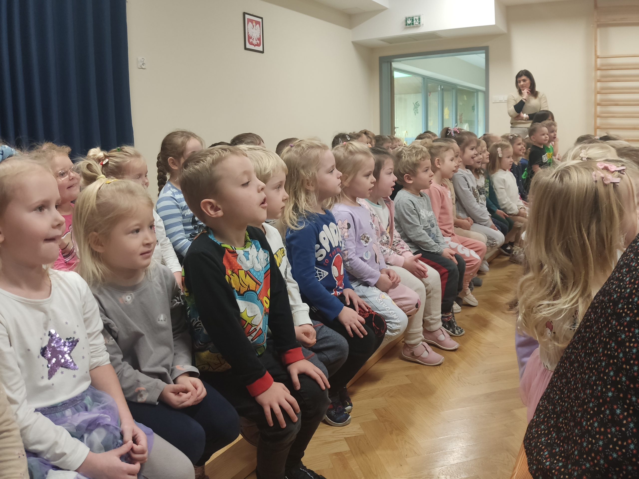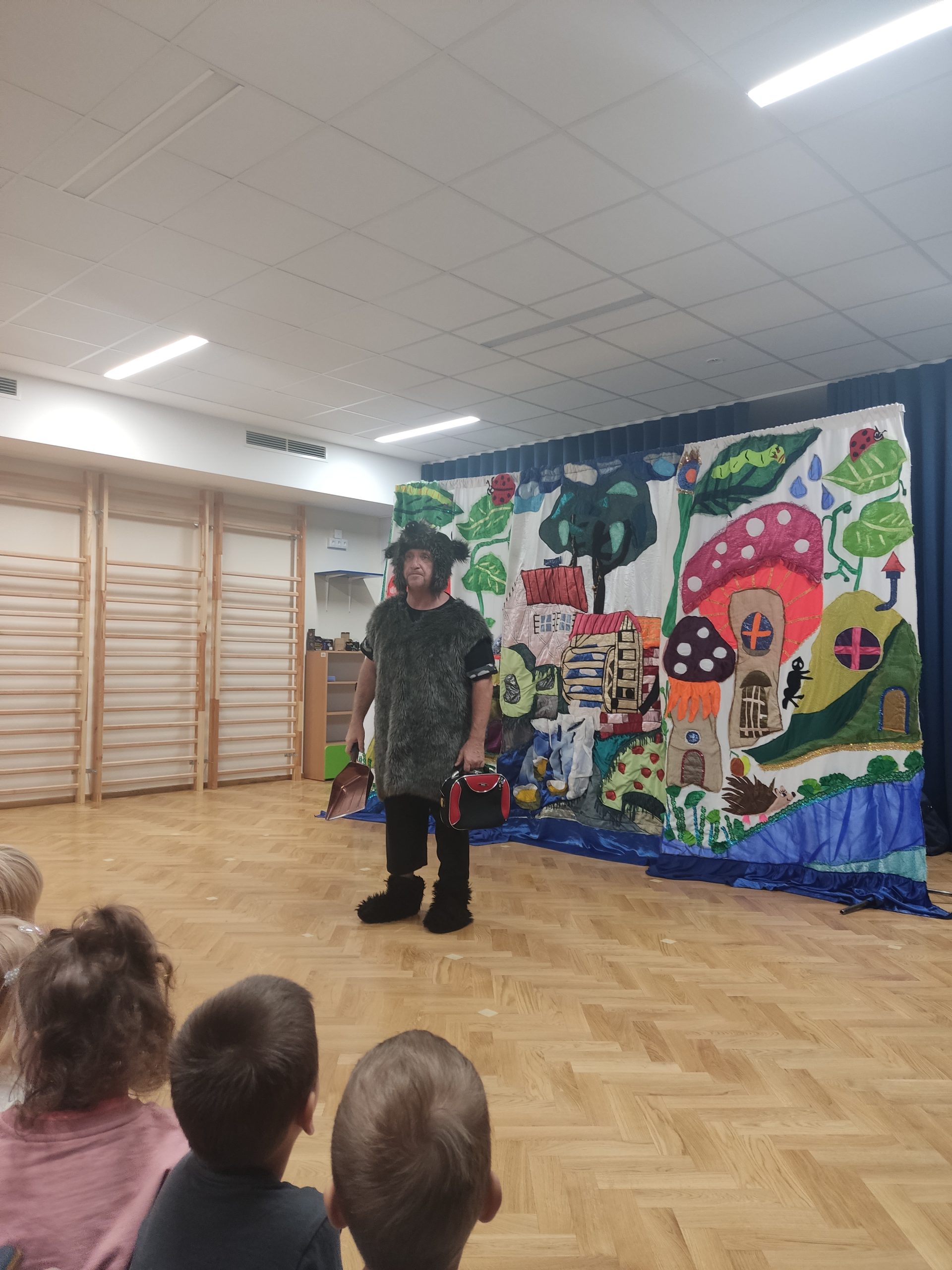Dnia 14.11.2024 roku w naszym przedszkolu odbył się spektakl, w wykonaniu Agencji Artystycznej „Kanon” z Krakowa pt. „Jesień na polanie”, w którym wzięły udział dzieci ze wszystkich grup. Była to zabawna historia wiewiórki Basi, dzika Władka, Pani Łosiowej i koziołka Miecia. Przygodom bohaterów towarzyszyły liczne humorystyczne zdarzenia. Przedszkolaki miały okazję utrwalić wiadomości dotyczące mieszkańców lasu, ich zwyczajów oraz sposobów przygotowywania się do zimy, a także cech charakterystycznych dla poszczególnych pór roku. Przesłaniem bajki była nauka systematyczności, odpowiedzialności i niesienia pomocy innym.