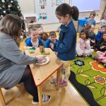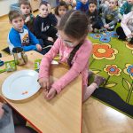 W ramach projektu Akademia Przyrodnika Żubra Pompika dzieci uczestniczyły w zajęciach pt. „ Tęcza”. Zajęcia były doskonałą okazją do poznania zjawiska powstawania tęczy oraz do utrwalenia nazw kolorów poprzez zabawę. Cały dzień wypełniony był kolorowymi zabawami, eksperymentami oraz ciekawymi pracami plastycznymi. Na początku dzieci wysłuchały opowiadania „Gdzie jest początek tęczy ” oraz obejrzały film edukacyjny „Jak powstaje tęcza”. Następnie przedszkolaki bawiły się kolorami i stworzyły ogromną kolorową tęczę. Nie zabrakło również ciekawych eksperymentów. Na zakończenie dnia przedszkolaki uczestniczyły