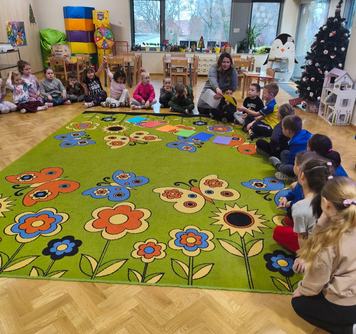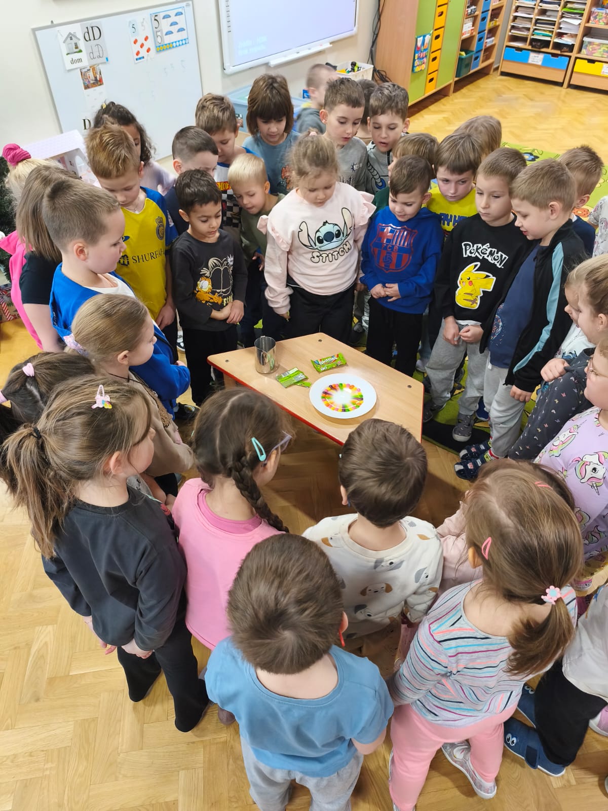 W ramach projektu Akademia Przyrodnika Żubra Pompika dzieci uczestniczyły w zajęciach pt. „ Tęcza”. Zajęcia były doskonałą okazją do poznania zjawiska powstawania tęczy oraz do utrwalenia nazw kolorów poprzez zabawę. Cały dzień wypełniony był kolorowymi zabawami, eksperymentami oraz ciekawymi pracami plastycznymi. Na początku dzieci wysłuchały opowiadania „Gdzie jest początek tęczy ” oraz obejrzały film edukacyjny „Jak powstaje tęcza”. Następnie przedszkolaki bawiły się kolorami i stworzyły ogromną kolorową tęczę. Nie zabrakło również ciekawych eksperymentów. Na zakończenie dnia przedszkolaki uczestniczyły