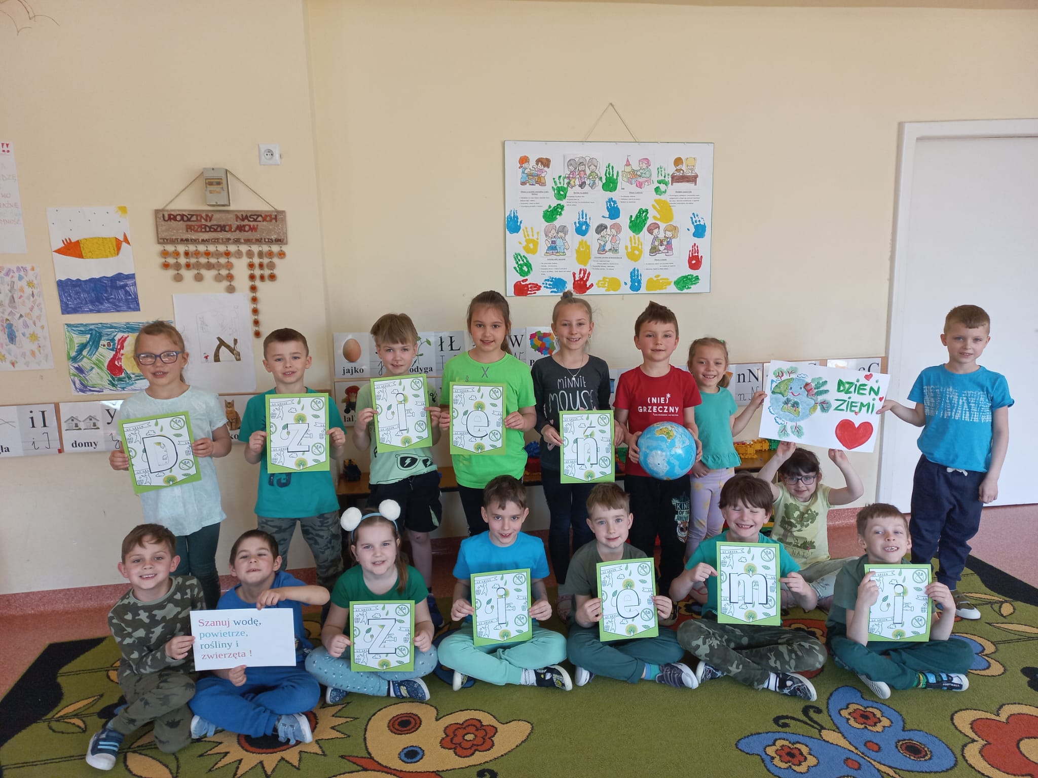 Podczas zajęć dydaktycznych dzieci dowiedziały się jak dbać o środowisko i otaczającą nas przyrodę. Przedszkolaki w praktyczny sposób mogły wykorzystać swoją wiedzę na temat segregacji śmieci wrzucając odpady do odpowiednich pojemników. Wesoło bawiliśmy się przy piosence ekologicznej „Ziemia to wyspa zielona” oraz braliśmy udział w licznych konkursach, tj.: „slalom ekologiczny”, „worki na śmieci”, „celuj do kosza”. Dzieci rozwiązywały zagadki o tematyce ekologicznej oraz zadania umysłowe „zabawy mądrej głowy”. Przedszkolaki wykonały prace plastyczne zachęcające do ochrony Ziemi przed zanieczyszczeniem.