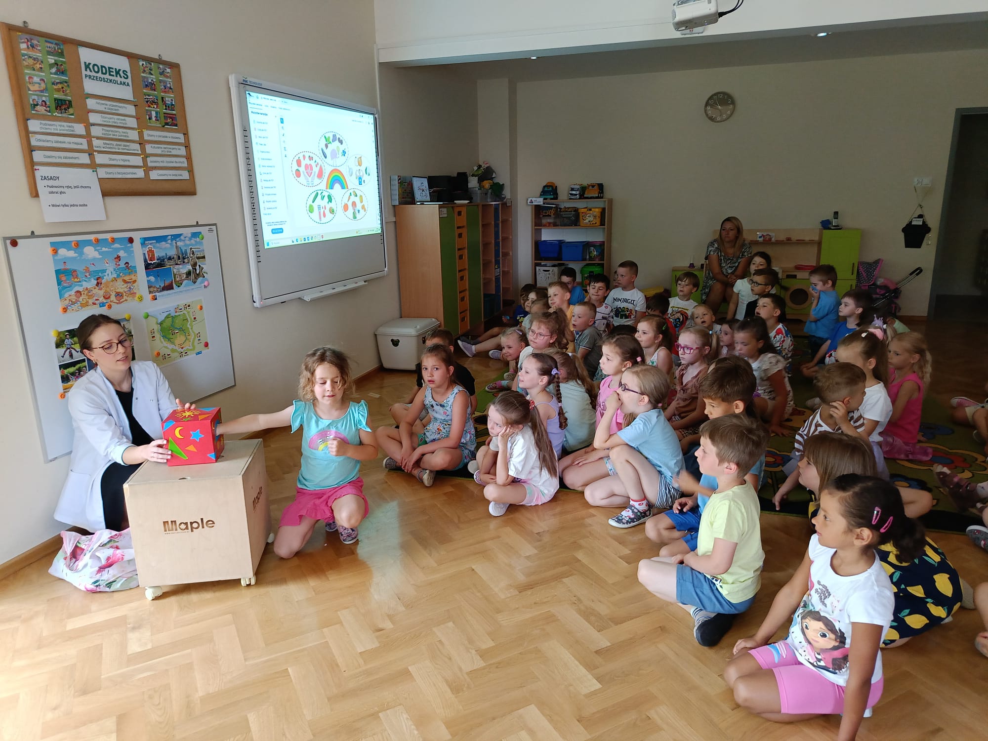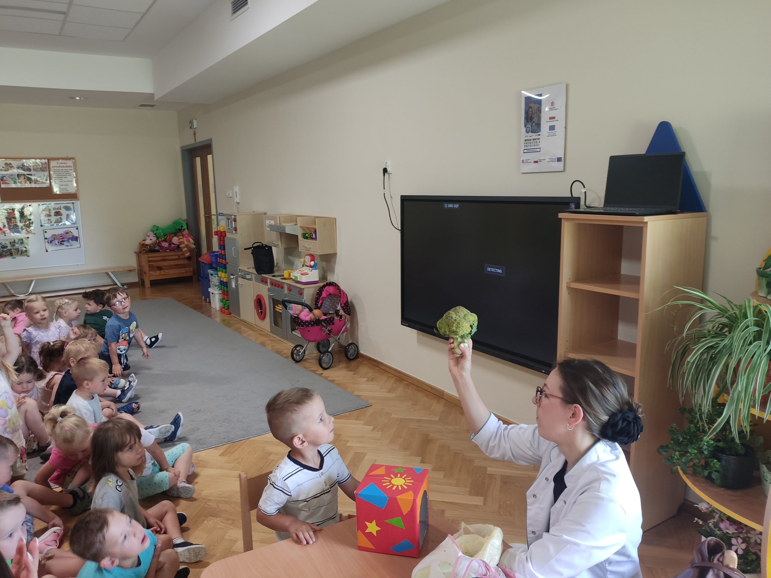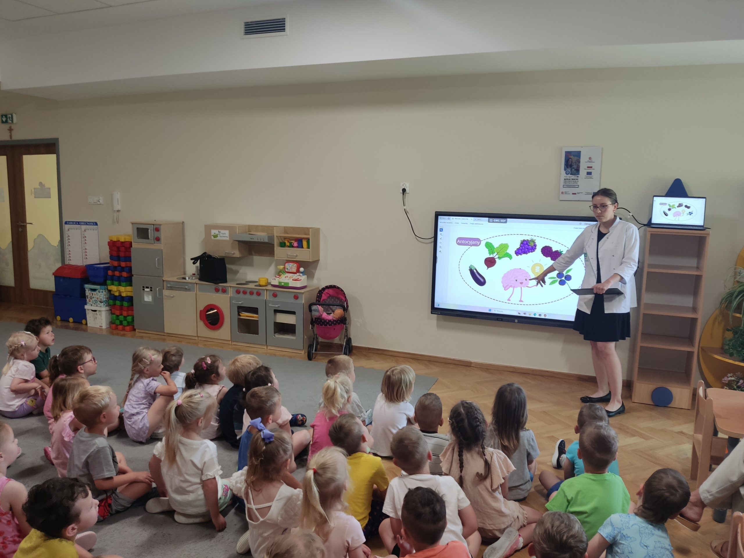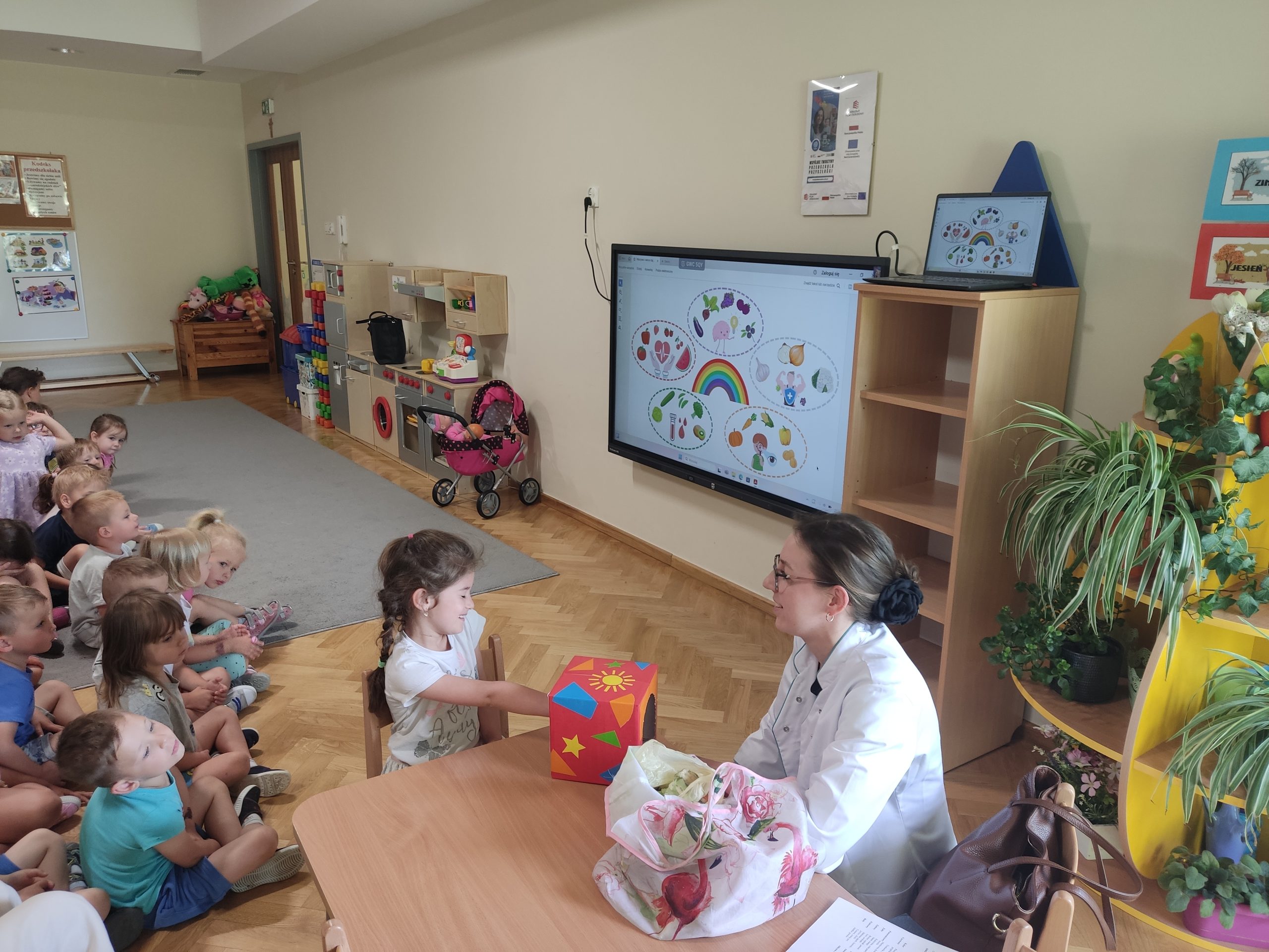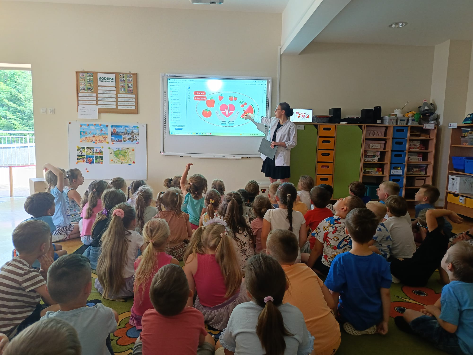 Dzieci chętnie uczestniczyły w spotkaniu, wypowiadały się na temat zdrowego odżywiania, co świadczy o ich dużym zaangażowaniu i ciekawości. To inspirujące spotkanie z dietetykiem na pewno przyczyni się do kształtowania zdrowych nawyków wśród naszych przedszkolaków, które będą towarzyszyć im na co dzień.