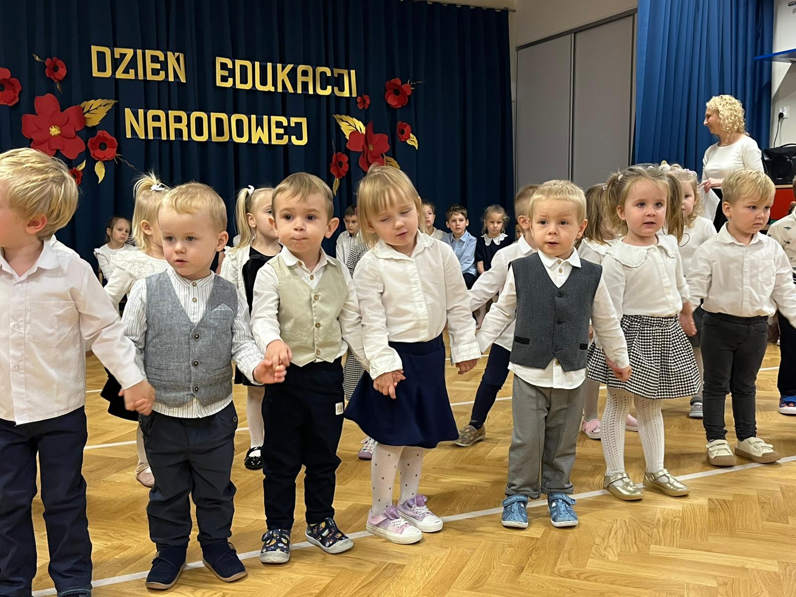14 października br. w naszym przedszkolu odbyła się uroczysta akademia z okazji Dnia Edukacji Narodowej. Cała społeczność przedszkolna spotkała się na apelu przygotowanym przez dzieci z grupy Lisków. Pod czujnym okiem swoich pań, młodzi artyści zaprezentowali piękną część artystyczną. Występy dzieci – pełne radości, wzruszeń i uśmiechu – uświetniły ten szczególny dzień w roku. Nie zabrakło wierszy obrazujących pracę nauczycieli i wszystkich pracowników przedszkola, piosenek z życzeniami oraz tańców. Dzieci złożyły serdeczne podziękowania za uśmiech, życzliwość i trud włożony w ich wychowanie – za okazane serce, dobre rady, czyste sale oraz smaczne posiłki. Piosenki i tańce przygotowane przez dzieci ze wszystkich grup były prawdziwym wyrazem wdzięczności i uznania dla codziennej pracy całego personelu przedszkola. Występy dzieci pokazały, jak ważni są wszyscy, którzy tworzą ciepłą, bezpieczną i rozwijającą przestrzeń dla najmłodszych.