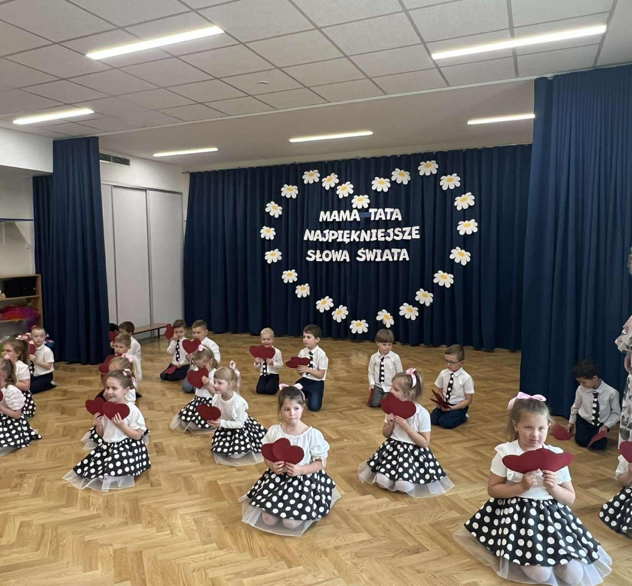 Dzieci z ogromnym zaangażowaniem i radością dziękowały swoim rodzicom za miłość, troskę i codzienne wsparcie. Po części artystycznej nadszedł czas na wspólną, muzyczną zabawę oraz wręczenie upominków.
