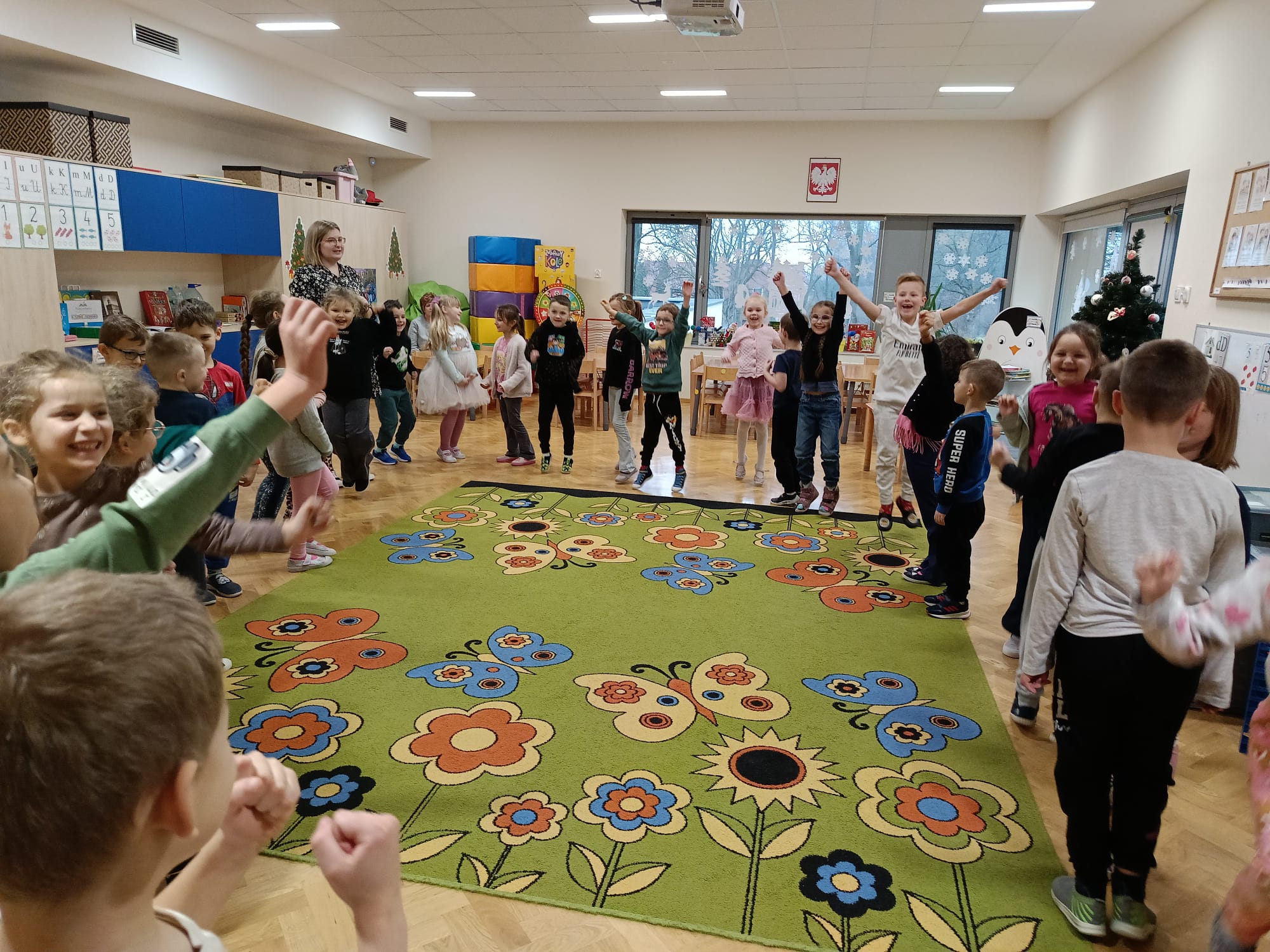 Nie zabrakło także zabaw ruchowych – przedszkolaki wyrażały emocje w tańcu i przy muzyce, odkrywając, że każde uczucie ma swoją energię i kolor. Zajęcia dostarczyły wszystkim wielu wrażeń i pomogły lepiej zrozumieć świat emocji.