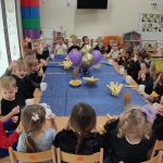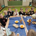 Co roku w naszym przedszkolu podtrzymujemy tradycje związane z Andrzejkami. Także i w tym roku wydarzeniu towarzyszyły liczne konkursy, zabawy oraz wróżby, które wprowadziły dzieci w wyjątkowy, magiczny nastrój. „Jeżyki” z uśmiechem na twarzy i dużym zaangażowaniem brały udział w andrzejkowych rytuałach, odkrywając tajemnice dawnych zwyczajów. Z okazji święta zorganizowano również zabawy integracyjne z grupą „Wiewiórek”, nawiązujące do dawnych polskich obrzędów i zwyczajów. Dzieci świetnie bawiły się podczas zabaw z gumą sensoryczną oraz podczas tańców w parach — zarówno na gazecie, jak i z balonem. Bardzo pysznym akcentem był słodki poczęstunek sfinansowany przez Radę Rodziców, który sprawił przedszkolakom wiele radości.
