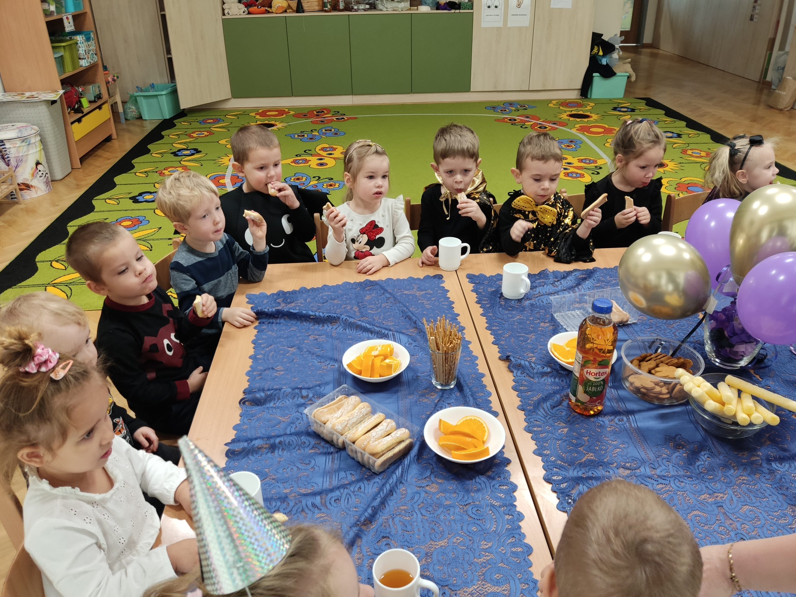 Co roku w naszym przedszkolu podtrzymujemy tradycje związane z Andrzejkami. Także i w tym roku wydarzeniu towarzyszyły liczne konkursy, zabawy oraz wróżby, które wprowadziły dzieci w wyjątkowy, magiczny nastrój. „Jeżyki” z uśmiechem na twarzy i dużym zaangażowaniem brały udział w andrzejkowych rytuałach, odkrywając tajemnice dawnych zwyczajów. Z okazji święta zorganizowano również zabawy integracyjne z grupą „Wiewiórek”, nawiązujące do dawnych polskich obrzędów i zwyczajów. Dzieci świetnie bawiły się podczas zabaw z gumą sensoryczną oraz podczas tańców w parach — zarówno na gazecie, jak i z balonem. Bardzo pysznym akcentem był słodki poczęstunek sfinansowany przez Radę Rodziców, który sprawił przedszkolakom wiele radości.