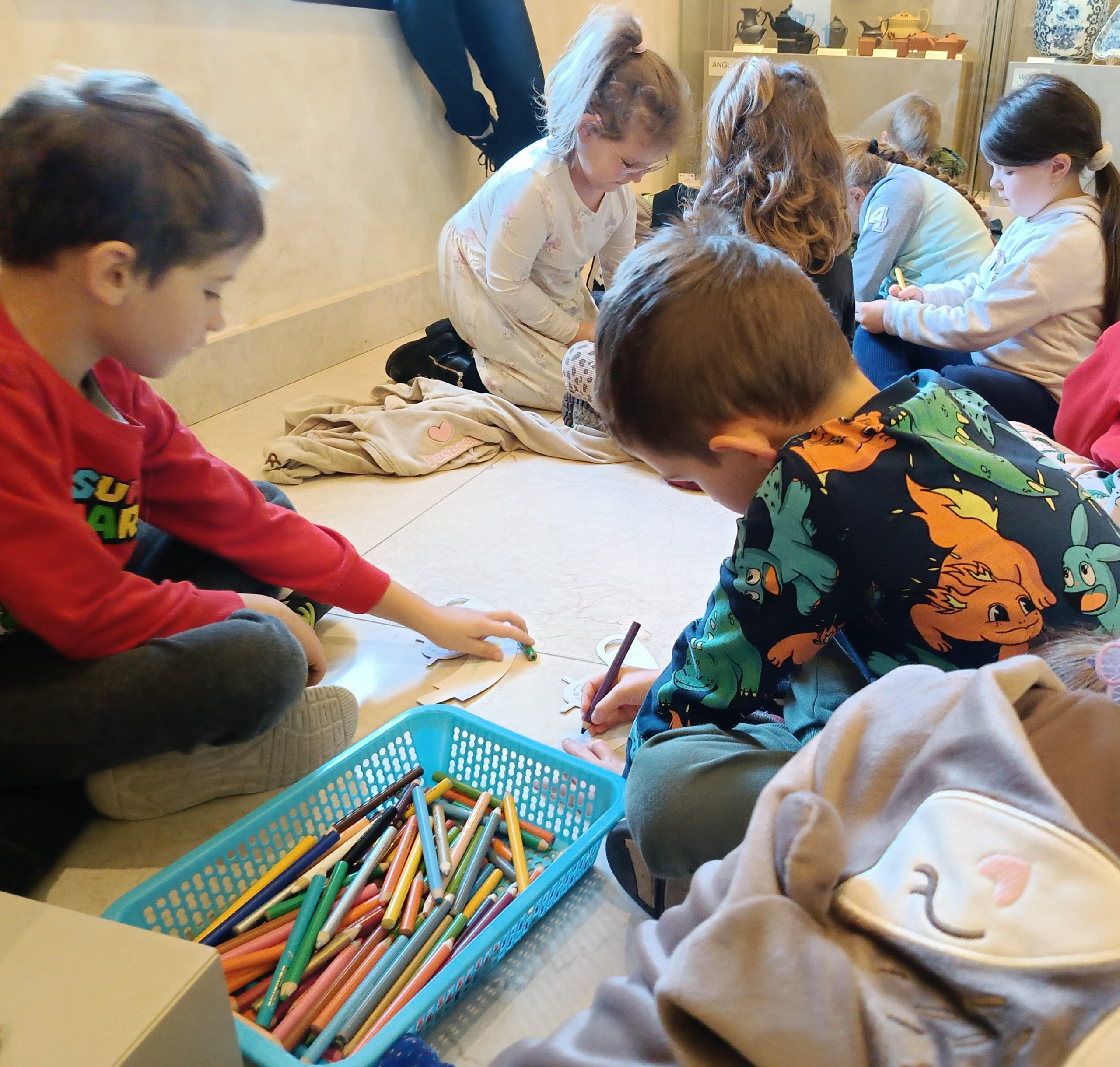Na zakończenie zajęć przedszkolaki wcieliły się w rolę artystów – każde dziecko ozdobiło własną filiżankę, tworząc wyjątkowe i kolorowe dzieła inspirowane muzealnymi eksponatami.