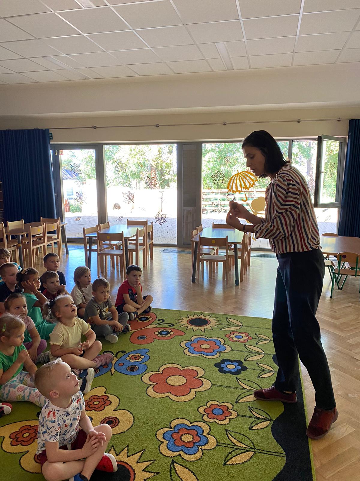 W naszym przedszkolu w dniu 21 września odbyły się warsztaty ekologiczne. Przedszkolaki dowiedziały się jakie są rodzaje drzew, jakie zwierzęta zamieszkują polskie lasy. Oglądaliśmy skarby przyrody z użyciem lup. Wiemy już, że las to życie i chcemy dbać o przyrodę najlepiej jak potrafimy!