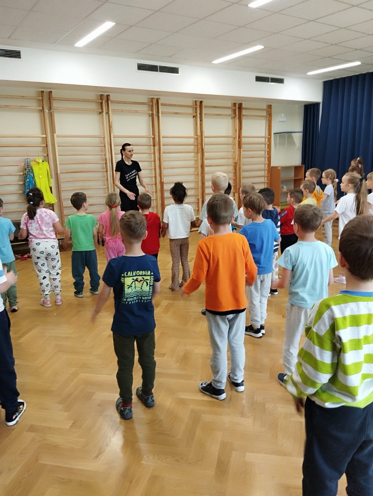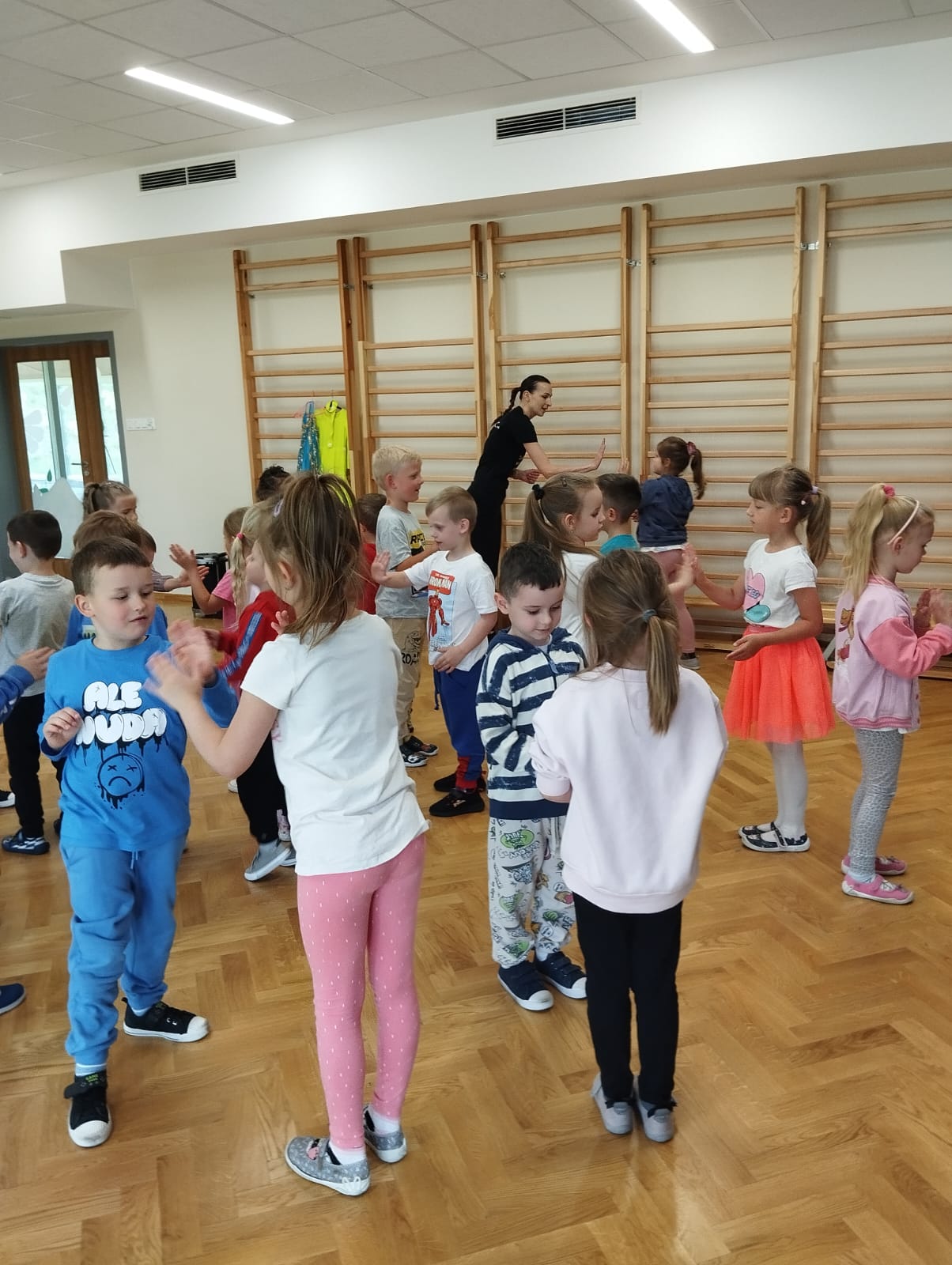 Taniec ma za zadanie wspierać wszechstronny rozwój. Dzieci tańcząc uczą się koordynacji i panowania nad własnym ciałem. Taniec wyrabia poczucie rytmu. W naszym przedszkolu odbyły się warsztaty taneczne poprowadzone przez Panią Karolinę– instruktora tańca .Dzieci miały okazję uczestniczyć w profesjonalnej rozgrzewce, po której nauczyły się pierwszych kroków tańca. Przedszkolaki miały okazję zatańczyć do różnych utworów muzycznych. Dzieci były bardzo zaangażowane, a uśmiechy towarzyszyły wszystkim.
