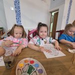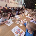 Podczas warsztatów przedszkolaki z wielkim zaangażowaniem tworzyły własne prace plastyczne. Ozdabiały pisanki, przygotowywały palmy wielkanocne oraz ćwiczyły precyzyjne malowanie kwiatowych wzorów farbami, inspirowanych kwiatowymi motywami Malowanej Wsi.