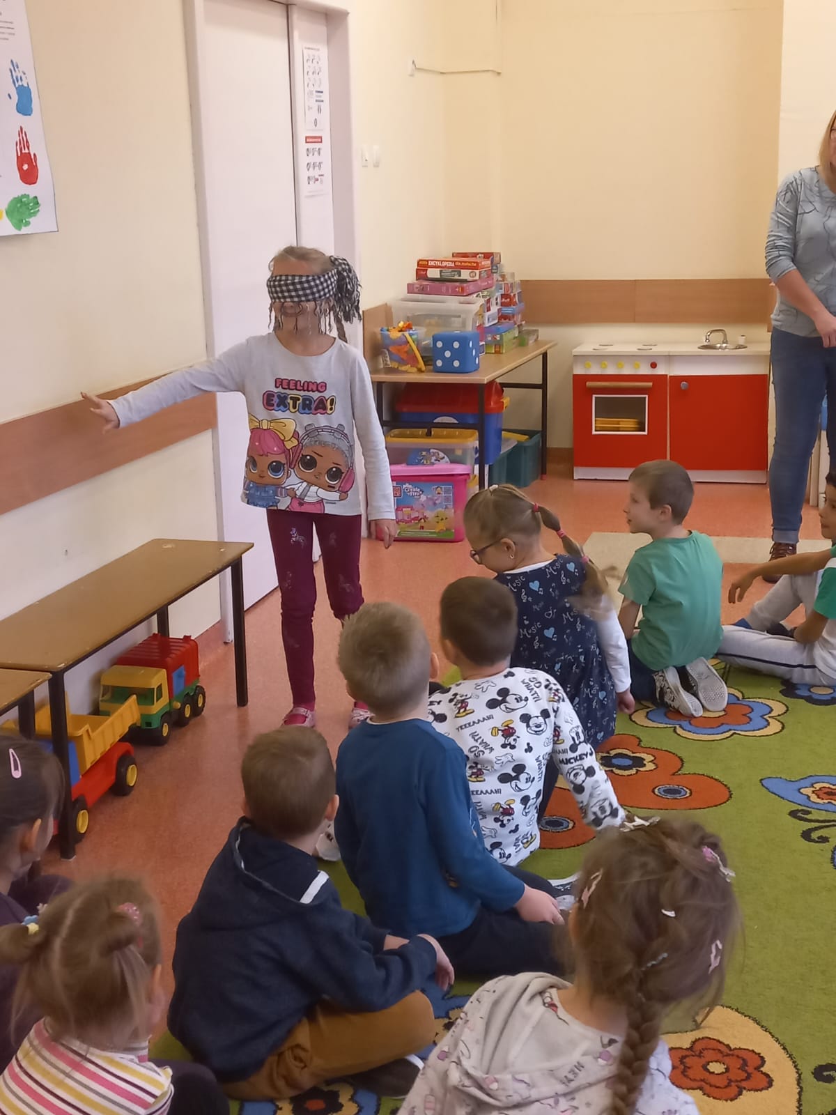 W dniach 16-17 XI w naszym przedszkolu w trzech najstarszych grupach zostały przeprowadzone warsztaty przez panią pedagog specjalny Elżbietę Gil pt. ” Co to jest niepełnosprawność ?”. Zajęcia przebiegały w miłej atmosferze, dzieci mogły z nich dowiedzieć się: kto to jest człowiek niepełnosprawny? – przy pomocy burzy mózgów, oglądając filmy, jak i uczestnicząc w zabawie „Jak to być niewidomym?” – z zawiązanymi oczami szukały w sali przedmiotu.