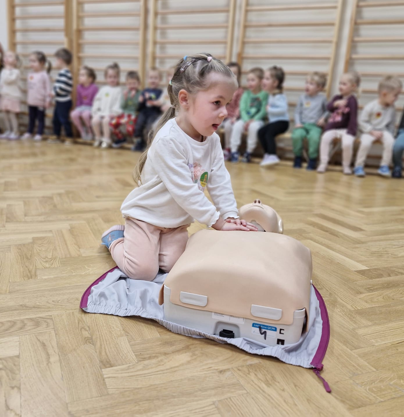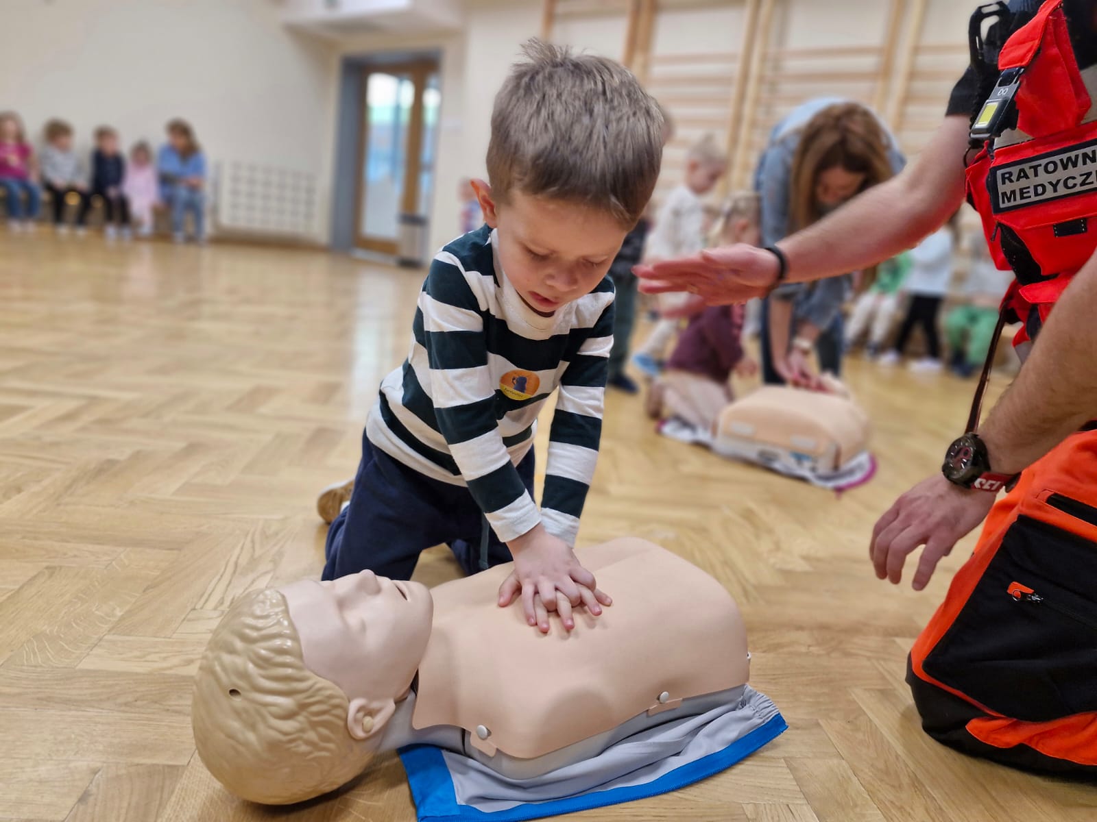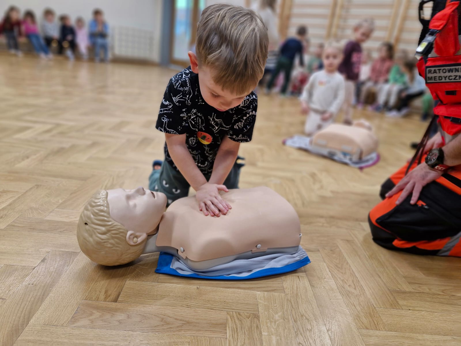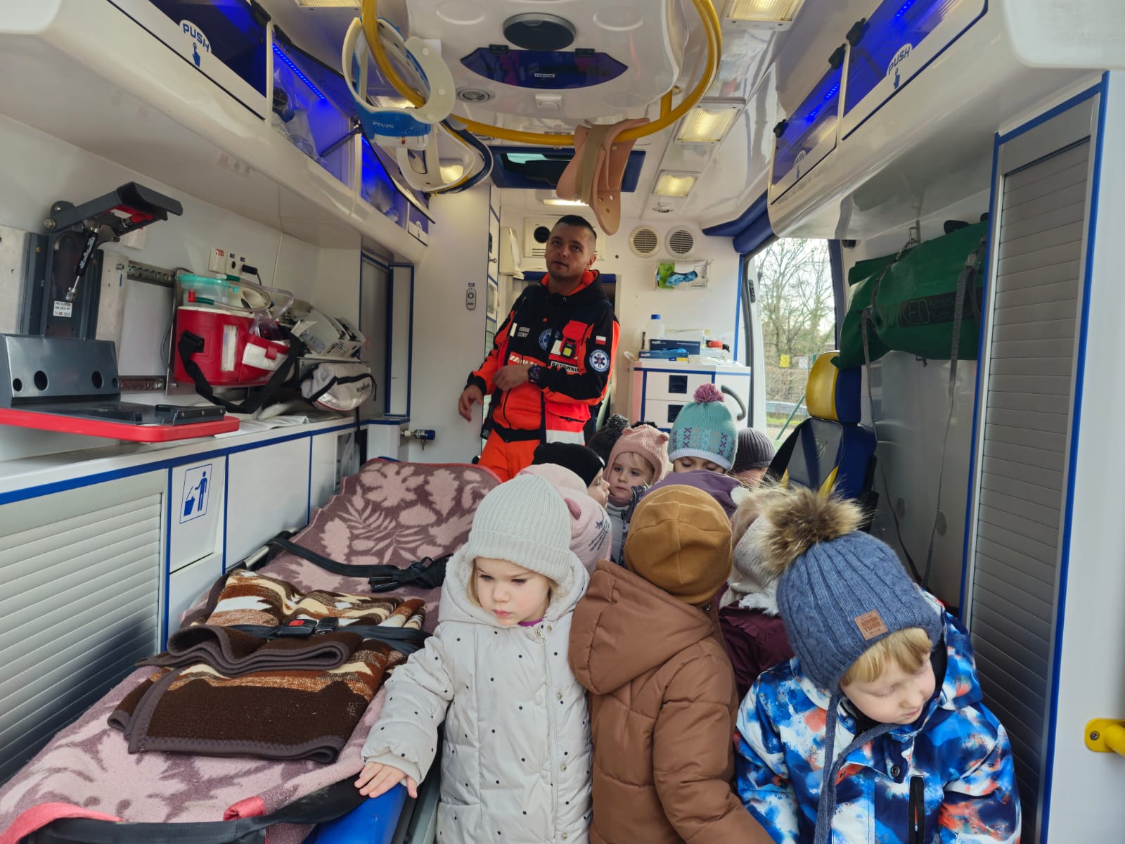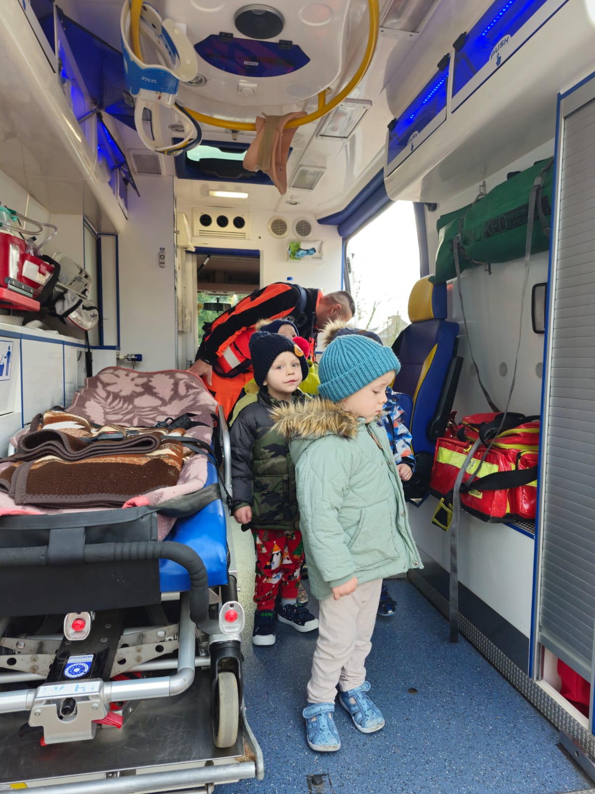 Nasze przedszkolaki miały przyjemność gościć 10 grudnia Pana Michała – ratownika medycznego. Celem spotkania było przekazanie dzieciom najważniejszych informacji dotyczących zasad udzielania pierwszej pomocy oraz właściwego zachowania w czasie wypadku i w sytuacjach zagrożenia życia lub zdrowia. Jeżyki dowiedziały się, jak wezwać pomoc, jakie informacje należy przekazać dyspozytorowi oraz dlaczego tak istotne jest podanie swojego adresu zamieszkania.