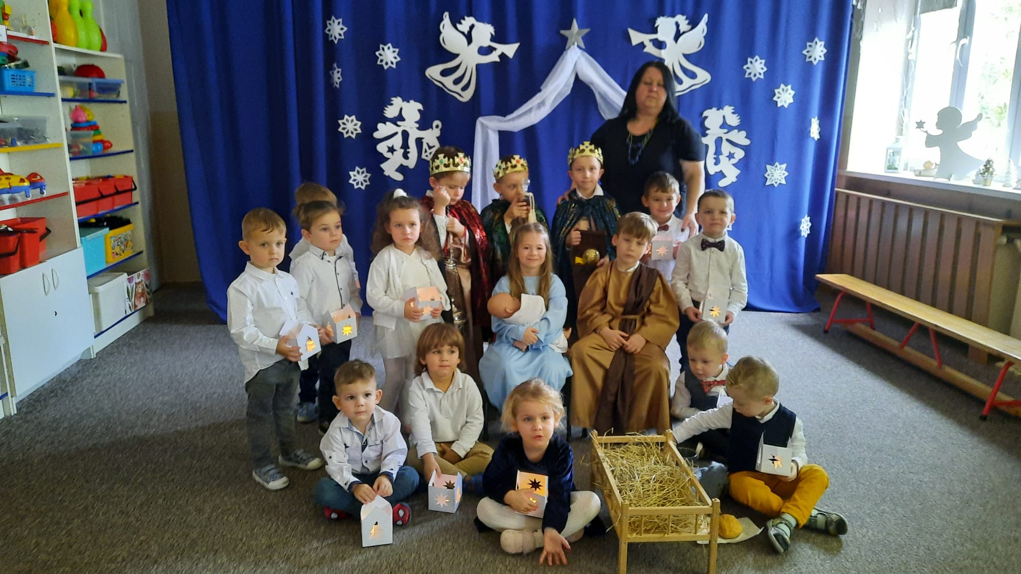 W środę 21 grudnia odbyła się w naszym przedszkolu Wigilia. Święta Bożego Narodzenia to magiczny czas. Dla wielu z nas jest to dzień niezwykle radosny , spędzony w gronie najbliższych. Czekamy na pierwszą gwiazdkę, dzielimy się opłatkiem, składamy sobie życzenia, śpiewamy kolędy, jemy świąteczne potrawy. Także w naszym przedszkolu nastał wspaniały moment- Wigilia, Boże Narodzenie! Dzieci wspólnie z Paniami kolędowały, składały sobie życzenia i jadły wspólny świąteczny obiad przy pięknie udekorowanym stole. Mieliśmy również okazję obejrzeć przedstawienie jasełkowe przygotowane przez grupę III. Takie podniosłe chwile nie tylko utrwalają dzieciom znajomość tradycji i zwyczajów świątecznych lecz również, co najważniejsze wzmacniają bliskie serdeczne relacje.