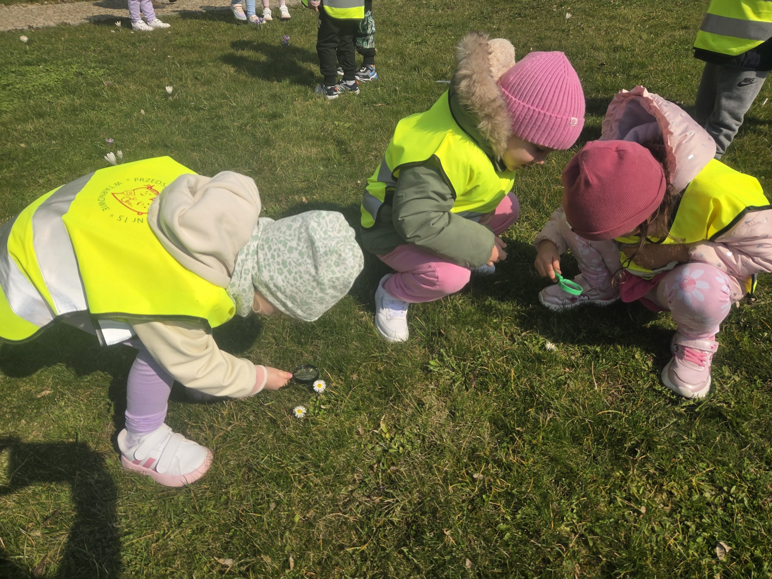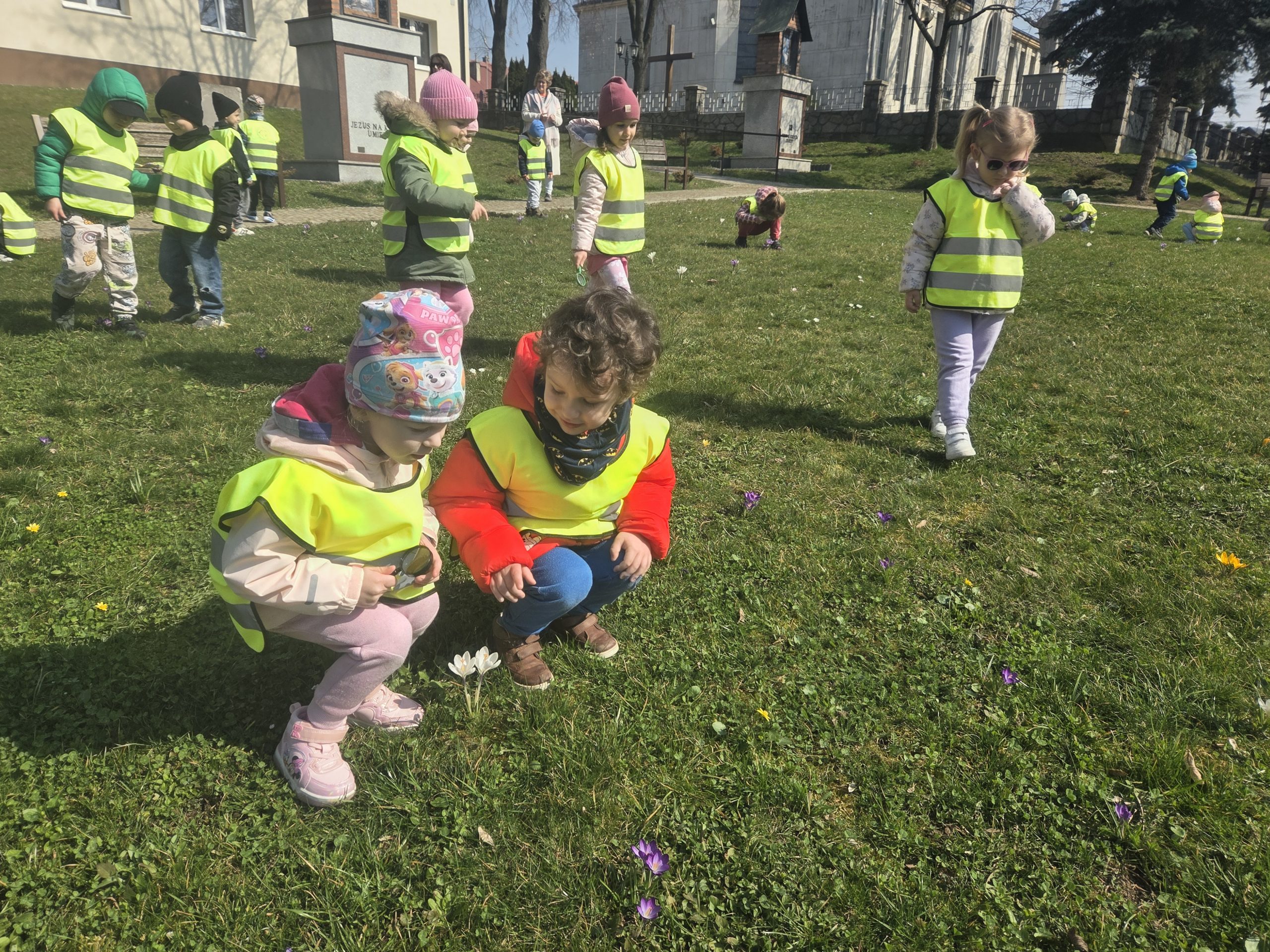 Dziś nasze przedszkolaki wyruszyły na wyjątkowy spacer w poszukiwaniu pierwszych oznak wiosny. Z radością obserwowaliśmy, jak dzieci z zaciekawieniem odkrywają budzącą się do życia przyrodę. Podczas wyprawy wypatrzyliśmy kwitnące krokusy, przebiśniegi i pierwsze zielone listki na drzewach. Usłyszeliśmy śpiew ptaków, a nawet znaleźliśmy ślady wiosennej aktywności wśród owadów. To była wspaniała lekcja przyrody na świeżym powietrzu i prawdziwa radość z obcowania z naturą!