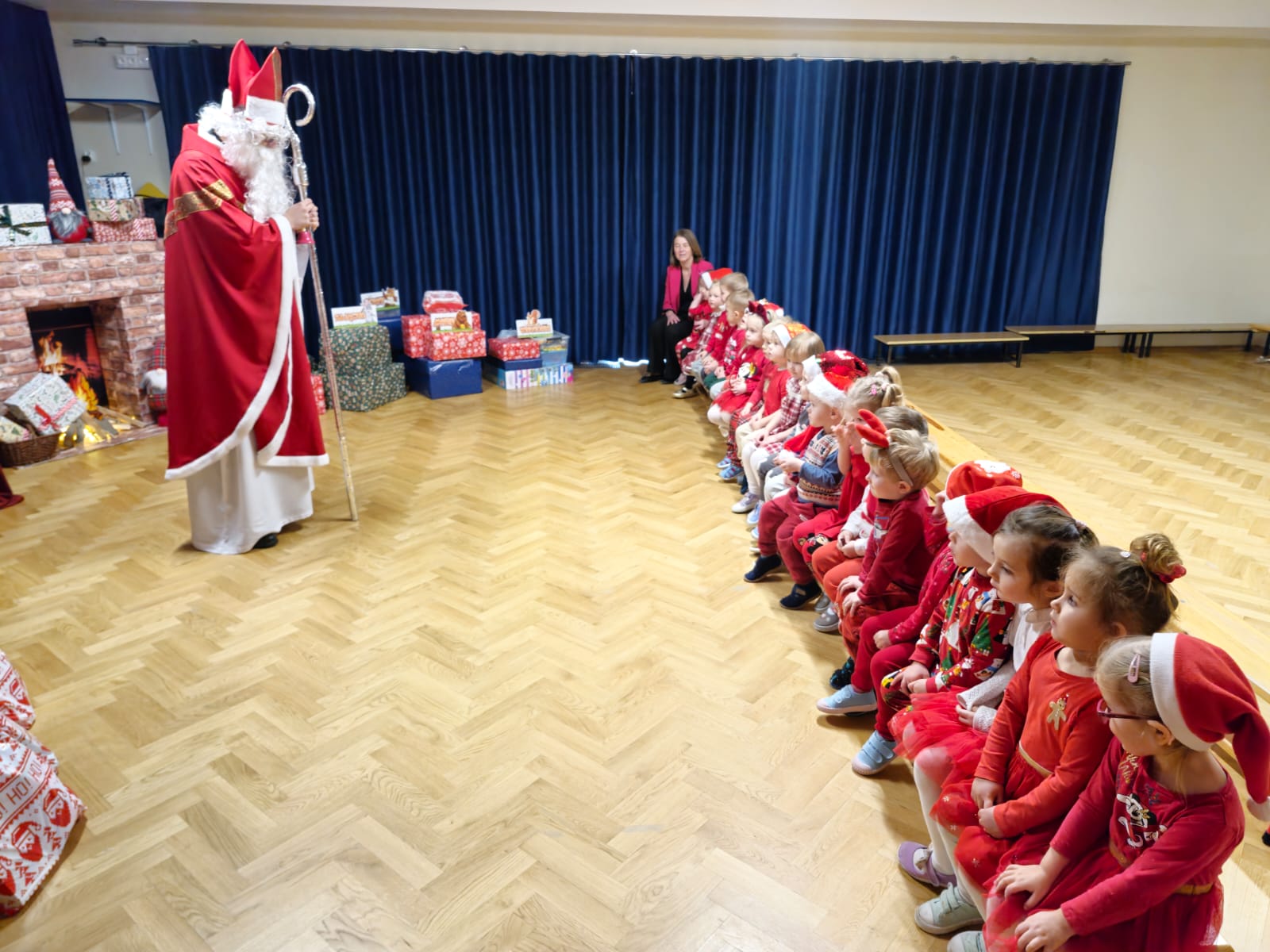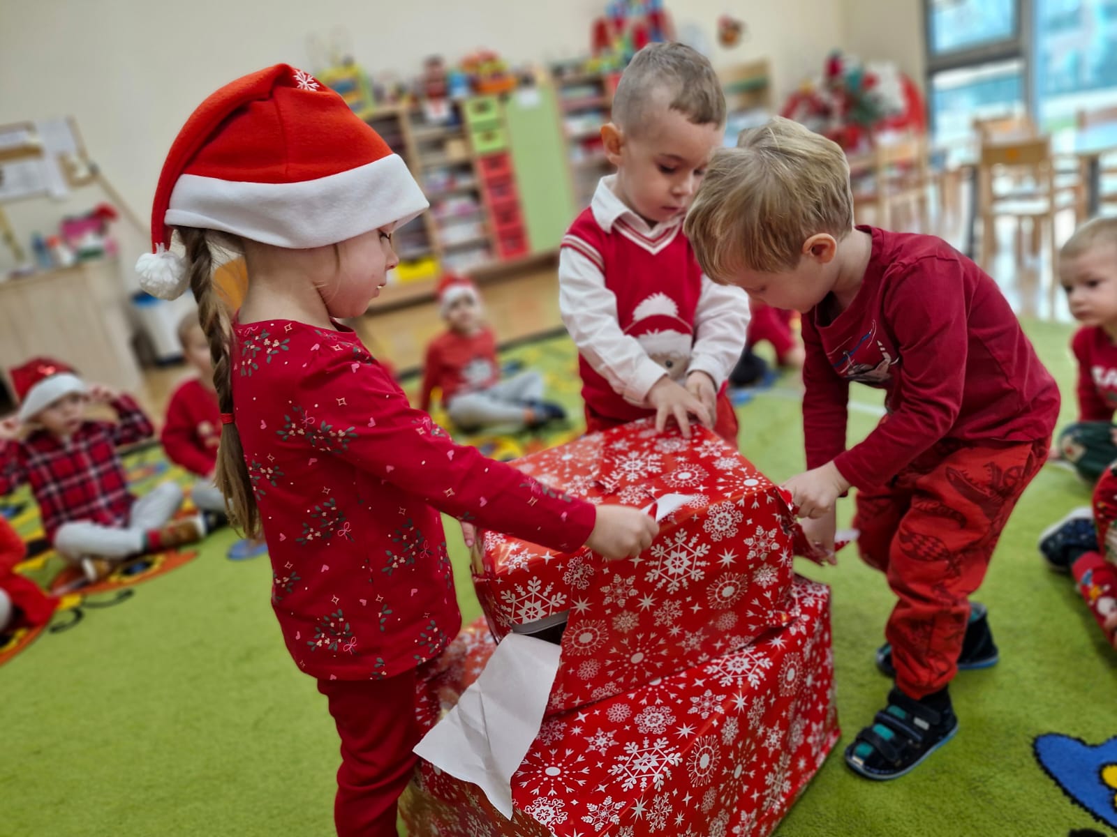 Wizyta Świętego Mikołaja w naszym przedszkolu, to jeden z najbardziej oczekiwanych przez dzieci dni w roku. W piątek, 5 grudnia, od samego rana wszystkie przedszkolaki z niecierpliwością oczekiwały przybycia gościa. Do naszego przedszkola przybył Mikołaj, który hojnie obdarował wszystkich prezentami. Dzieci uśmiechnięte i bardzo podekscytowane dźwiękiem dzwoneczka z ogromną radością przywitały Mikołaja specjalnie przygotowanymi na tą okazję piosenkami
