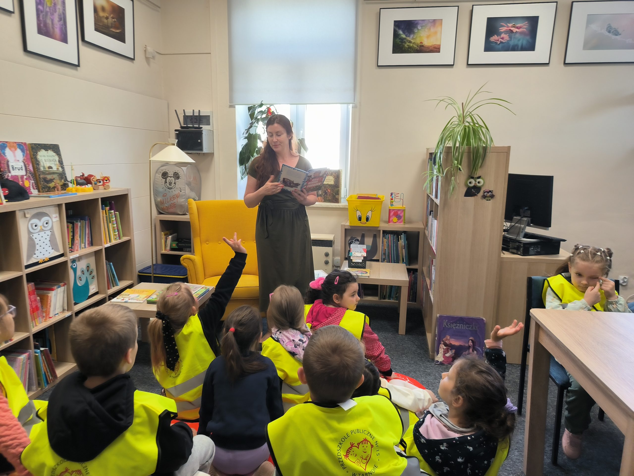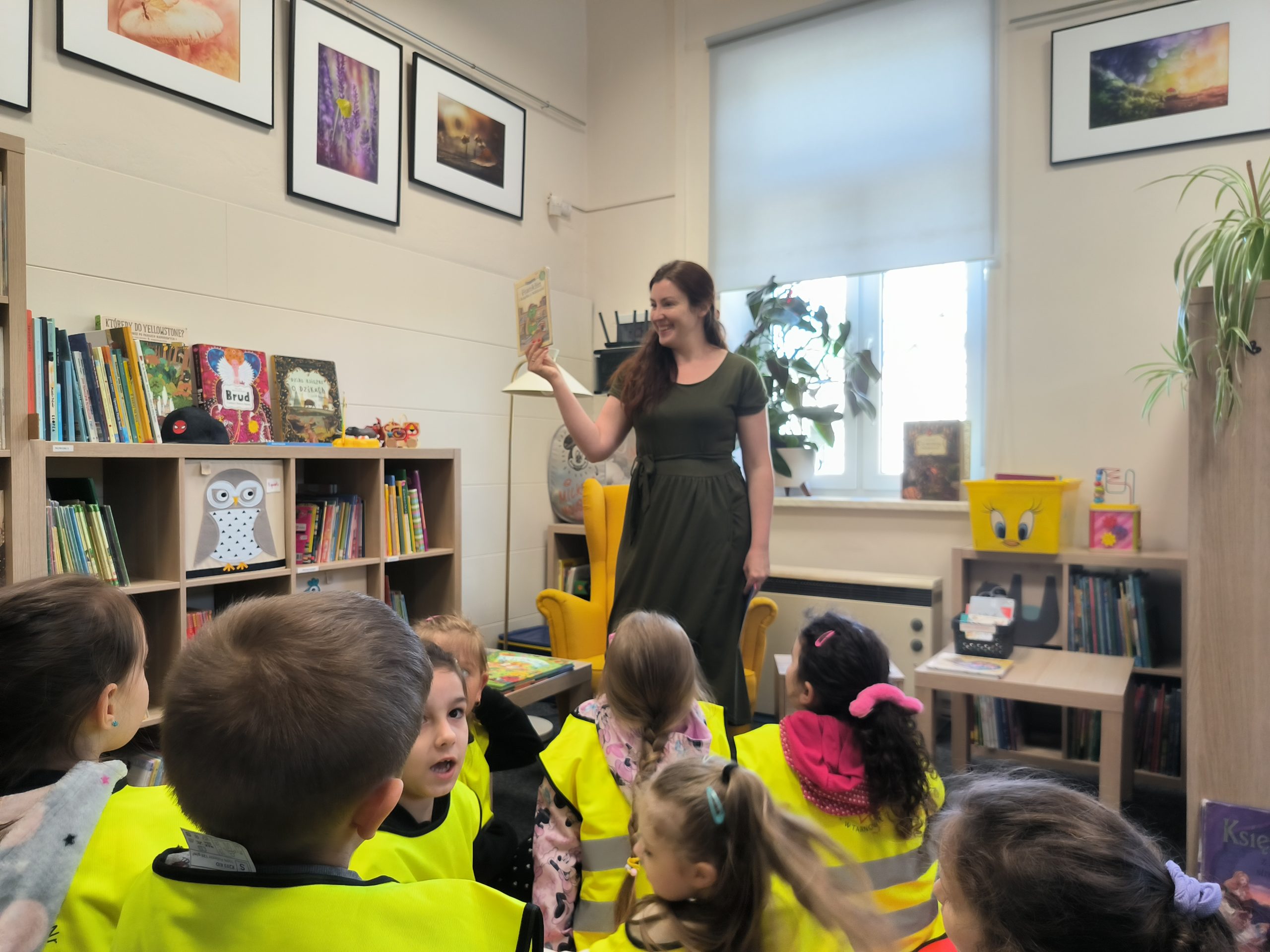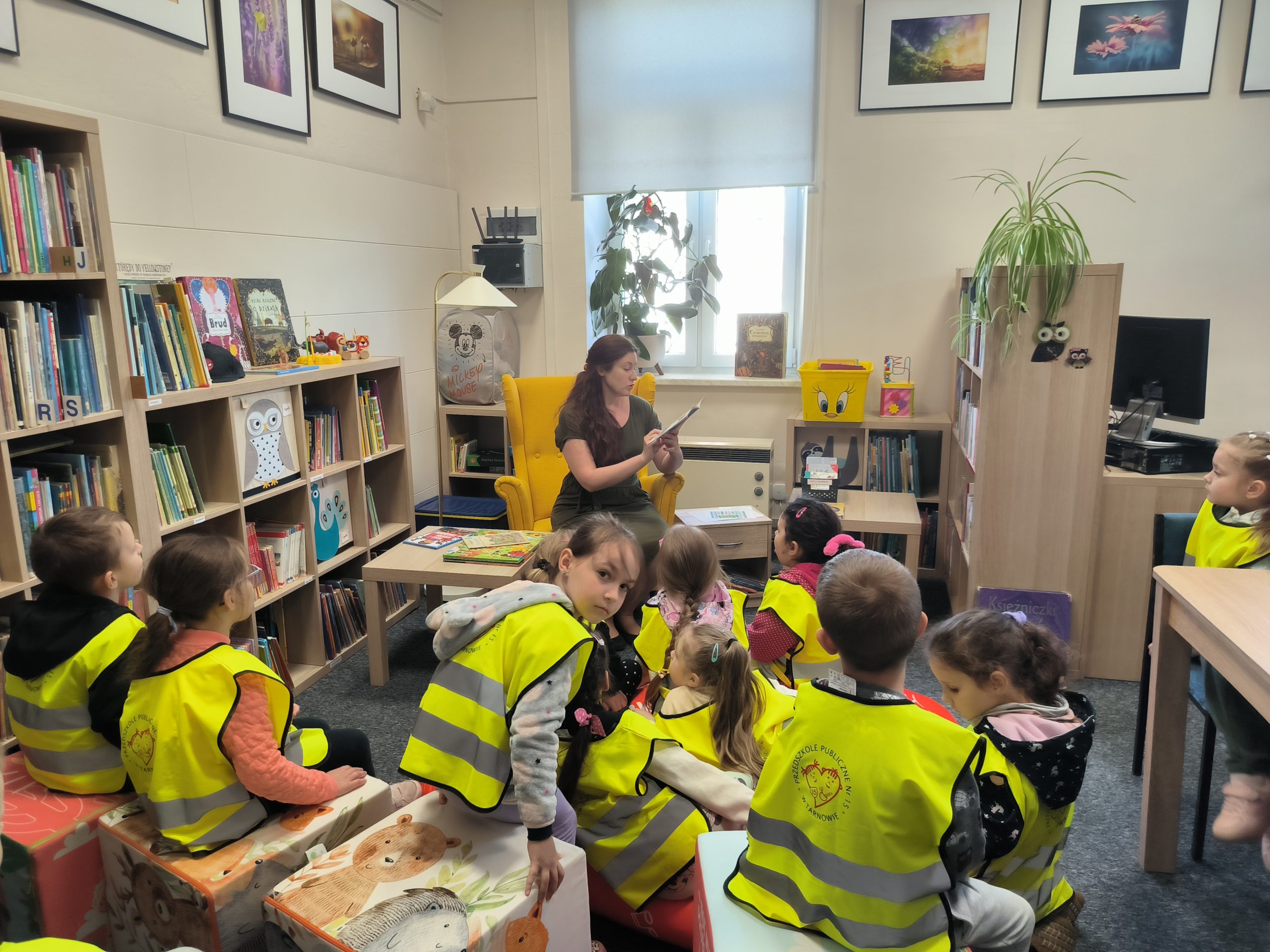 Dzieci z grupy „Zajączki” odwiedziły w środę Miejską Bibliotekę Publiczną Filia nr 9 w Tarnowie. Przedszkolaki dowiedziały się, co należy zrobić, aby stać się czytelnikiem biblioteki oraz jak należy się w niej zachować. Zobaczyły także jak wygląda karta czytelnika oraz poznały zasady wypożyczania książek. W trakcie pobytu w bibliotece, dzieci rozwiązywały zagadki związane z postaciami z bajek i baśni. Przedszkolaki znakomicie sobie poradziły. Pani bibliotekarka pokazała także dzieciom, gdzie znajduje się przeznaczony specjalnie dla nich regał z książkami. Następnie zaprezentowała i dała do obejrzenia dzieciom najmniejsze książeczki z działu dziecięcego. Przedszkolakom bardzo spodobały się kolorowe i bogato ilustrowane książeczki, które z chęcią oglądały. Spotkanie odbywało się w miłej, pełnej uśmiechów i wrażeń atmosferze. Dla wielu przedszkolaków, była to pierwsza wizyta w „domu książek”, ale na pewno nie ostatnia.