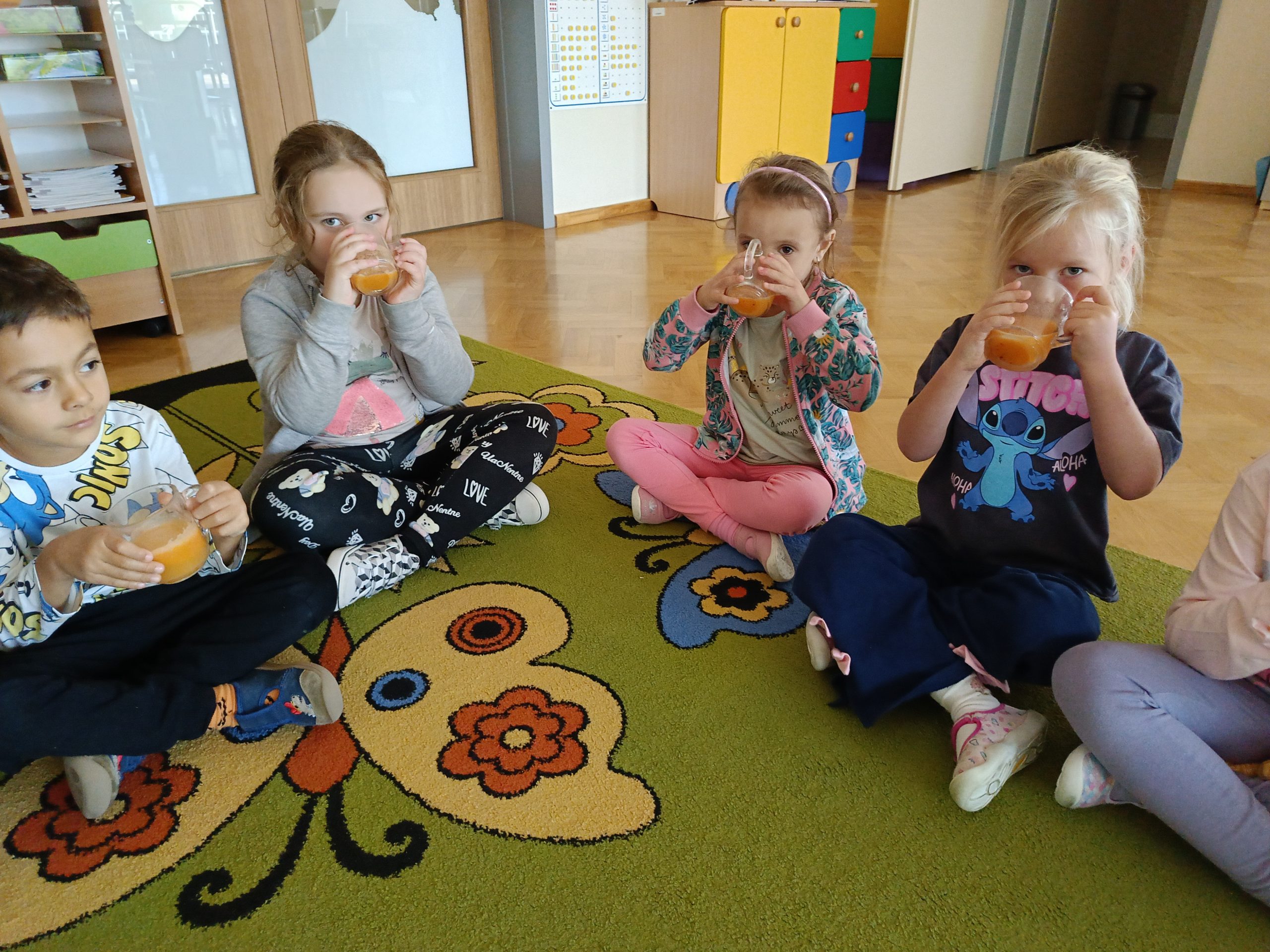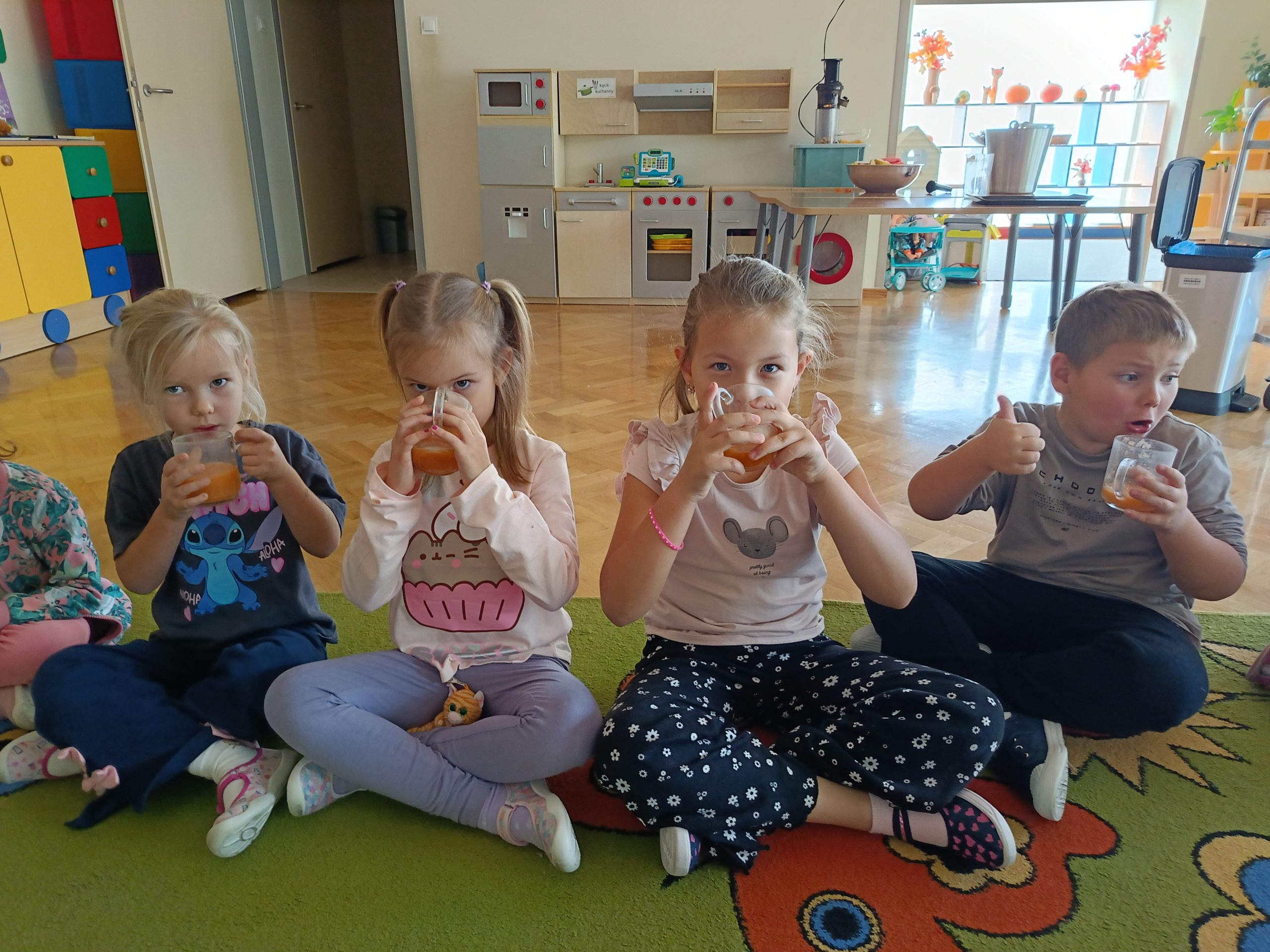W naszej grupie, odbyły się wyjątkowe, pyszne zajęcia! Wspólnie przygotowywaliśmy sok z marchewki, jabłek i pomarańczy. Dzieci