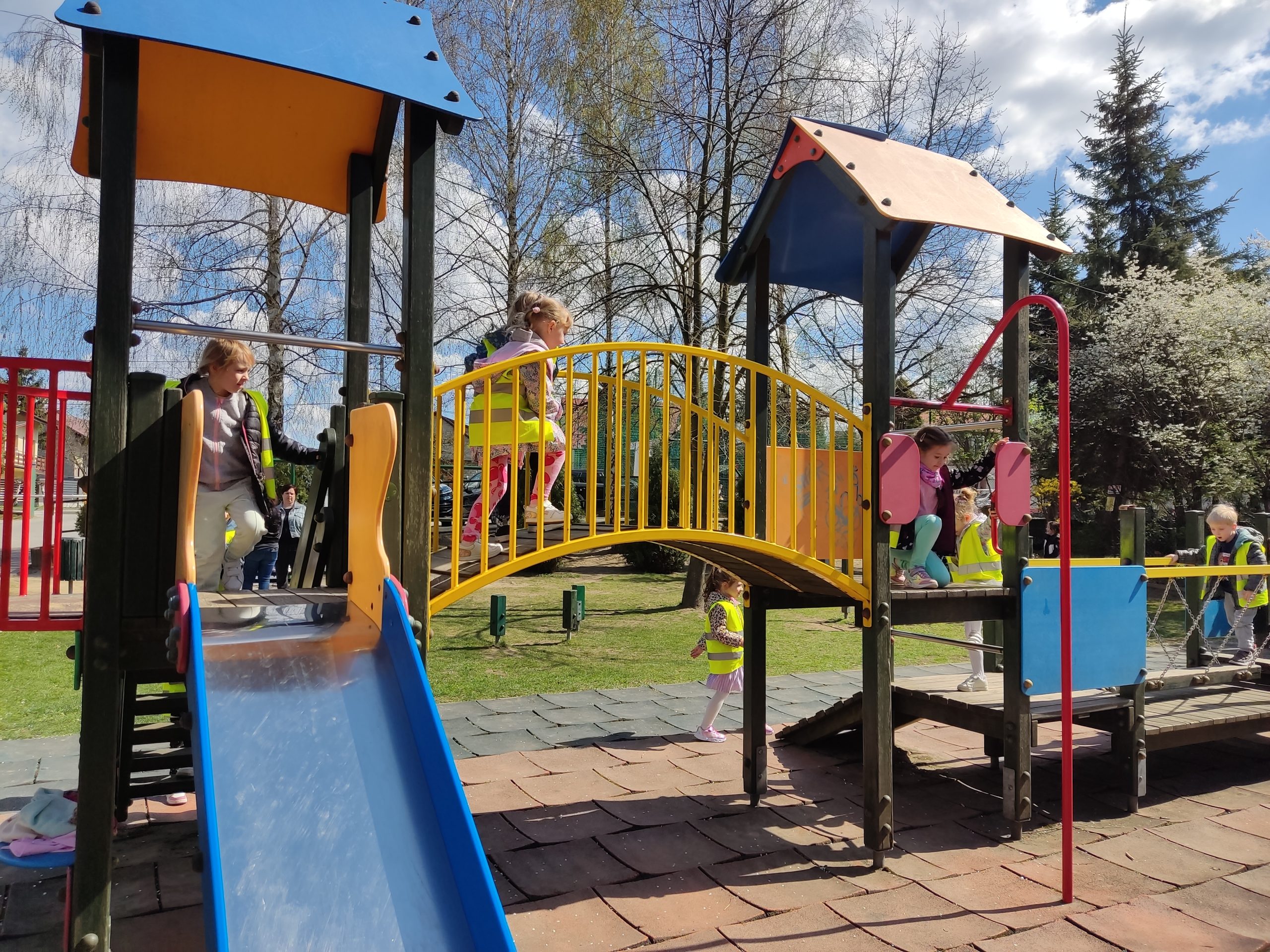 Wygląda na to, że wiosna w końcu zawitała do nas na dobre. Miejmy nadzieję, że już teraz pogoda pozwoli nam na zdecydowanie częstsze aktywności na świeżym powietrzu. Z całą pewnością przedszkolaki ucieszą się z możliwości codziennych wyjść na podwórko. Korzystając z ładnej pogody Misie bawiły się dzisiaj (04.04.2025 r.) na placu zabaw przy Szkole Podstawowej nr 14. Dzieci uwielbiają zabawę pod gołym niebem. Dzięki różnorodnym aktywnościom na placu zabaw, przedszkolaki mają szansę rozwijać swoje umiejętności motoryczne, uczyć się współpracy z rówieśnikami oraz pokonywać różne przeszkody. Przebywanie na świeżym powietrzu wpływa korzystnie na zdrowie fizyczne i psychiczne dzieci, zwiększa ich koncentrację oraz poprawia samopoczucie. Dzieci, które spędzają więcej czasu na świeżym powietrzu, są bardziej odporne na stres i lepiej radzą sobie z nauką. To wszystko przyczynia się do ich ogólnego rozwoju i przygotowuje do przyszłych wyzwań.