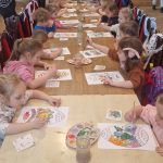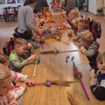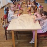 Podczas zajęć malowały farbami, ozdabiały drewniane pisanki rozwijając swoją kreatywność oraz sprawność manualną, a także wykonywały palmy wielkanocne.