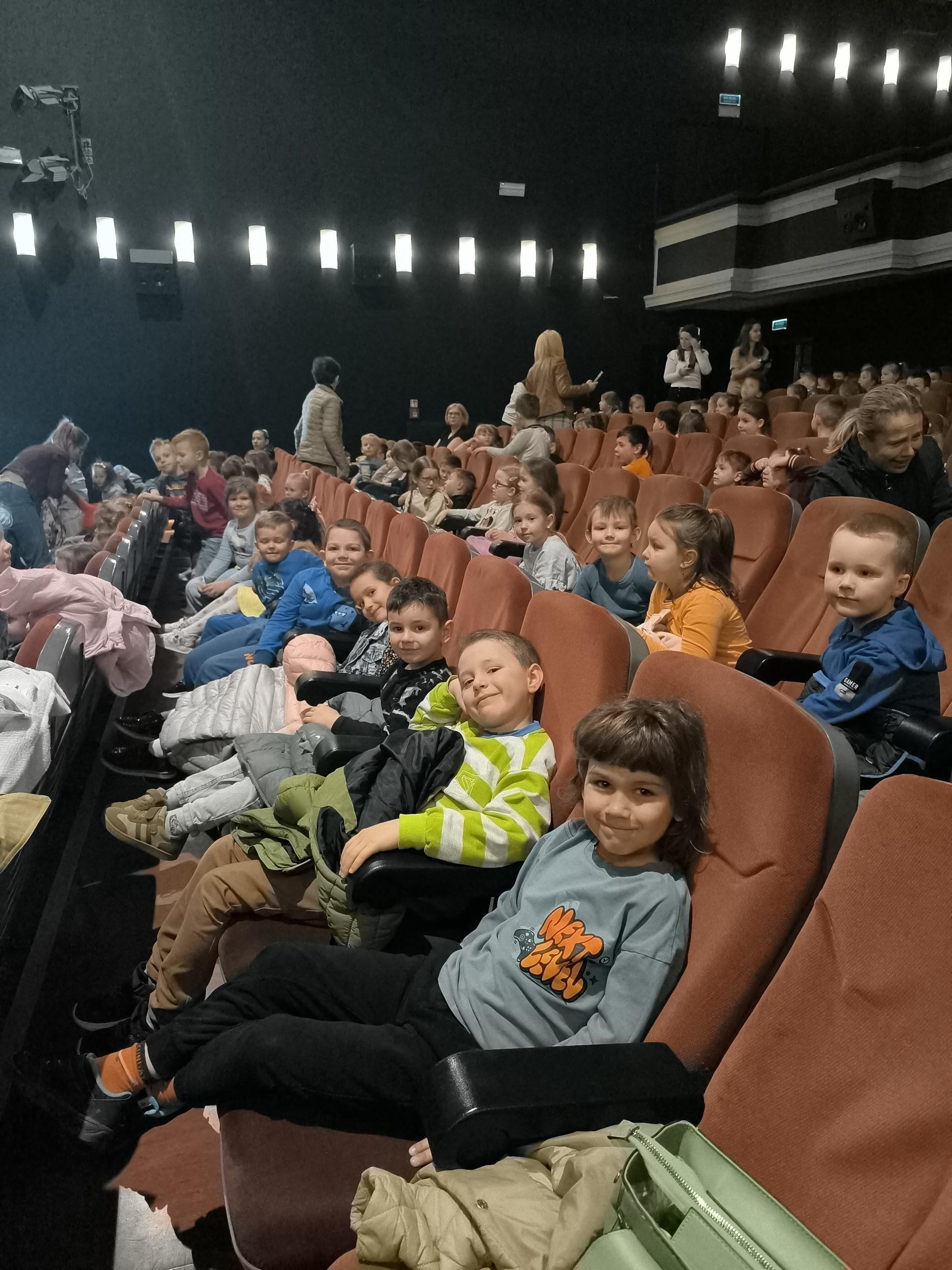 W piątek – 4 kwietnia wybraliśmy się na wycieczkę do Kina Marzenie, aby obejrzeć spektakl pt. „Szalone bajeczki z dziadziunia teczki”. Podczas przedstawienia aktorzy w barwny i zabawny sposób zaprezentowali kilka znanych wierszy Jana Brzechwy, takich jak „Leń”, „Samochwała” czy „Na straganie”. Widzowie byli zachwyceni pomysłową scenografią, kolorowymi kostiumami oraz dowcipnymi dialogami, które rozbawiały zarówno dzieci, jak i dorosłych. Na zakończenie przedstawienia dzieci z widowni zostały zaproszone na scenę, aby wspólnie odegrać słynny wiersz „Rzepka”. Wszyscy świetnie się bawili, a udział w spektaklu sprawił dzieciom ogromną radość i dał im okazję do poczucia się jak prawdziwi aktorzy. Wycieczka była bardzo udana i na długo pozostanie w naszej pamięci.