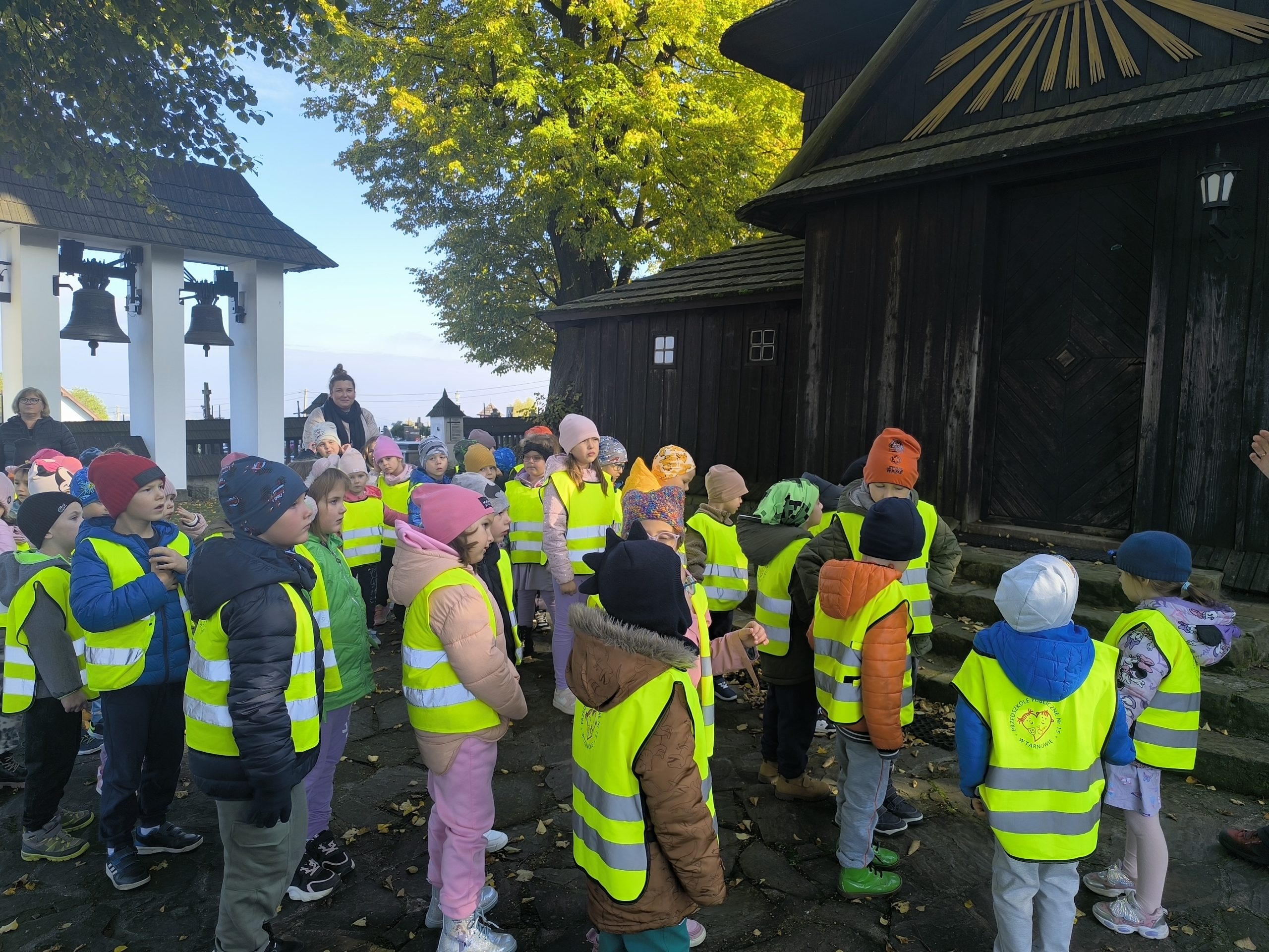 W słoneczny jesienny poranek nasze przedszkolaki wyruszyły na pełną wrażeń wycieczkę na Górę Marcina. Pierwszym przystankiem był kościół w Zawadzie, jeden z najstarszych drewnianych kościołów w Polsce. Dzieci z zainteresowaniem wysłuchały legendy o Doboszu Skubie, który według opowieści przyczynił się do powstania kościoła, a także dowiedziały się, jak powstała sama wieś Zawada.