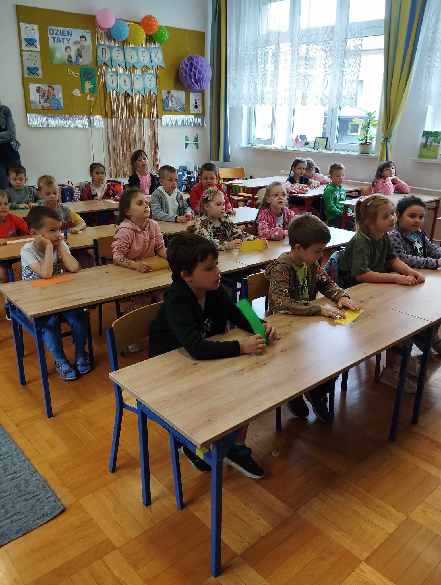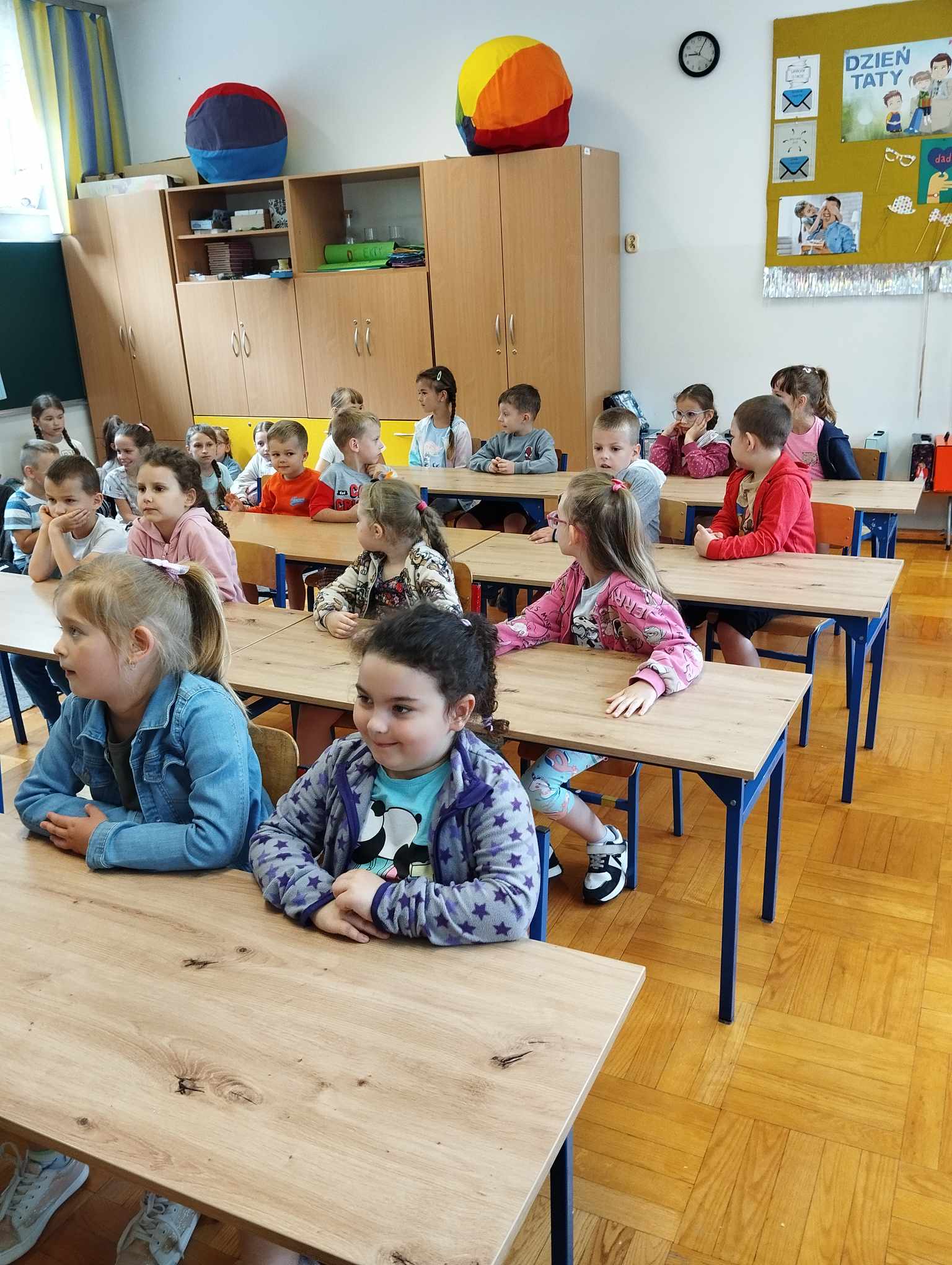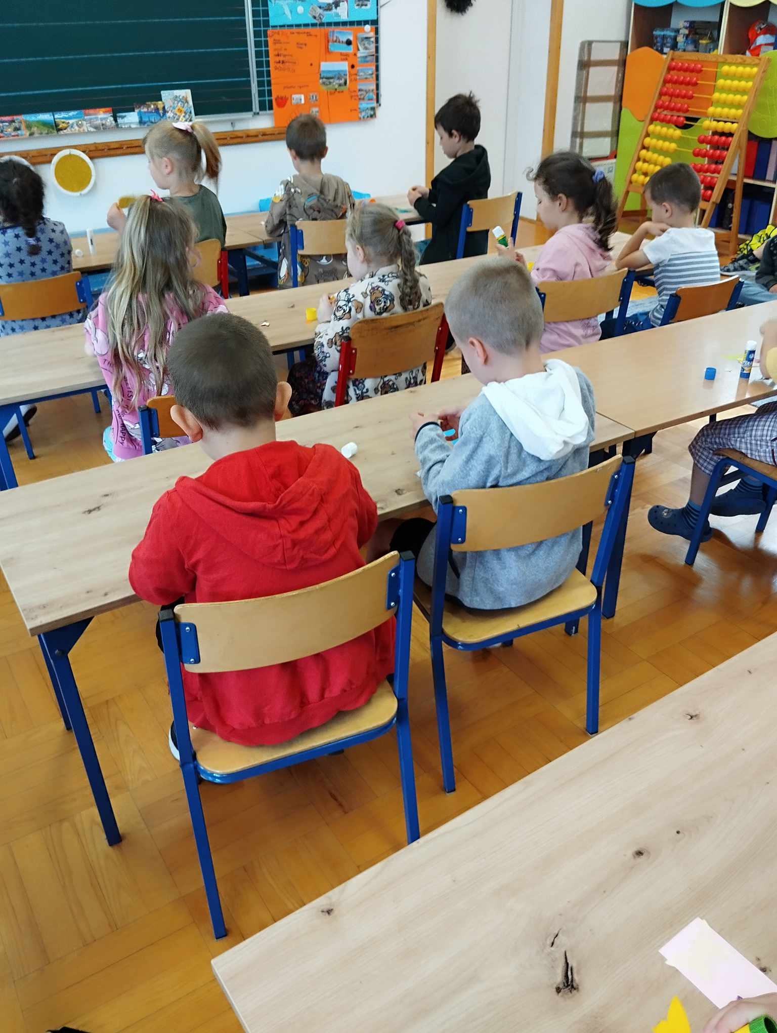 W dniu 11.06 dzieci z naszej grupy odwiedziły Szkołę Podstawową nr 14. Zostały bardzo miło przywitane przez panią, gdzie następnie usiadły w ławkach. Wspólnie wykonaliśmy pracę plastyczną – zakładkę do książki. Pani opowiadała jak dzieci spędzają czas w szkole , co jest ważne podczas nauki w szkole i jak należy się zachować podczas lekcji. Każde dziecko otrzymało do domu dwie kolorowanki.