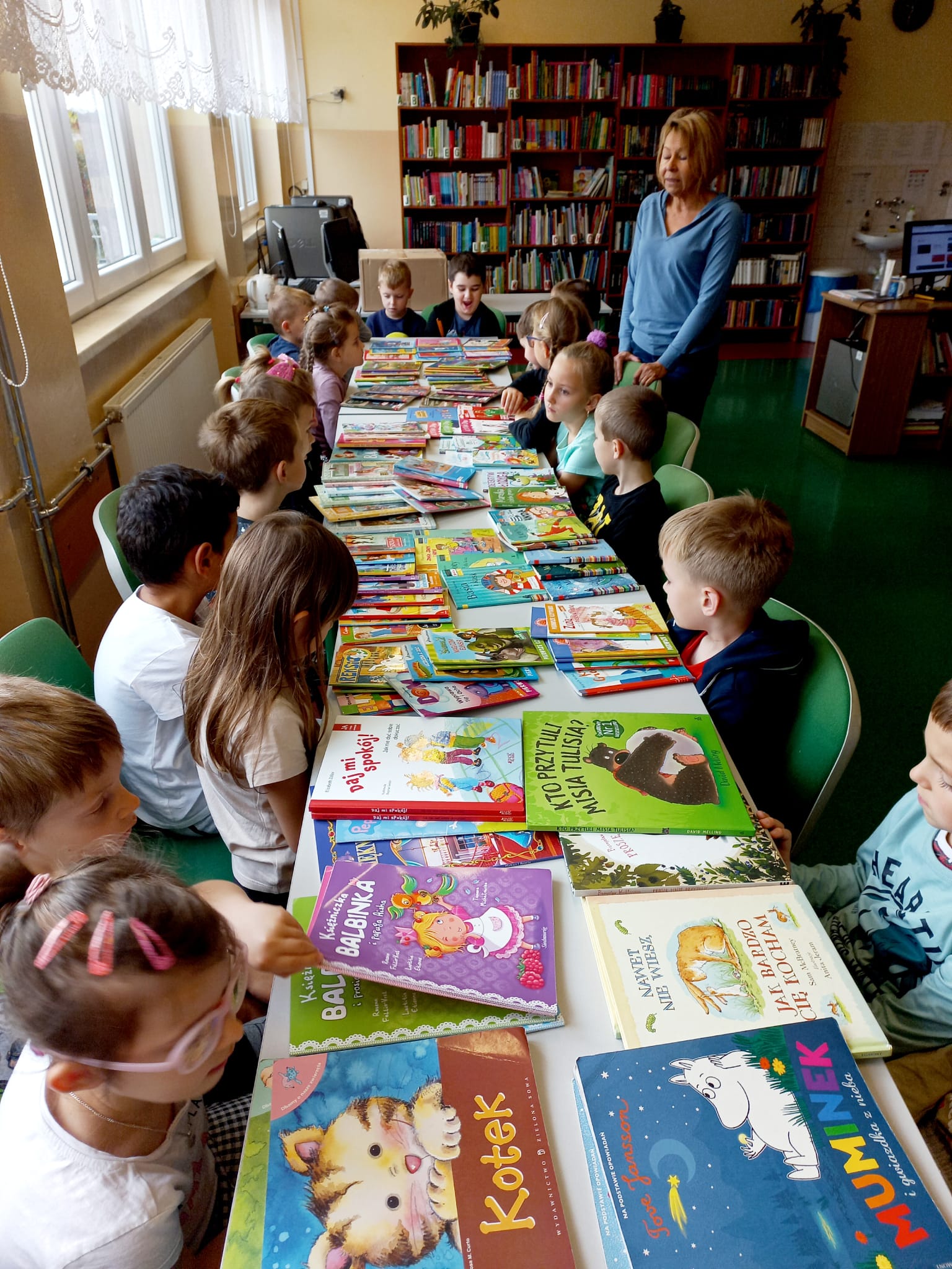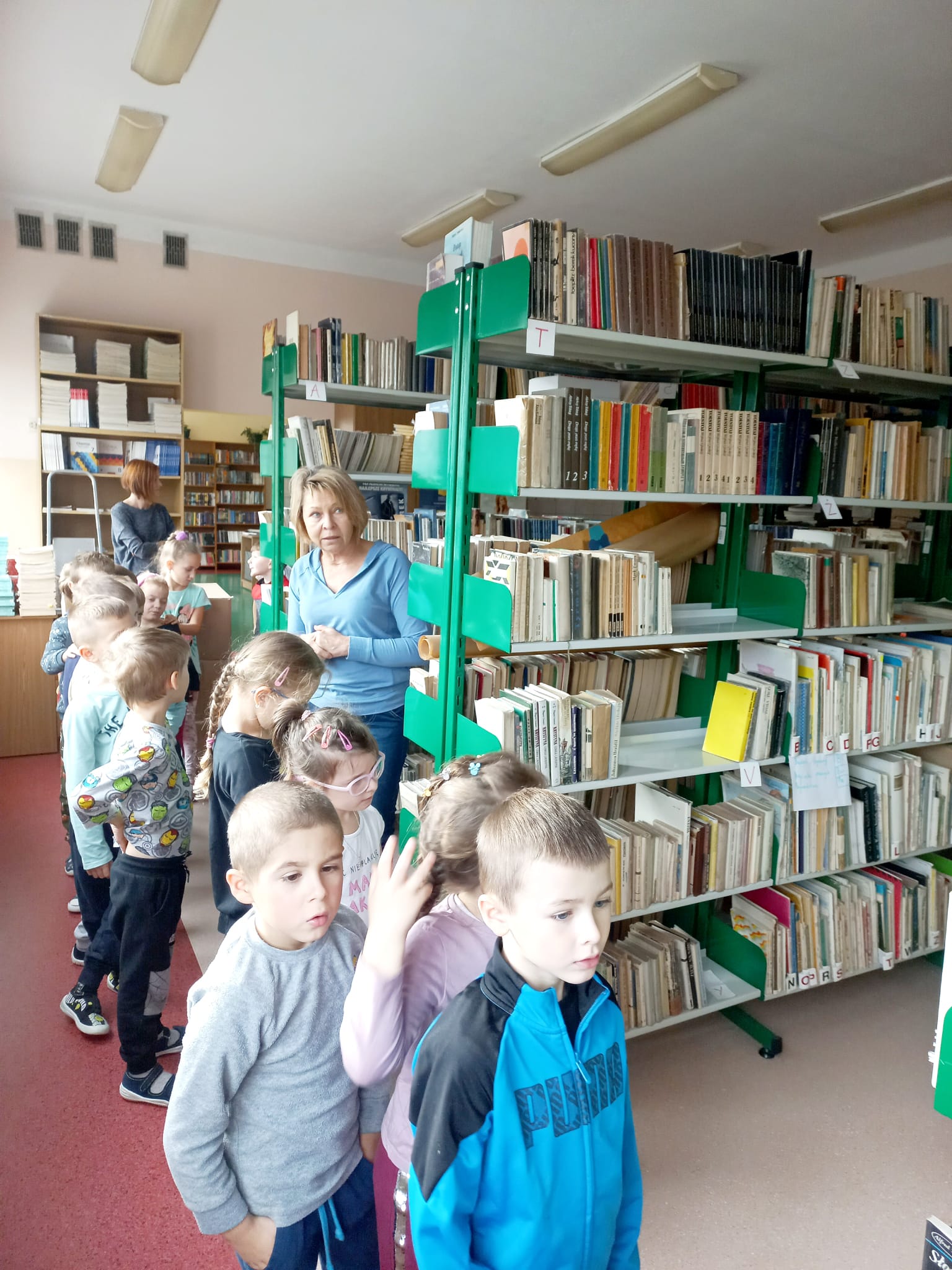 W dniu 25.10.2022 roku dzieci z grupy IV odwiedziły Bibliotekę w Szkole Podstawowej nr 23 .Dzieci poznały podstawowe zasady korzystania z biblioteki. Dowiedziały się w jaki sposób można zostać czytelnikiem, jak należy zachowywać się w bibliotece oraz poznały zasady poszanowania książek. Przedszkolaki z dużym zainteresowaniem przeglądały książeczki, oczywiście największe emocje wzbudzał różnorodny, kolorowy i bogato ilustrowany księgozbiór przygotowany przez panią bibliotekarkę. Takie spotkania umożliwiają bezpośredni kontakt z książką, rozbudzają zainteresowania czytelnicze, przybliżają literaturę dziecięcą i jej autorów, jednocześnie są inspiracją do działalności plastycznej Na zakończenie dzieci otrzymały w prezencie, kolorowe zakładki do książek. Spotkanie odbyło się w radosnej i pełnej uśmiechów atmosferze. Serdecznie dziękujemy pani Ani za wspaniale zorganizowane zajęcia edukacyjne, za budzenie zainteresowania książką i upowszechnianie czytelnictwa wśród najmłodszych!
