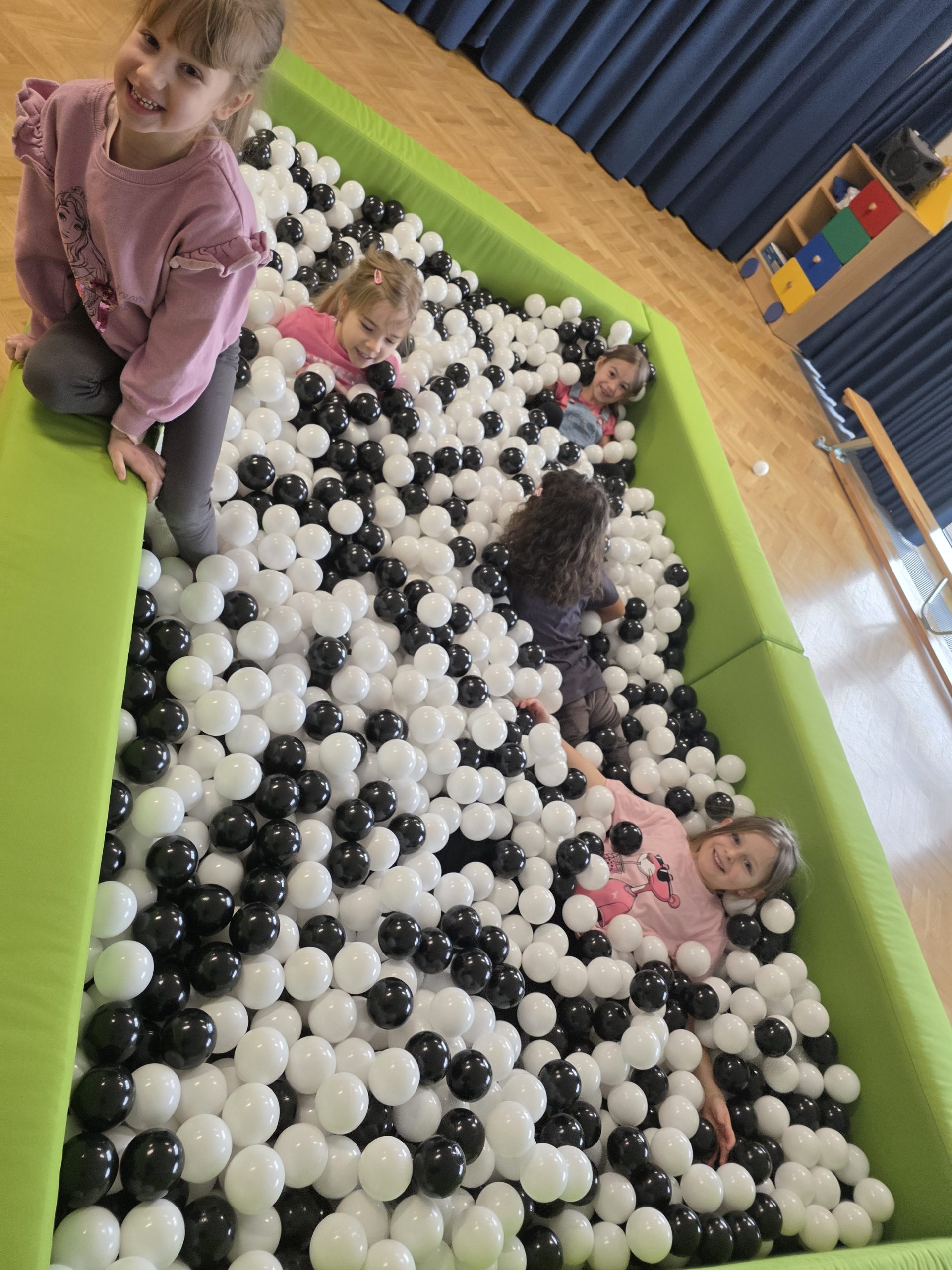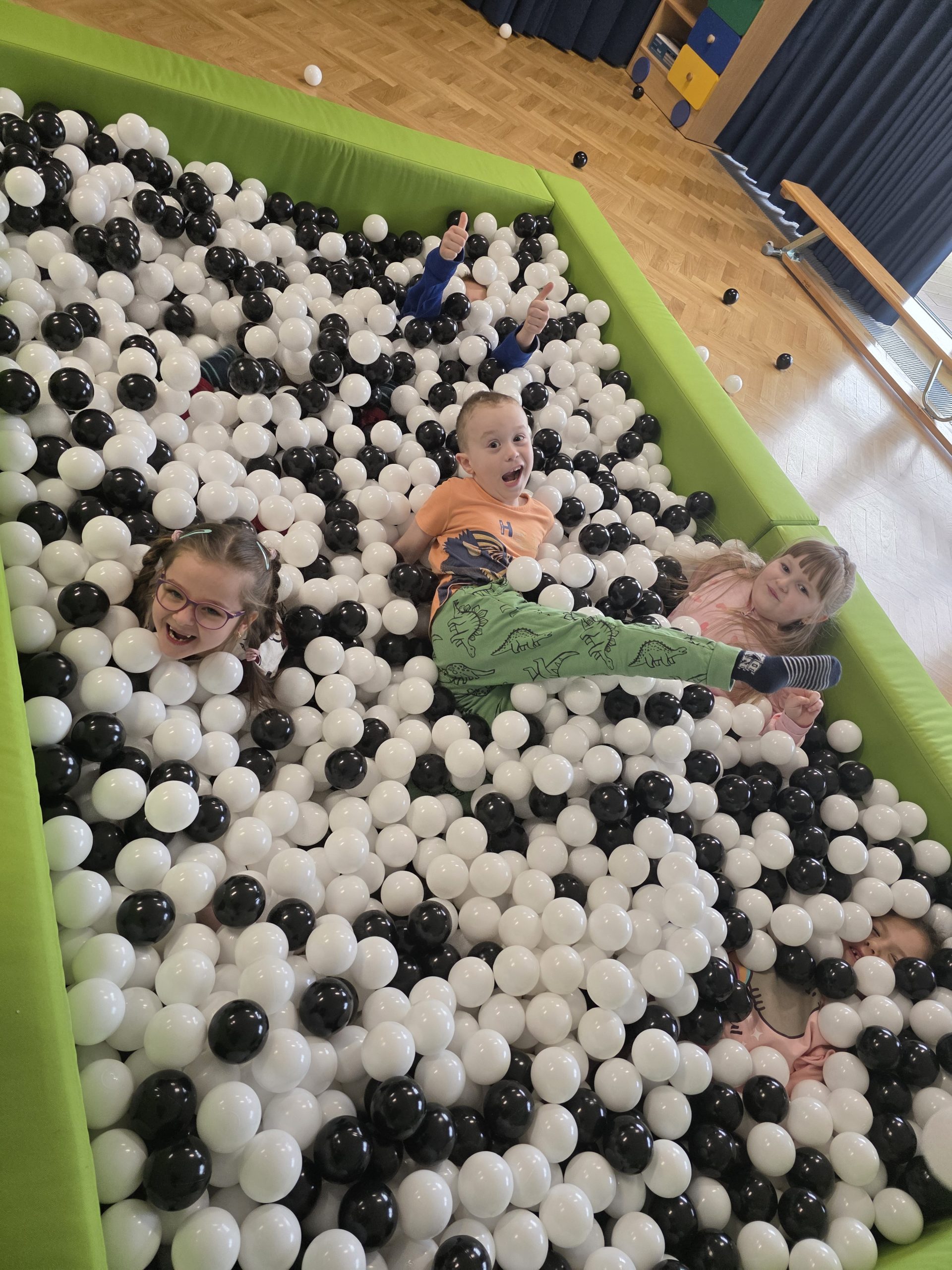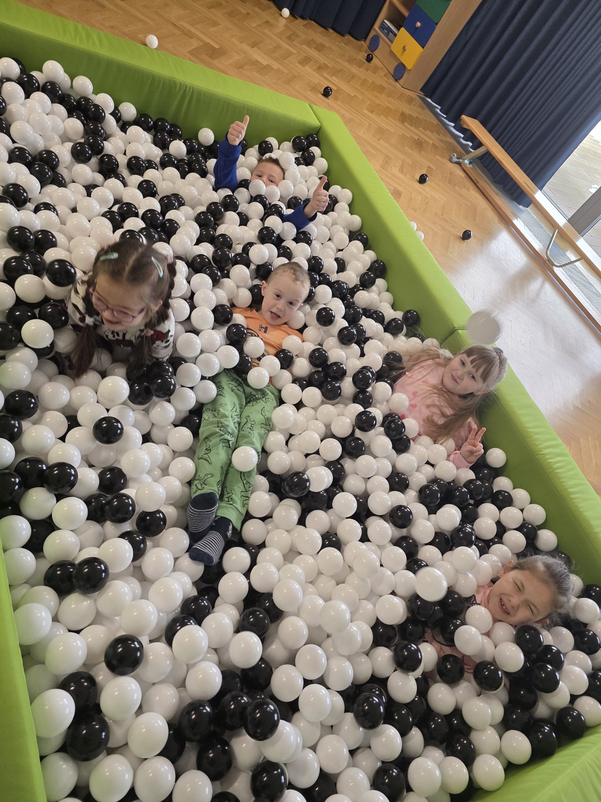 Nasze przedszkolaki spędziły dzisiaj fantastyczny czas, nurkując w kolorowym basenie z kulkami! Zabawa była pełna śmiechu, skoków i wspólnych gier. Takie aktywności to nie tylko ogromna frajda, ale też doskonały sposób na ćwiczenie koordynacji ruchowej, integrację z rówieśnikami oraz stymulację sensoryczną. Wystarczy spojrzeć na te uśmiechnięte buzie, by wiedzieć, że to był udany dzień!
