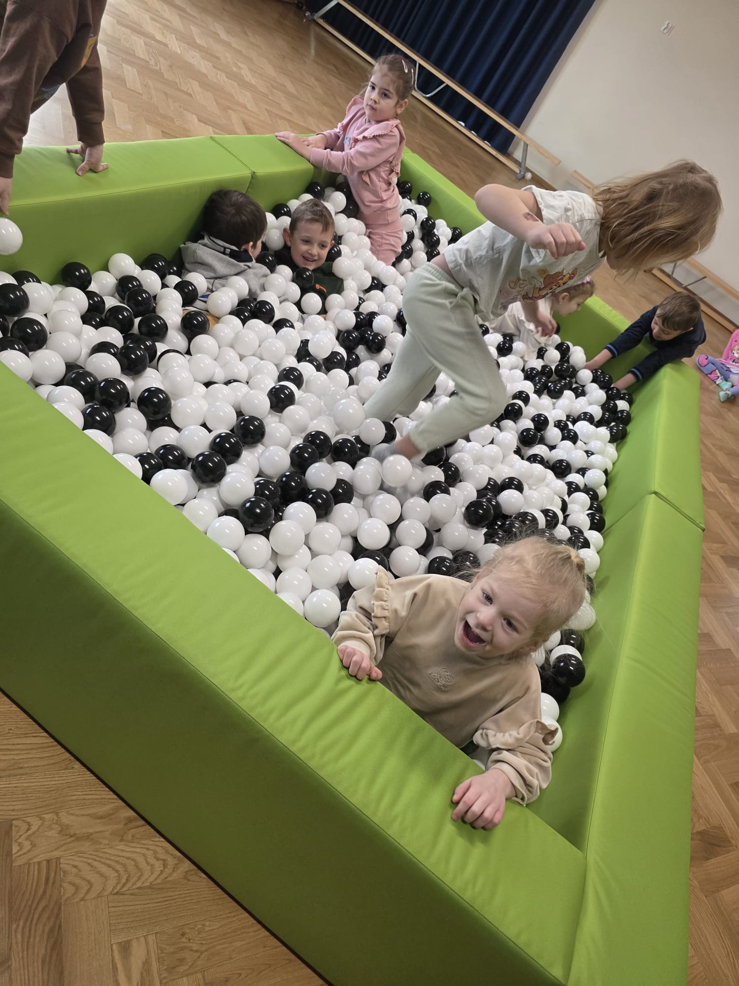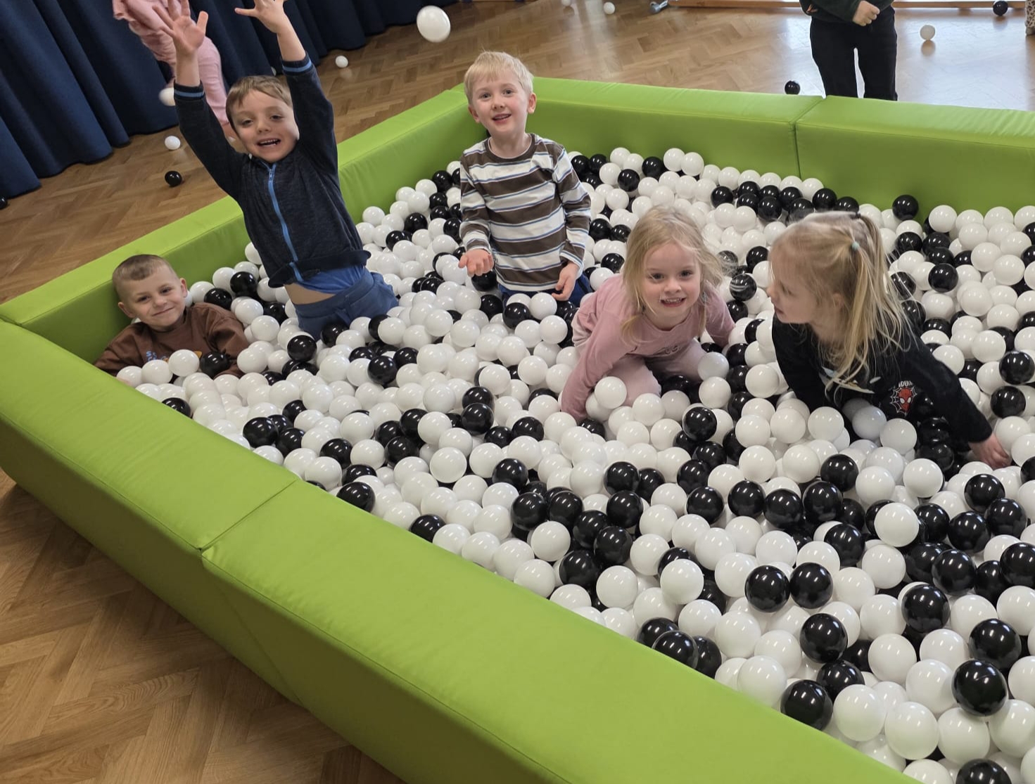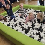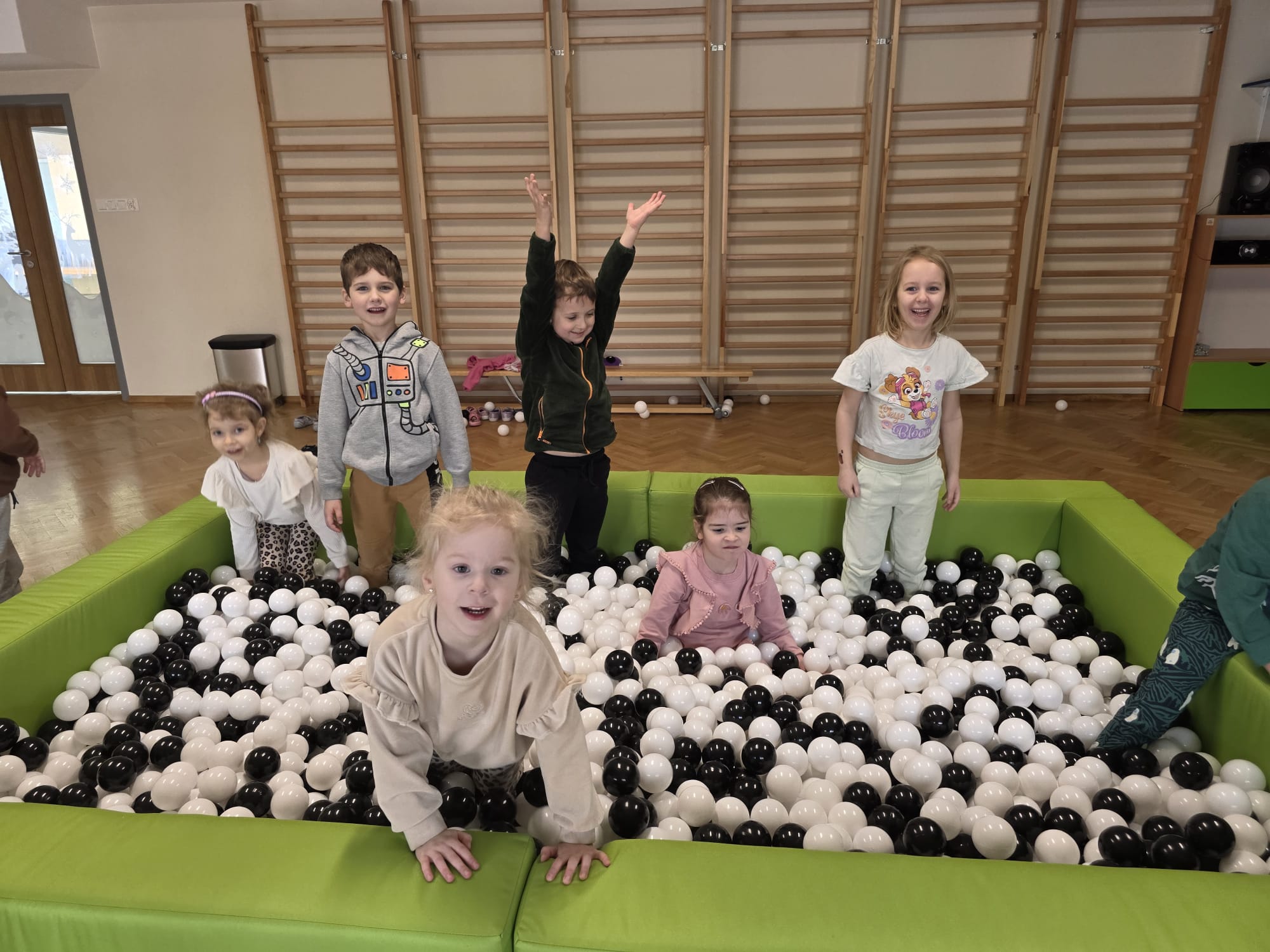 Podczas ferii zimowych dzieci z grupy III i IV korzystają z nowej atrakcji – basenu z kulkami!