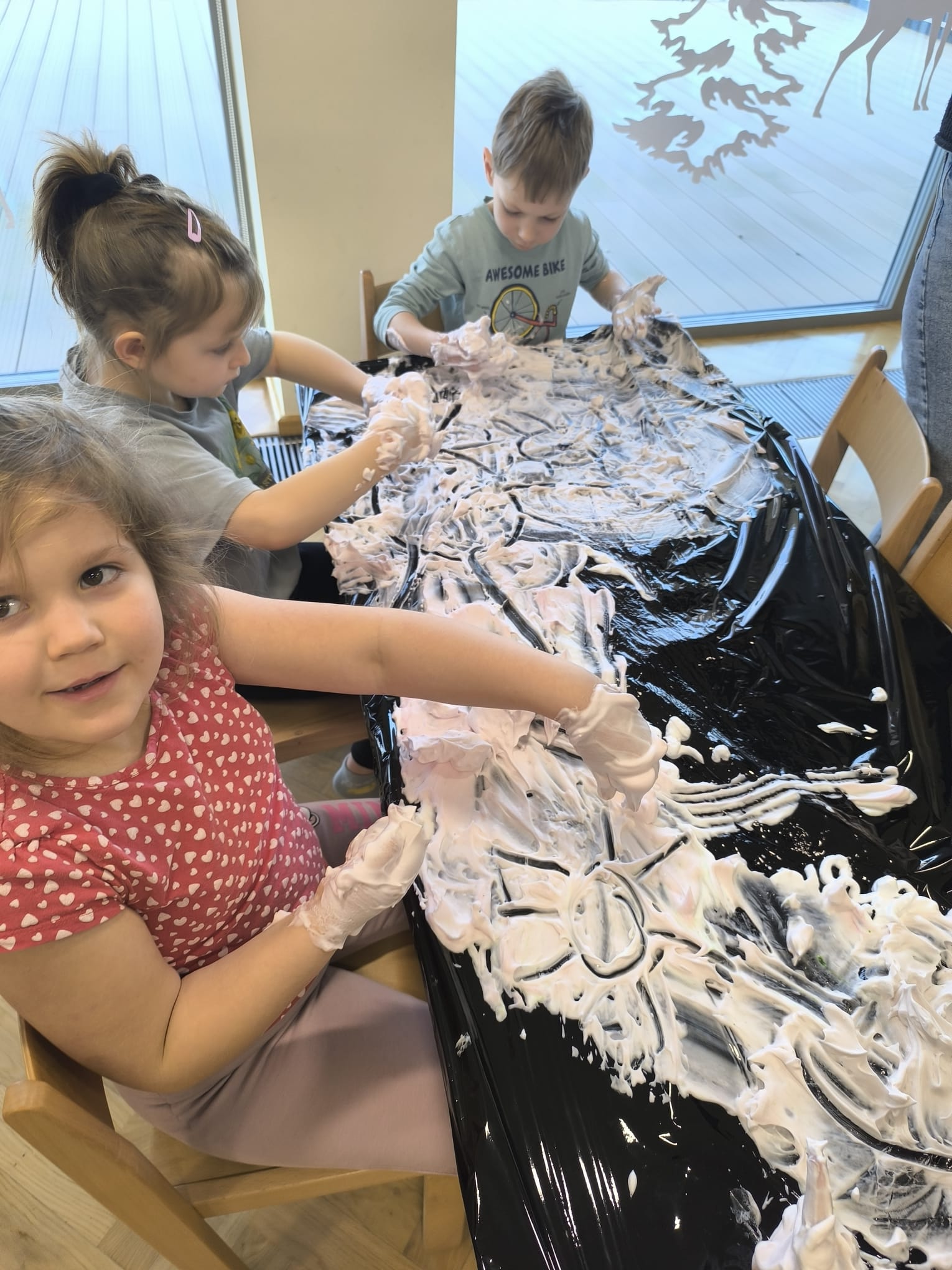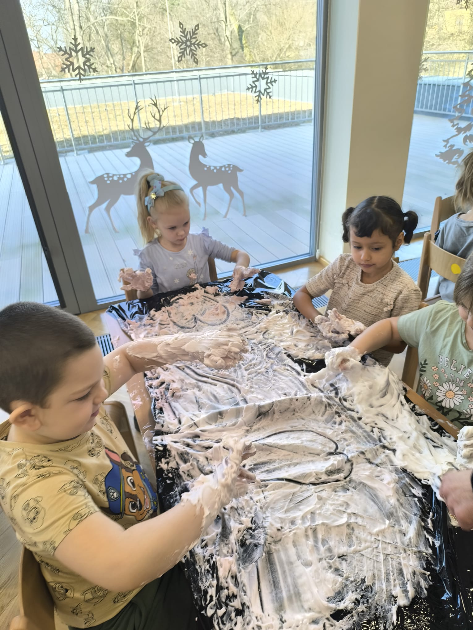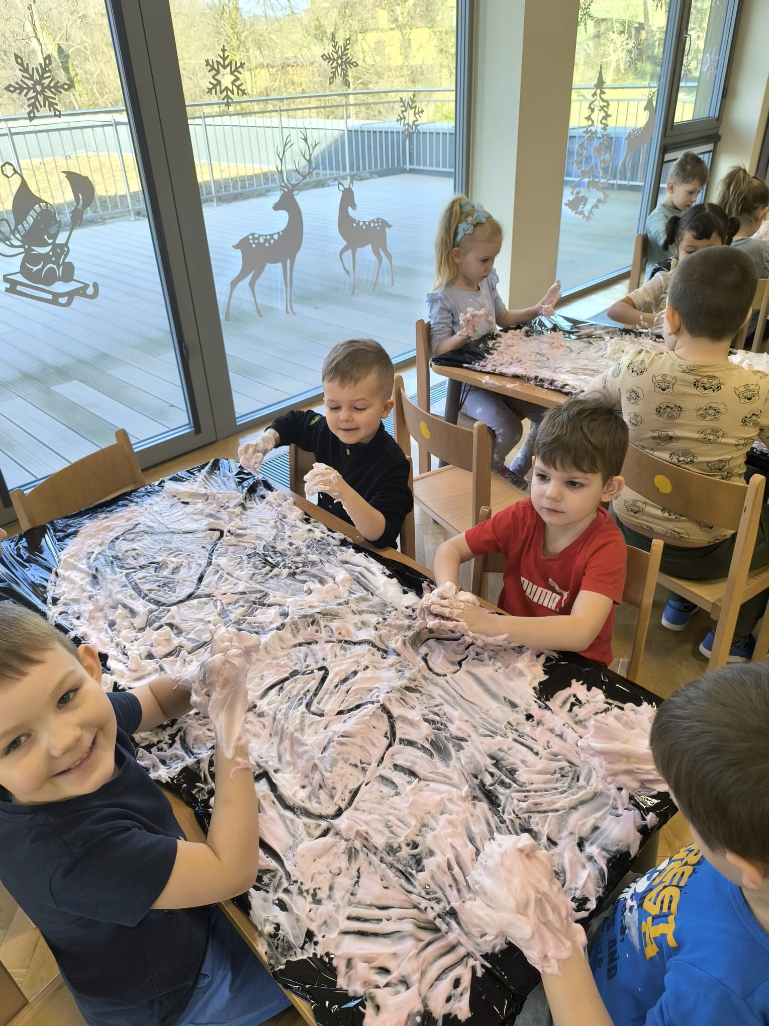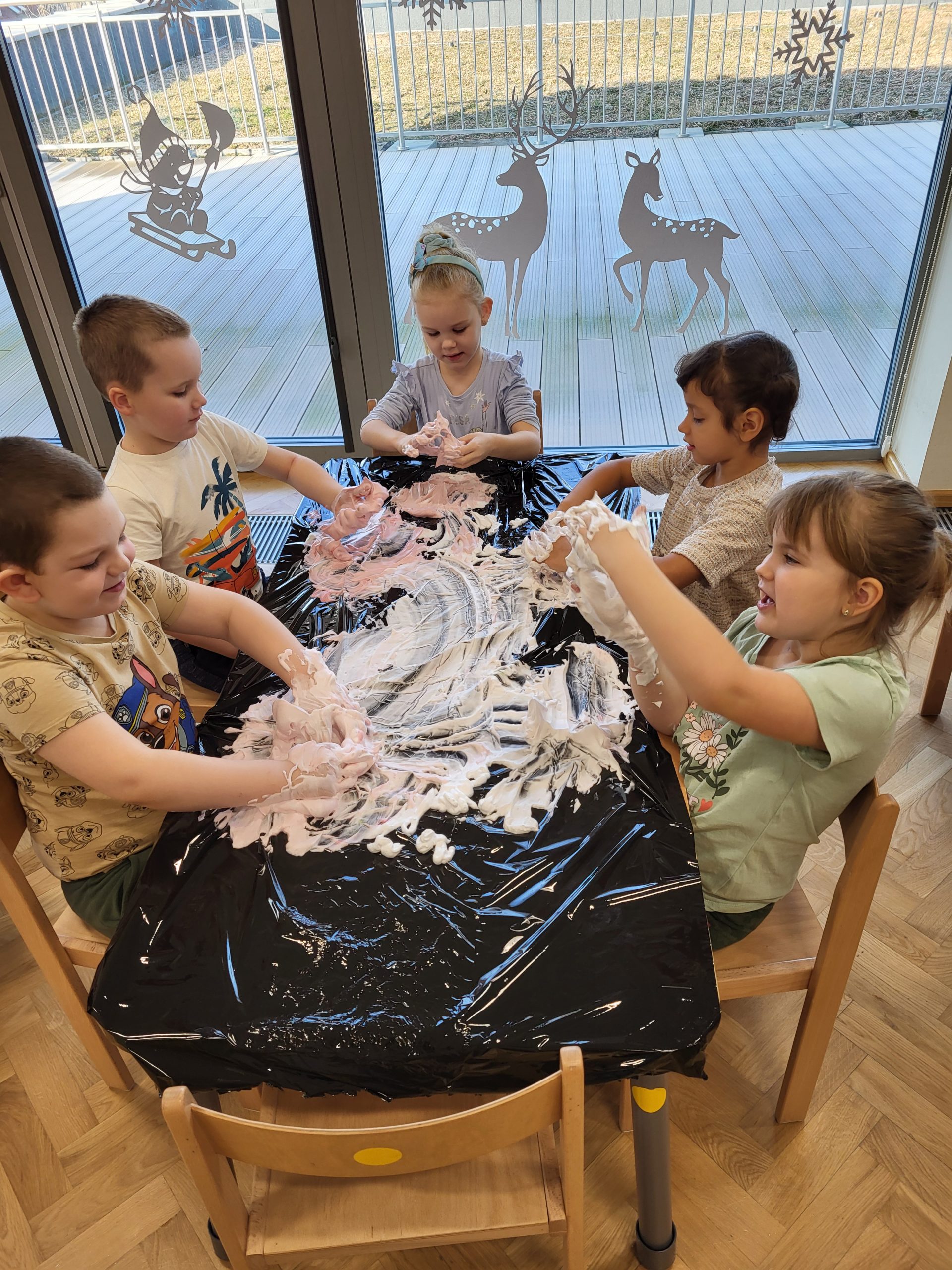 W dniu 11 lutego w naszej grupie, w ramach Ogólnopolskiego Projektu Edukacyjnego „Gramy Zmysłami” odbyły się zajęcia z wykorzystaniem pianek do golenia oraz barwników. Dzieci mieszały piankę z kolorowymi barwnikami i miały za zadanie rysować po niej palcami poznane w tym tygodniu figury geometryczne, jak również kwiatki, słońce, chmury, uśmiechnięte buzie. Był też czas na dowolną, kreatywną zabawę pianką. Zajęcia dostarczyły dzieciom wiele doznań sensorycznych zapachowych, wzrokowych, ale przede wszystkim stymulacji dotykowej. Wszystkie przedszkolaki świetnie się przy tym bawiły.