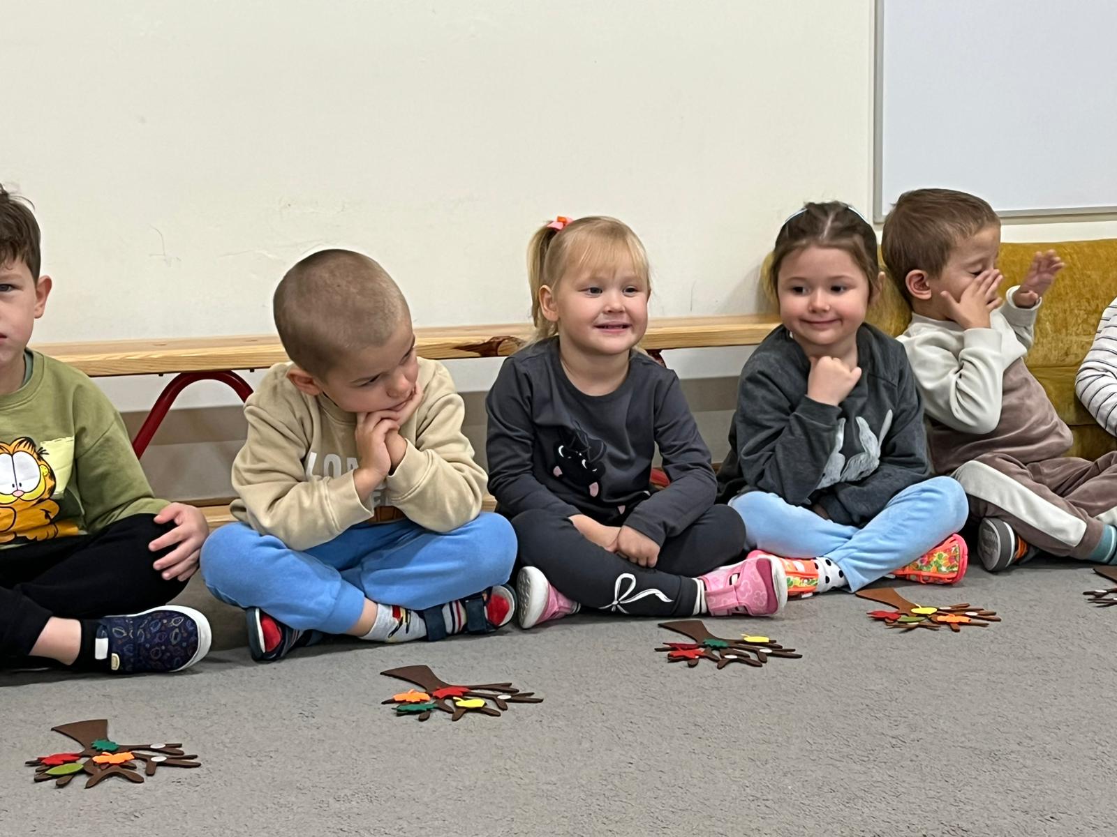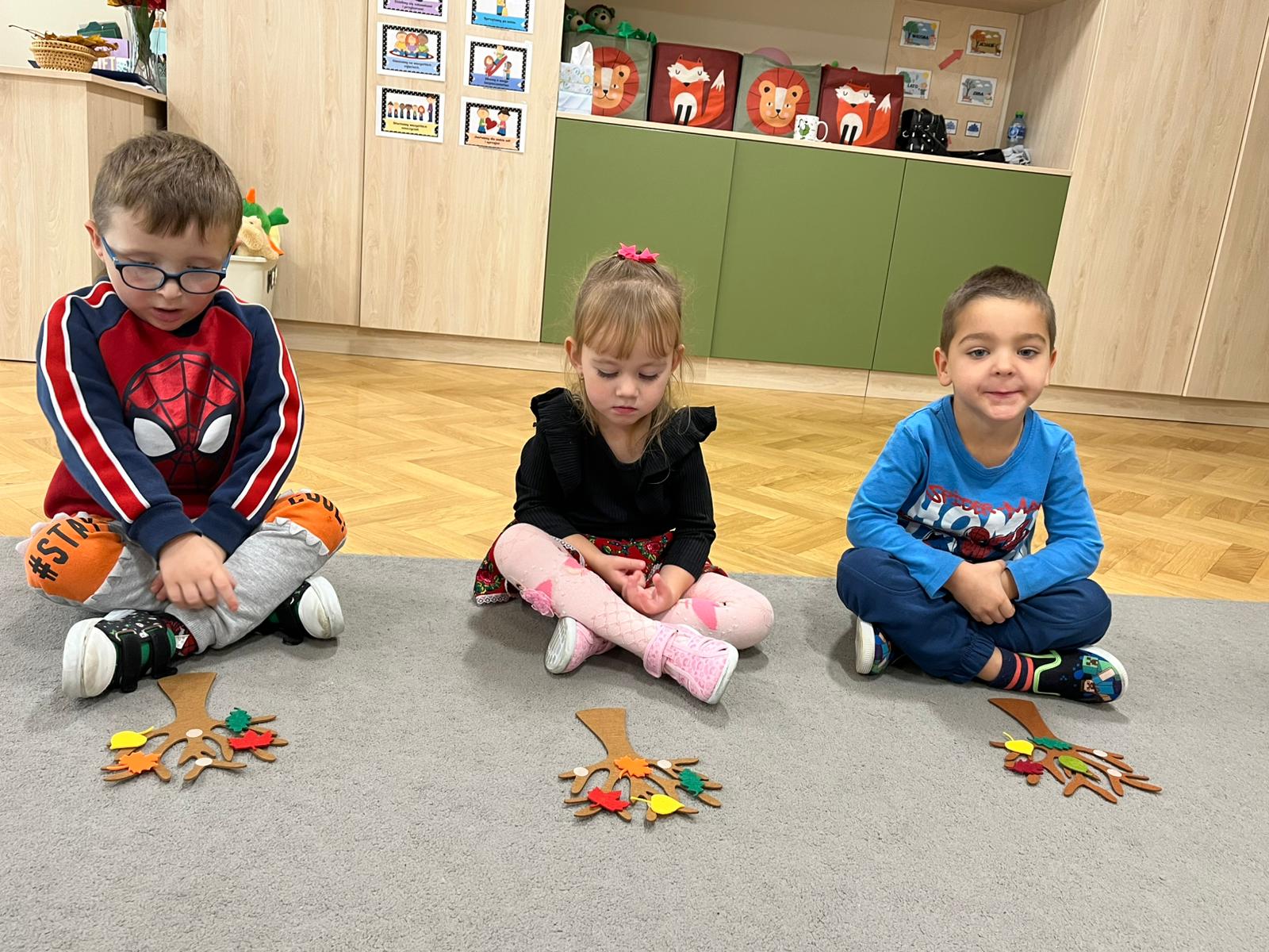 Podczas spacerów obserwowaliśmy zmiany zachodzące w przyrodzie – spadające liście, kasztany, żołędzie i barwne korony drzew. Dzieci chętnie zbierały dary jesieni, które później wykorzystaliśmy do wspólnych prac plastycznych.