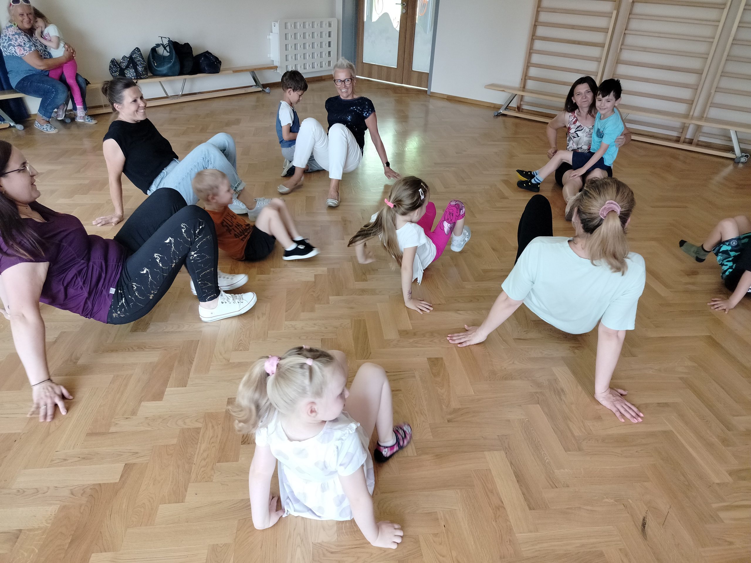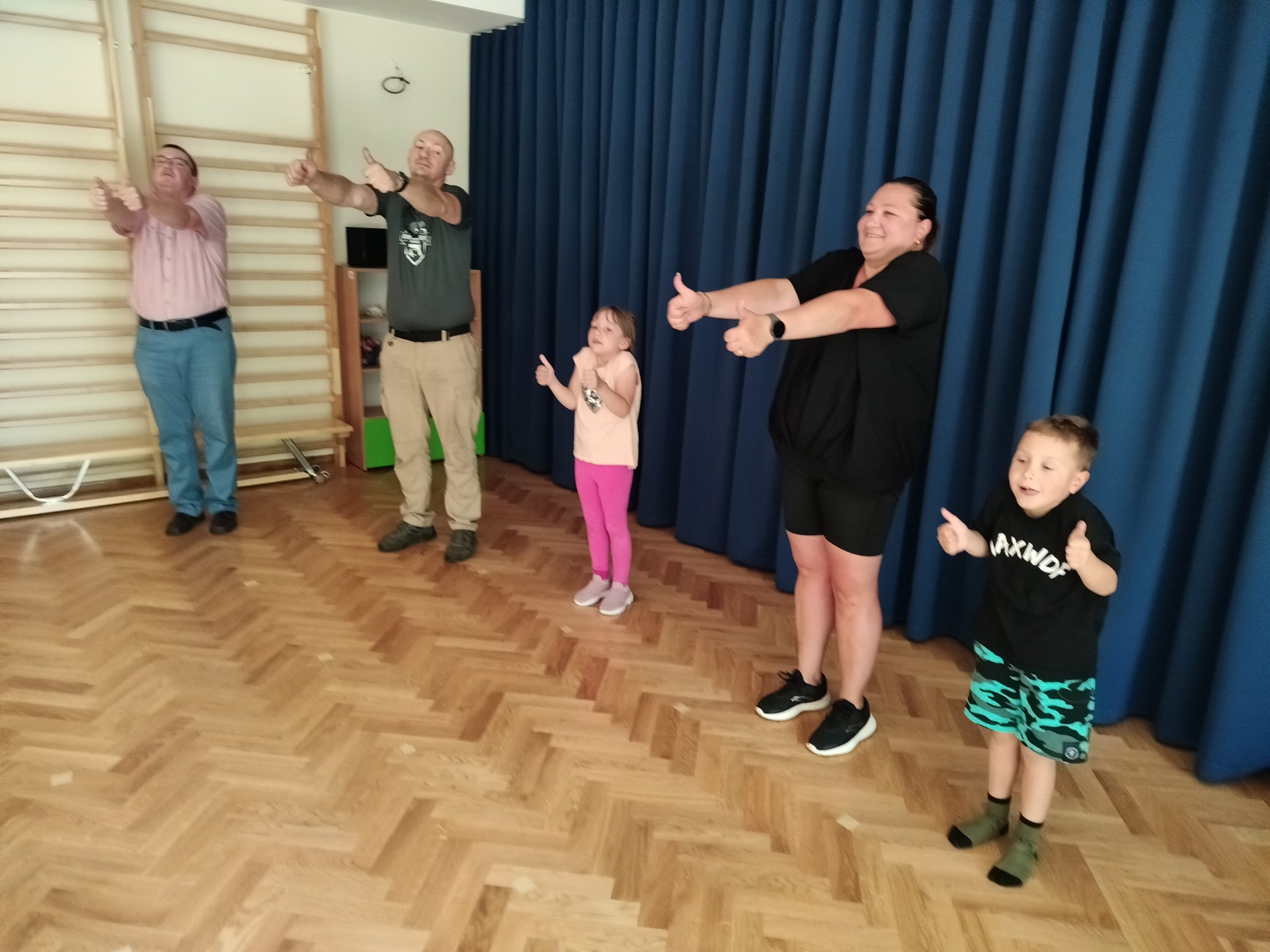 Dnia 22 maja 2024r. w ramach projektu „Gimnastyka na śniadanie oraz zdrowe odżywianie“, odbyły się zajęcia otwarte dla rodziców pt: „Aerobik dla mamy i dziecka“.
