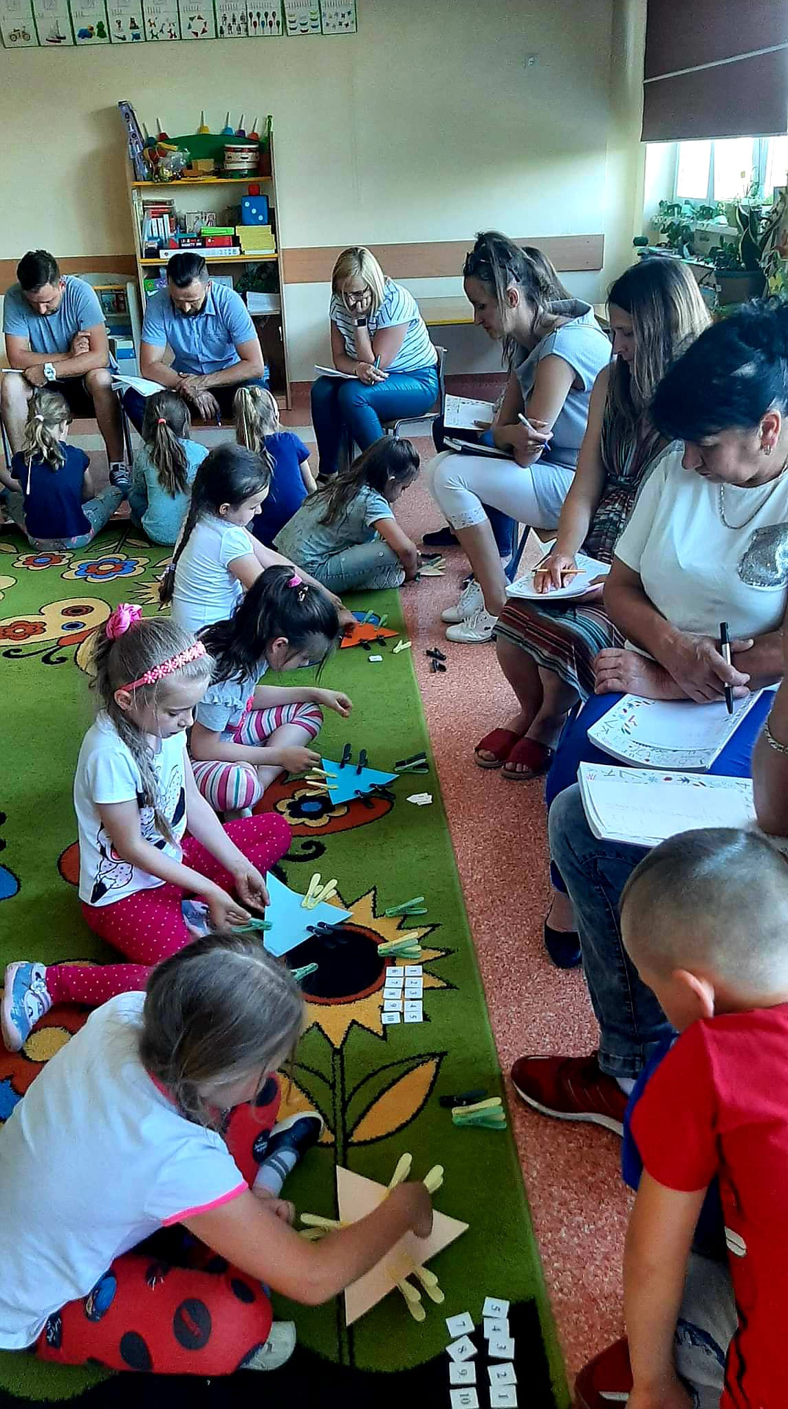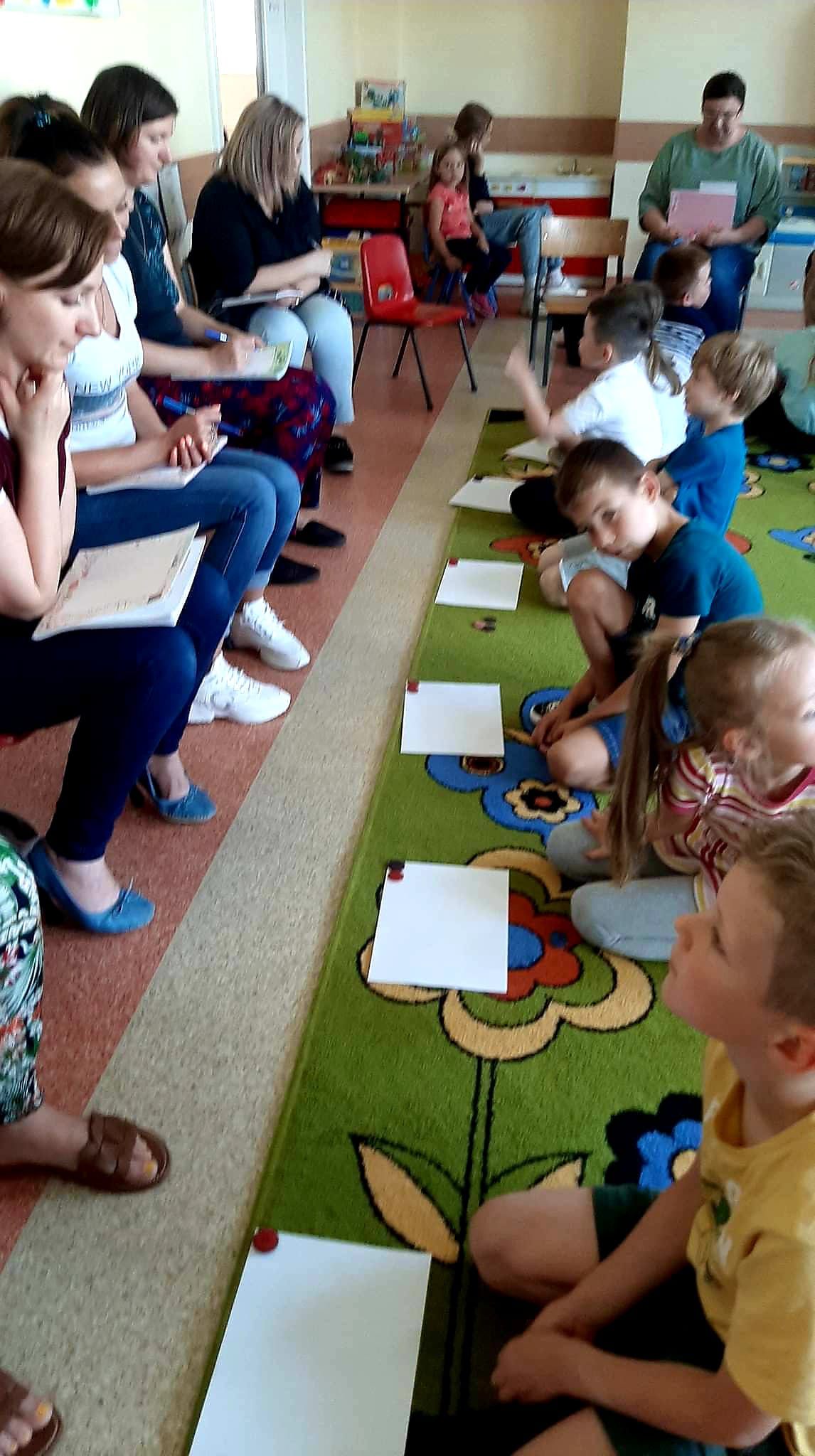 15.06.2022r. W grupie ,,Zajączków” odbył się ,, Turniej matematyczno- ekologiczny” z udziałem rodziców. Dzieci w skupieniu rozwiązywały działania, odpowiadały na pytania, a rodzice skrupulatnie przyznawali punkty za dobrze wykonane zadania. Dzieci wspaniale poradziły sobie ze wszystkimi przygotowanymi zabawami i zadaniami. ,,Zajączki” doskonale liczą, rozpoznają prawą i lewą stronę, orientują się na kartce papieru oraz rozwiązują proste zadania tekstowe. Przedszkolaki są także super ekologami. Wiedzą jak segregować śmieci, potrafią wskazać działania proekologiczne i wspaniale rozwiązują rebusy. Podczas turnieju wszystkim towarzyszyły doskonałe humory:)