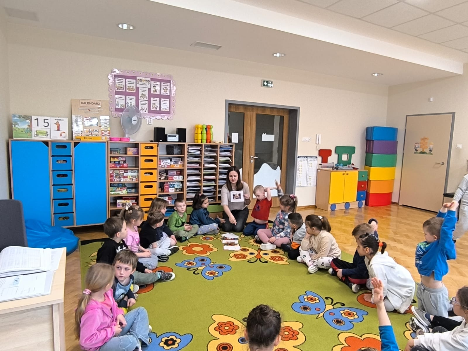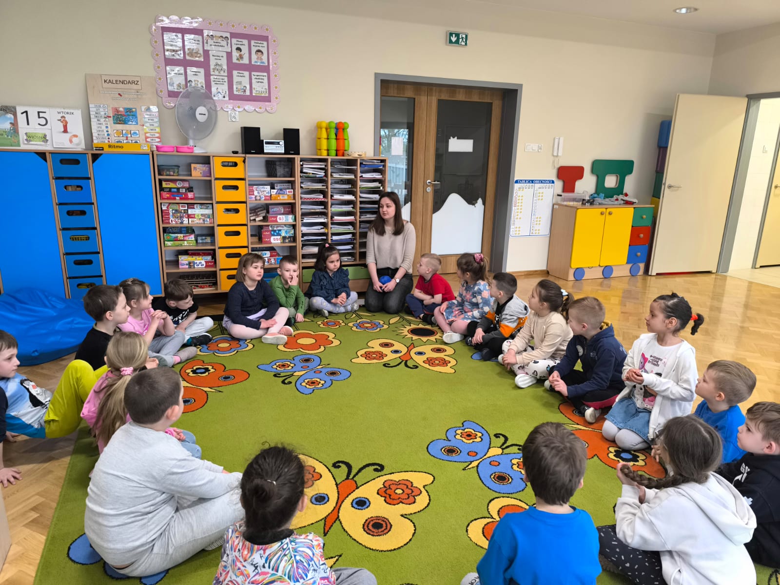 We wtorek w naszej grupie Pani psycholog przeprowadziła zajęcia psychoedukacyjne pt. „Rozwiązywanie konfliktów. Jak się pogodzić?”. Celem zajęć było poszerzanie wiedzy na temat konfliktów i sposobów ich rozwiązywania. Na początku dzieci opowiedziały z kim ostatni raz się pokłóciły i jaki był powód konfliktu. Następnie posłuchały bajki „Przygody Fenka. Rozwiązywanie konfliktów”. Dzięki niej nauczyły się nowego słowa i metody radzenia sobie w konfliktowych sytuacjach – KOMPROMIS. Kolejnym zadaniem dzieci było wspólne szukanie rozwiązań uwzględniających potrzeby obu stron konfliktów. Na koniec dzieci uczestniczyły w zabawie ruchowej oraz puszczały sobie „Iskierkę przyjaźni”.