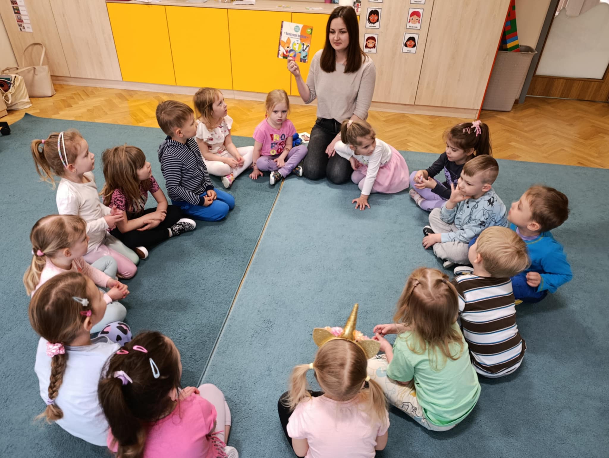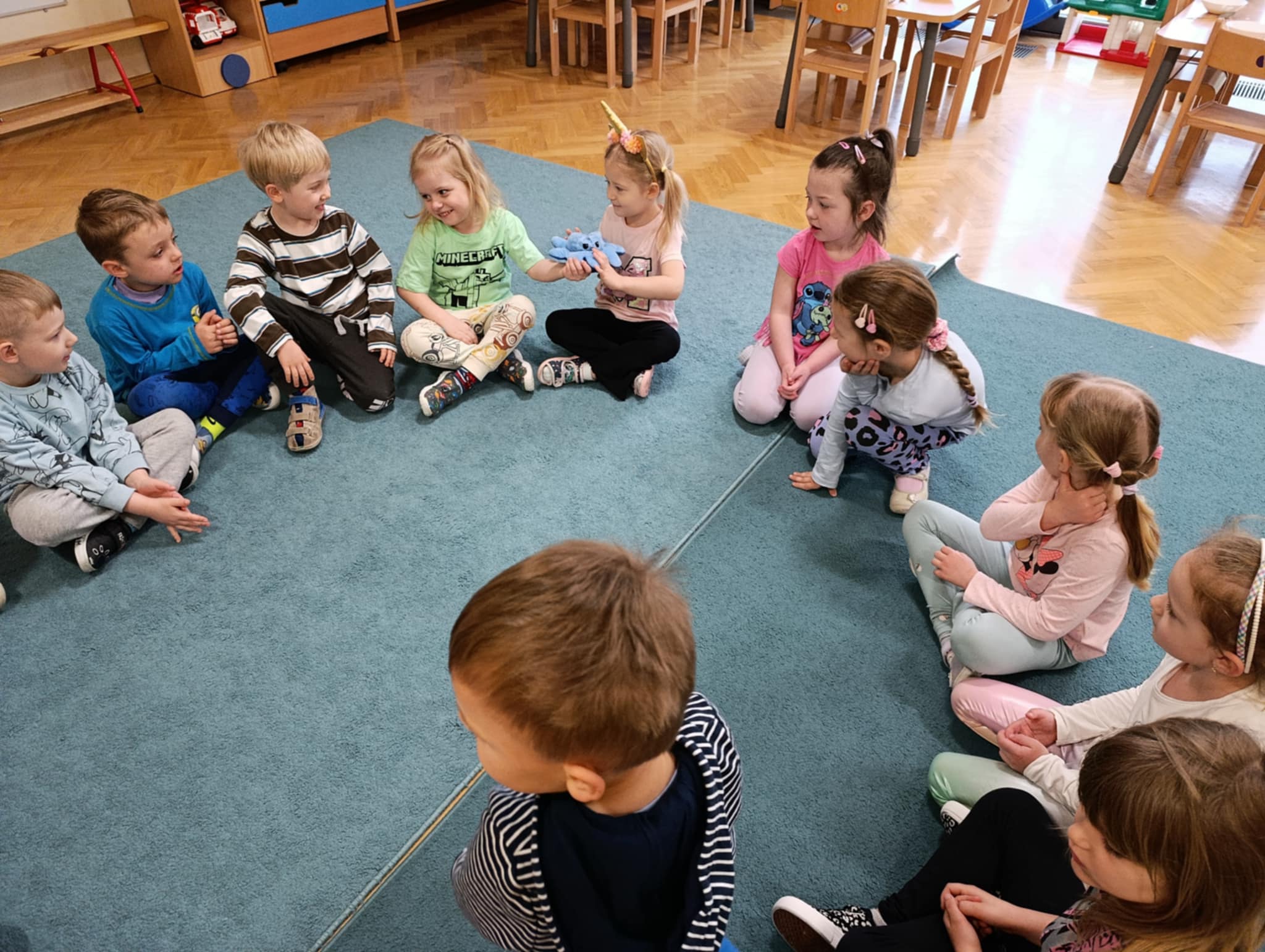 W poniedziałek w naszej grupie Pani psycholog przeprowadziła zajęcia psychoedukacyjne pt. „Rozwiązywanie konfliktów. Jak się pogodzić?”. Celem zajęć było poszerzanie wiedzy na temat konfliktów i sposobów ich rozwiązywania. Na początku dzieci opowiedziały z kim ostatni raz się pokłóciły i jaki był powód konfliktu. Następnie posłuchały bajki „Przygody Fenka. Rozwiązywanie konfliktów”. Dzięki niej nauczyły się nowego słowa i metody radzenia sobie w konfliktowych sytuacjach – KOMPROMIS. Kolejnym zadaniem dzieci było wspólne szukanie rozwiązań uwzględniających potrzeby obu stron konfliktów. Na koniec dzieci uczestniczyły w zabawie ruchowej oraz puszczały sobie „Iskierkę przyjaźni”.