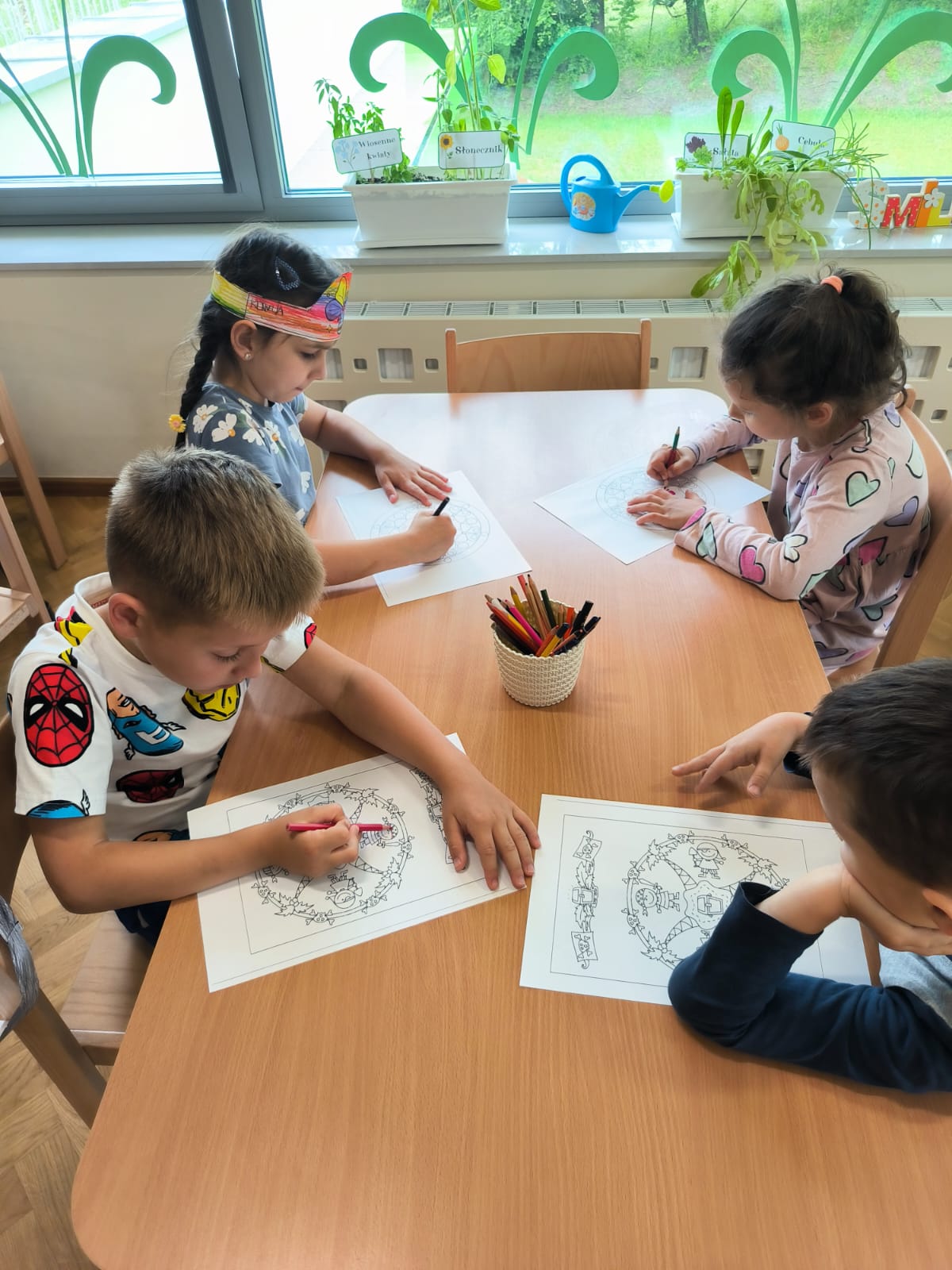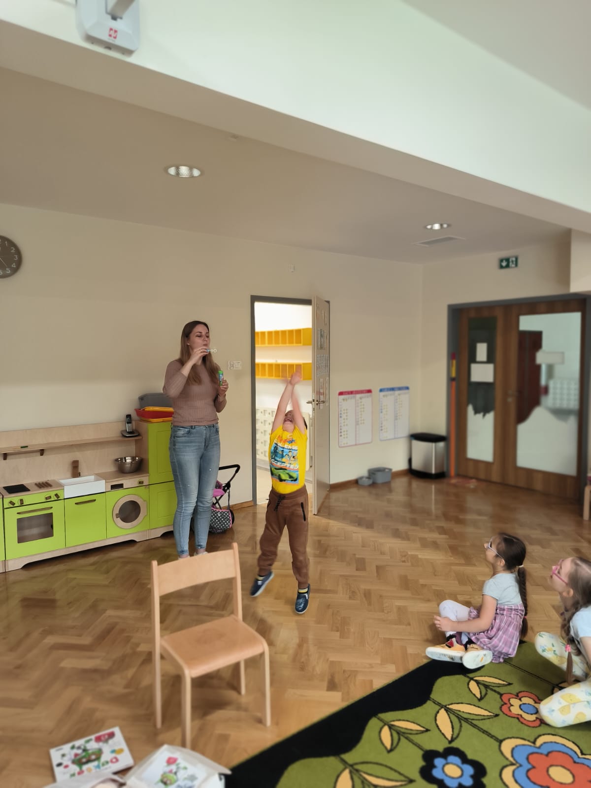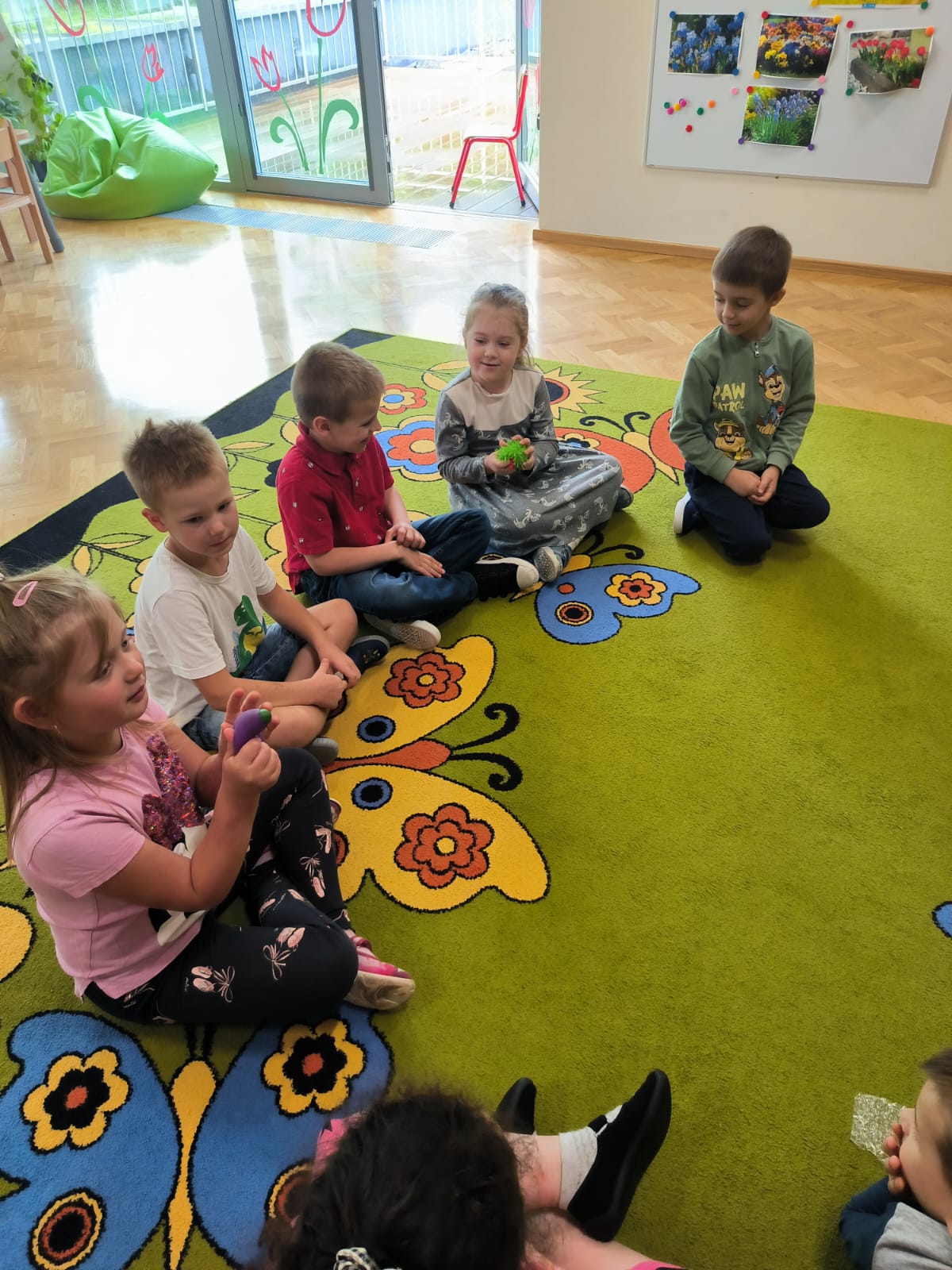 Dzieci z naszej grupy miały przyjemność uczestniczyć 04.06.2024 r w zajęciach prowadzonych przez Panią psycholog pt. ,,Kolorowy potwór – doktor od emocji”. Zajęcie opierały się na książce ,,Kolorowy potwór. Doktor od emocji” – w książce dzieci zapoznały się z apteczką kolorowego potwora i poznały jego sposoby na radzenie sobie z emocjami. Podczas zajęć dzieci przypomniały sobie podstawowe emocje oraz wyrażały je za pomocą swojej mimiki twarzy oraz gestów. Poznały techniki radzenia sobie z odczuwanymi emocjami (techniki oddechowe, pękanie foli bąbelkowej, zabawa gniotkami, piórka, bańki mydlane, mandala oraz muzyka relaksacyjna).