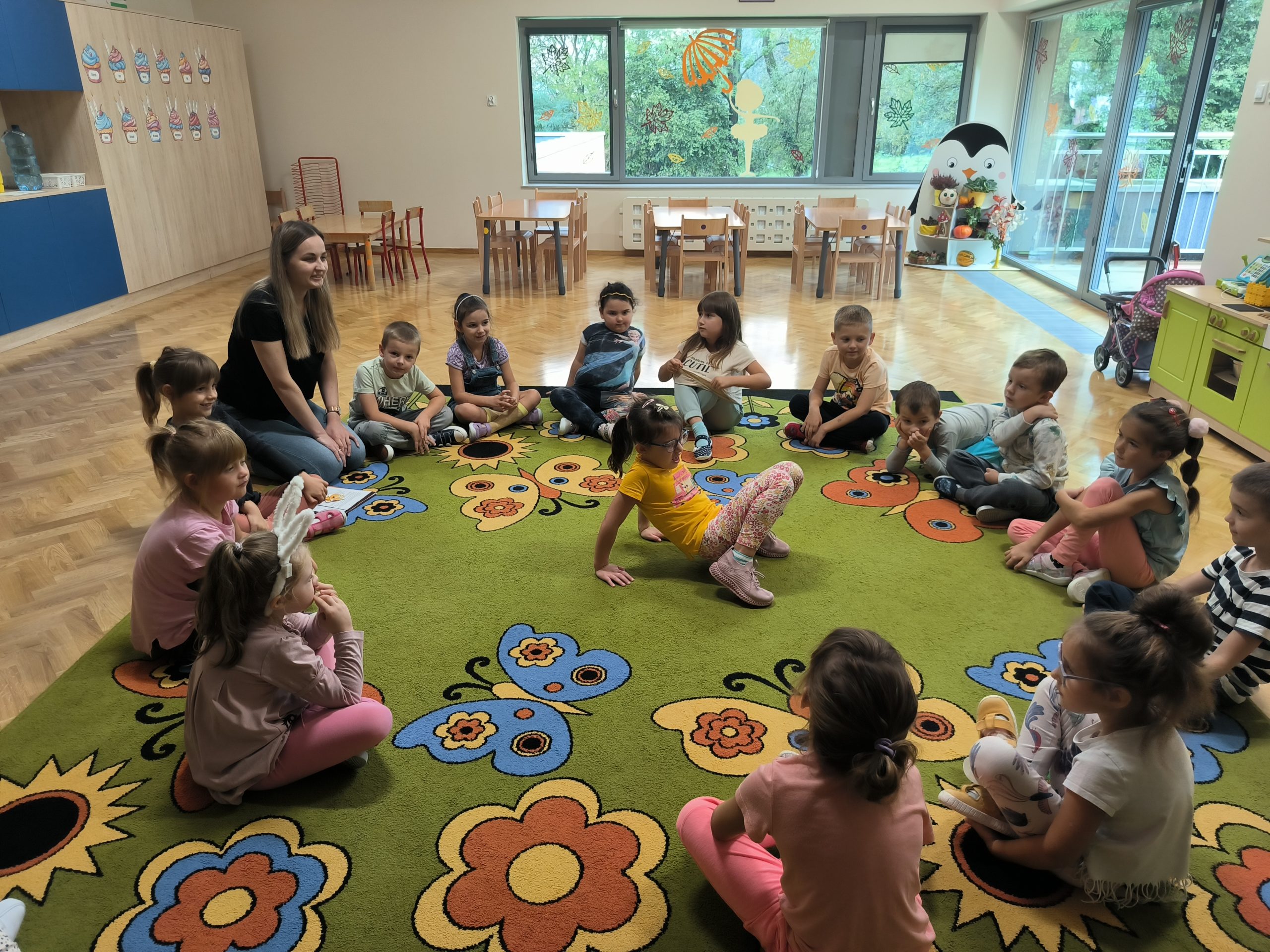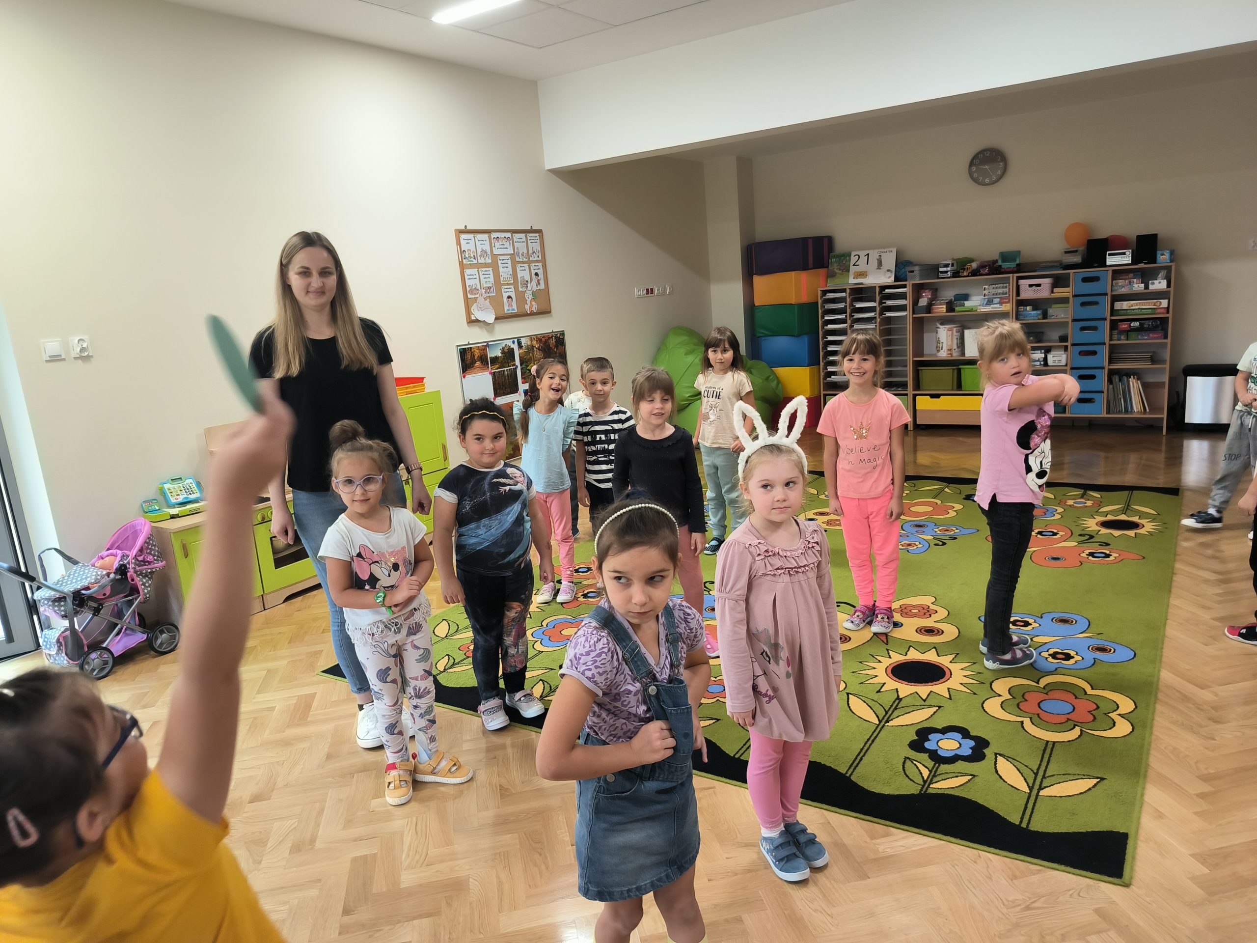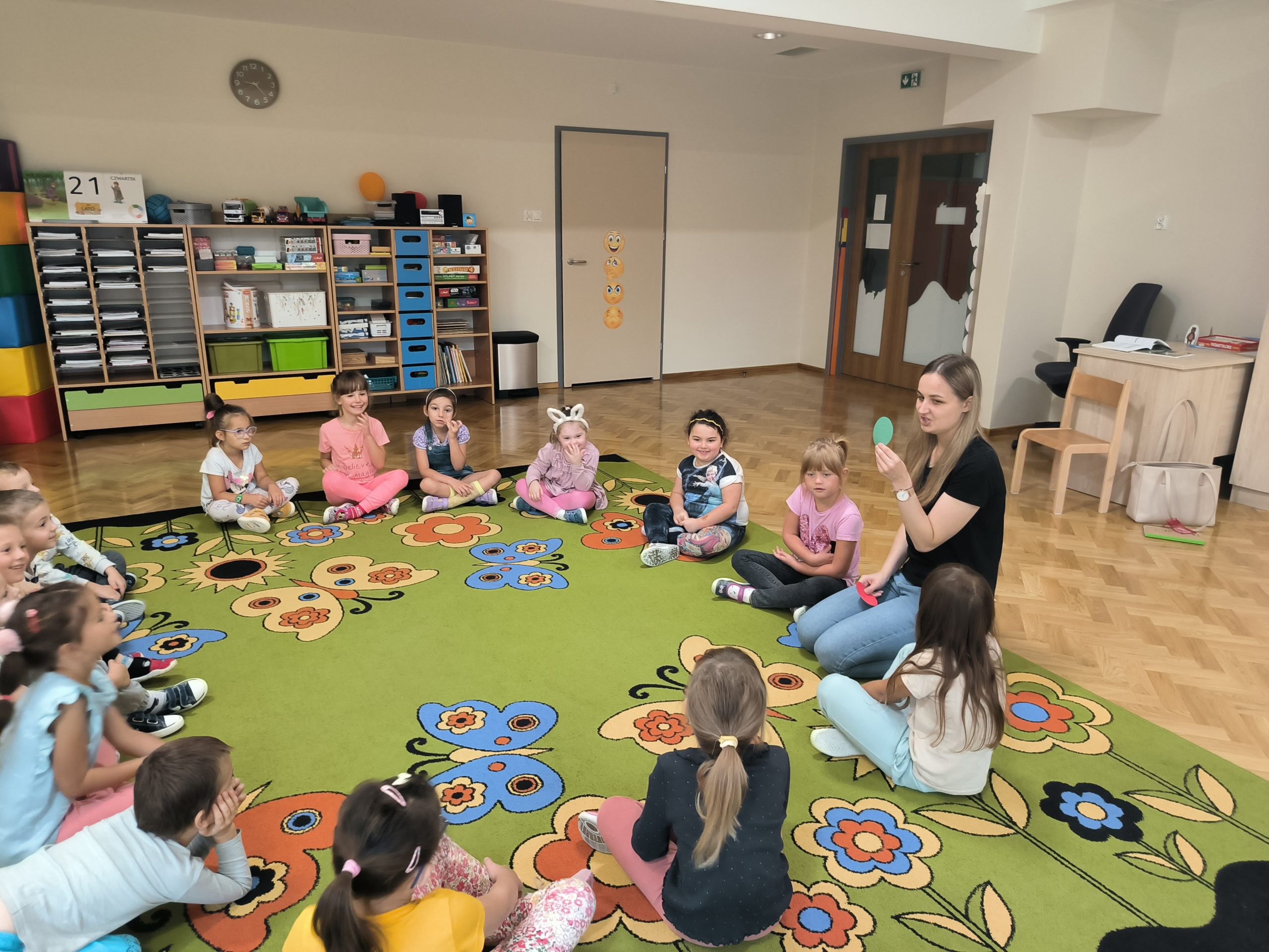 Poniedziałkowy poranek w grupie „Zajączki” rozpoczął się od zabaw integracyjnych z psychologiem. Podczas których dzieci miały możliwość zapoznać się z nowym psychologiem, wzmocnić komunikację w grupie, a także uczyć się współpracy. Zajęcia przebiegały w miłej atmosferze, a przedszkolaki świetnie bawiły się podczas zabaw pogłębiających relacje społeczne.