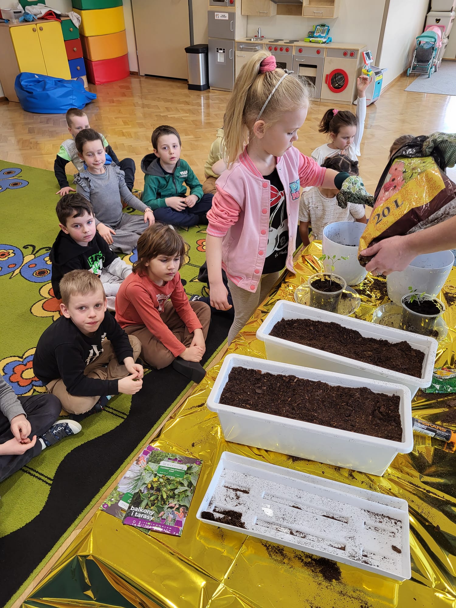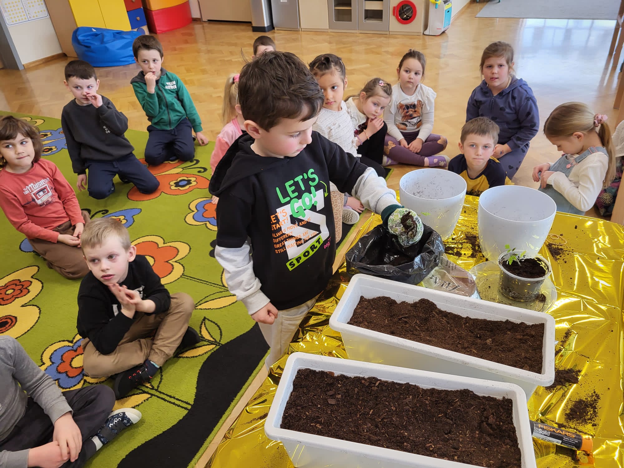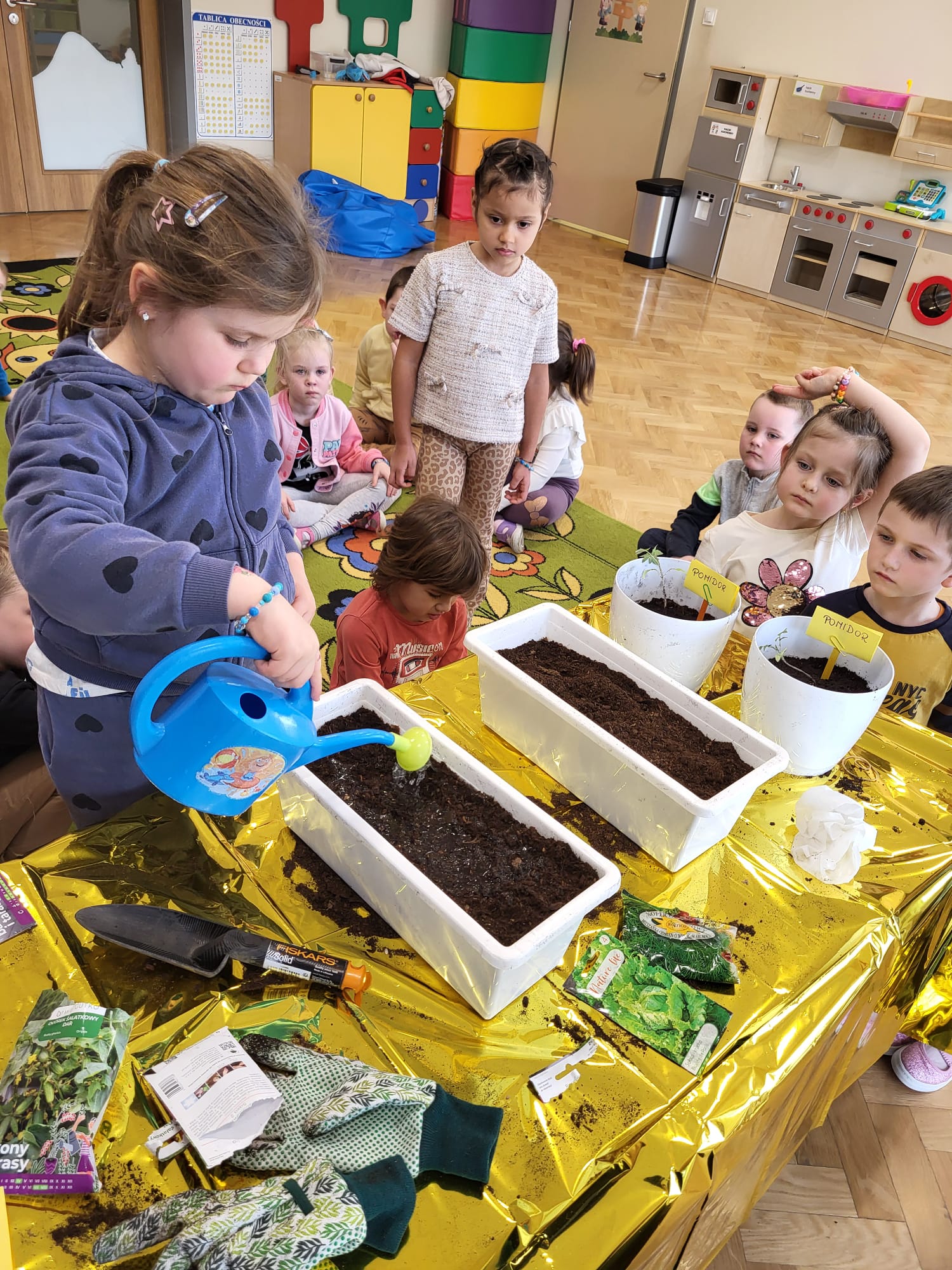 Dzieci z naszej grupy założyły hodowlę warzyw. Wykonały wiosenne prace w kąciku przyrody. Dzieci bardzo chętnie włączyły się w prace ogrodnicze. Przedszkolaki dowiedziały się co jest potrzebne do wzrostu roślin oraz nauczyły się sadzić szczypiorek, , pomidory, rzodkiewkę, sałatę, ogórki i koperek. Mali ogrodnicy bardzo zaangażowali się w sadzenie i roślin.