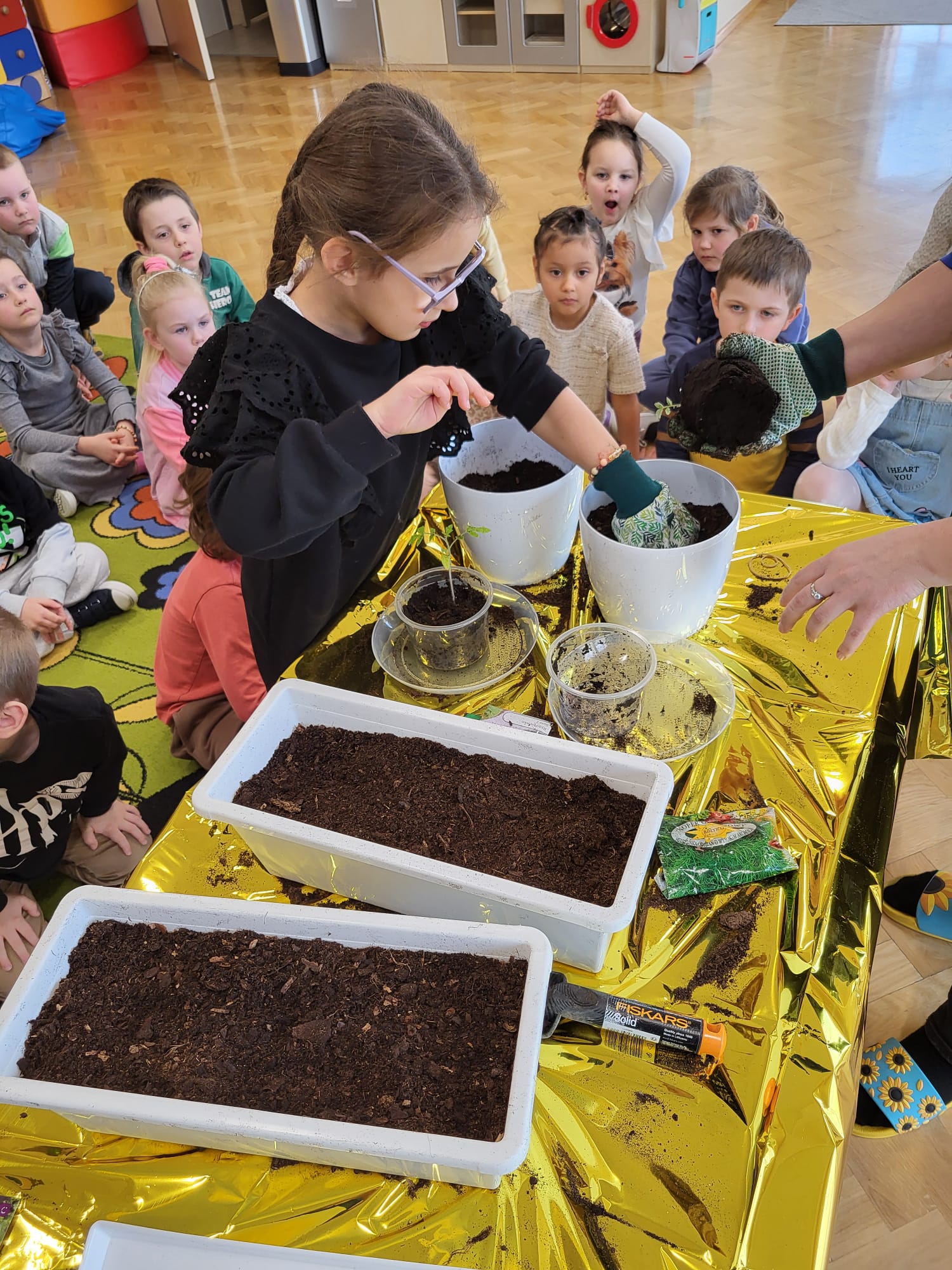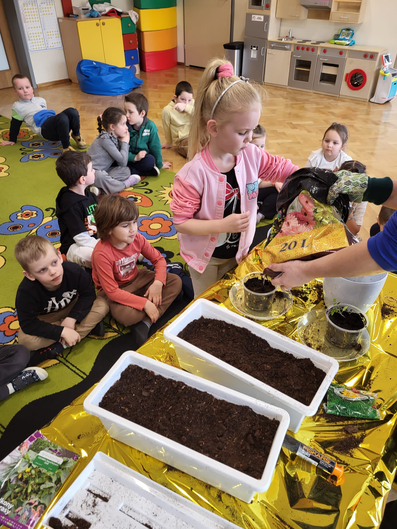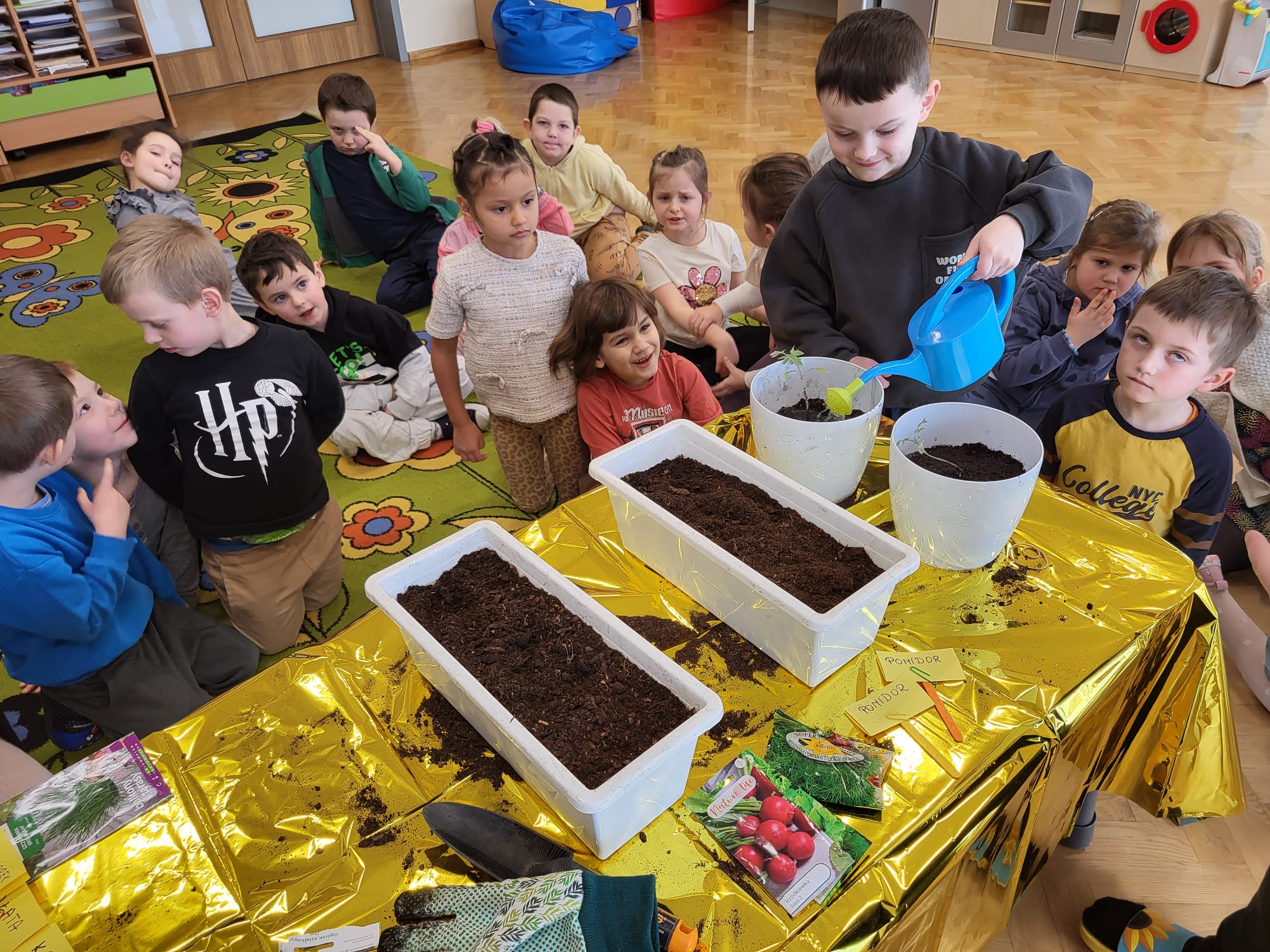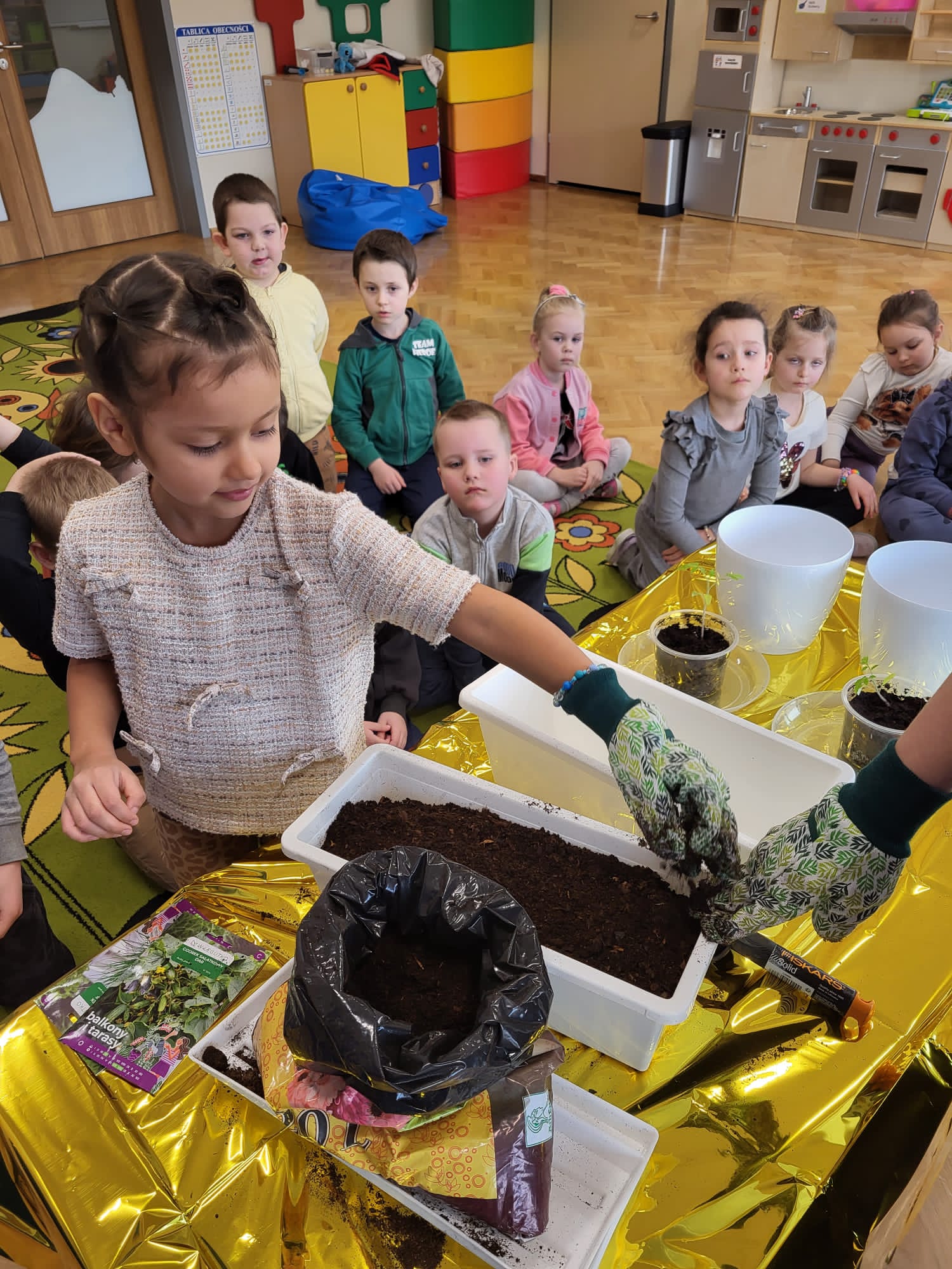 Dzieci z naszej grupy założyły hodowlę warzyw. Wykonały wiosenne prace w kąciku przyrody. Dzieci bardzo chętnie włączyły się w prace ogrodnicze. Przedszkolaki dowiedziały się co jest potrzebne do wzrostu roślin oraz nauczyły się sadzić szczypiorek, , pomidory, rzodkiewkę, sałatę, ogórki i koperek. Mali ogrodnicy bardzo zaangażowali się w sadzenie i roślin.