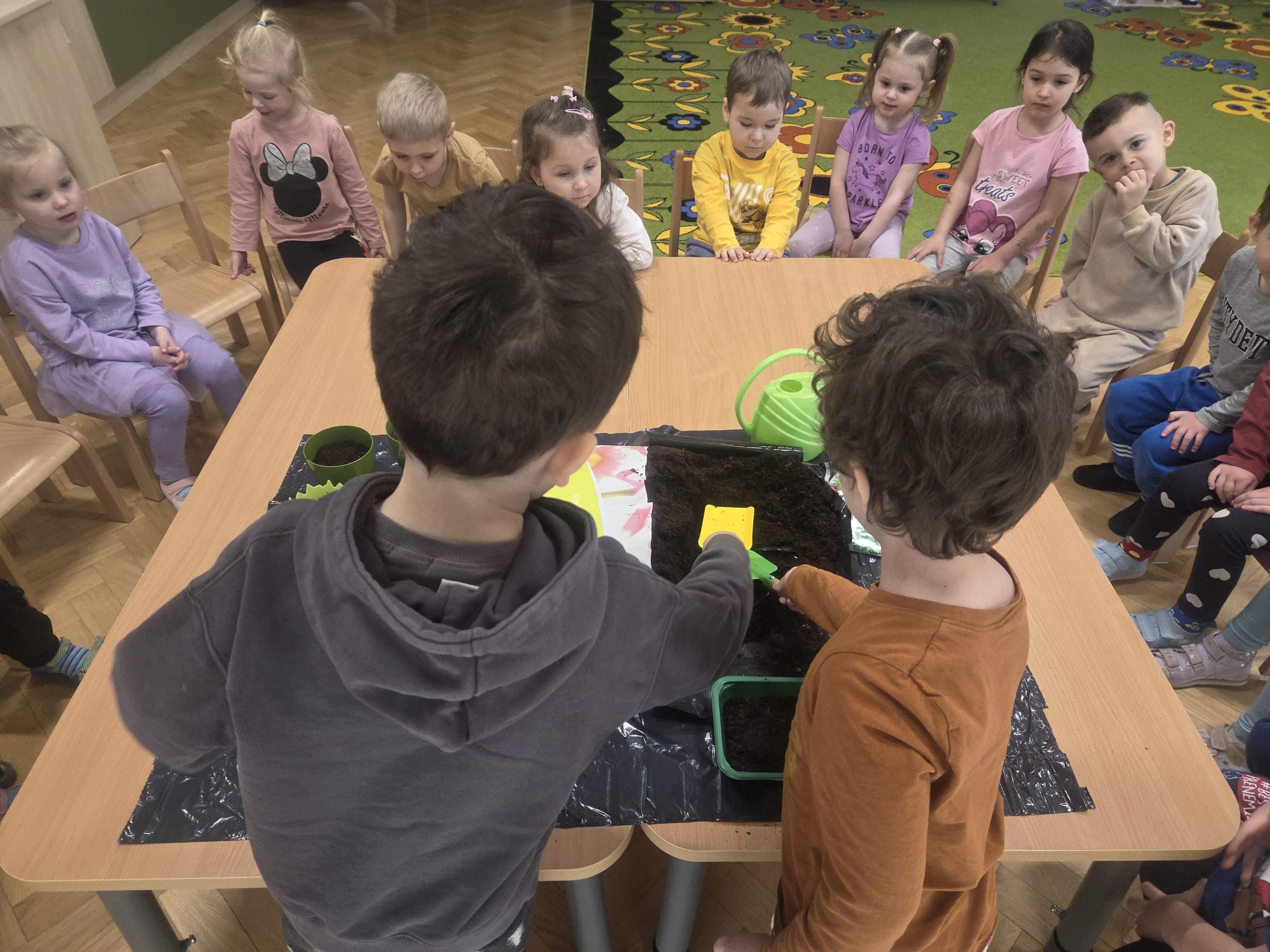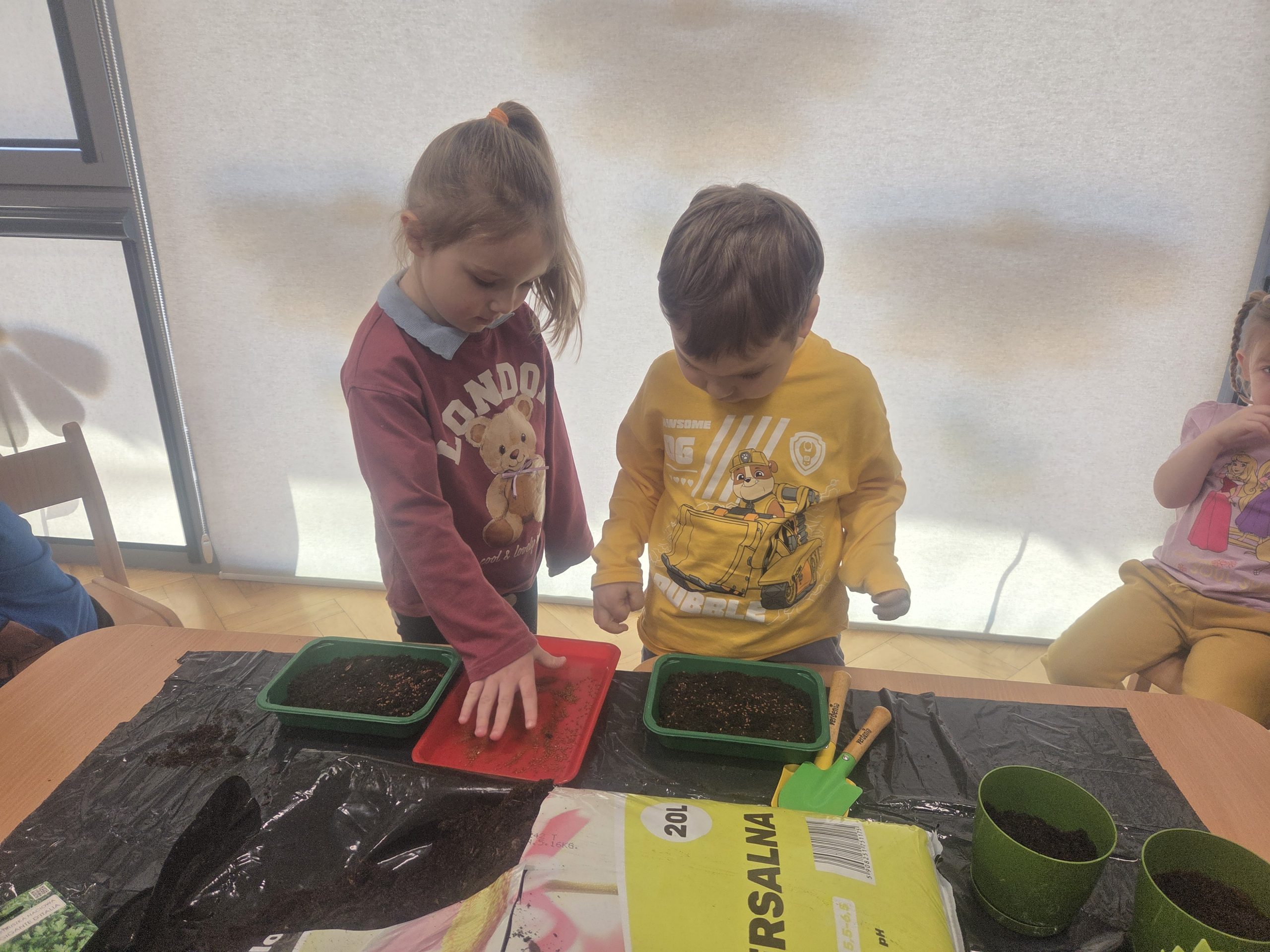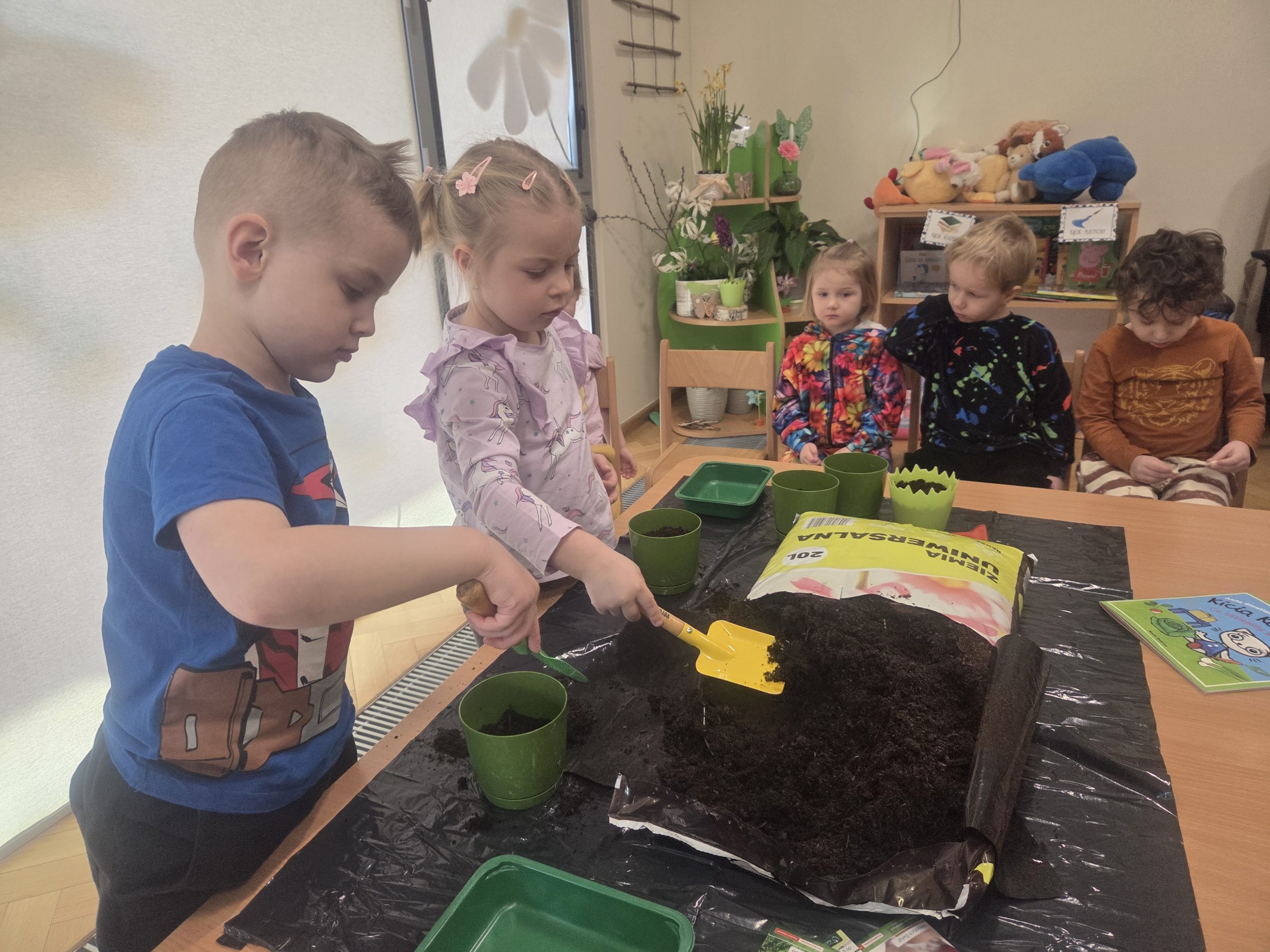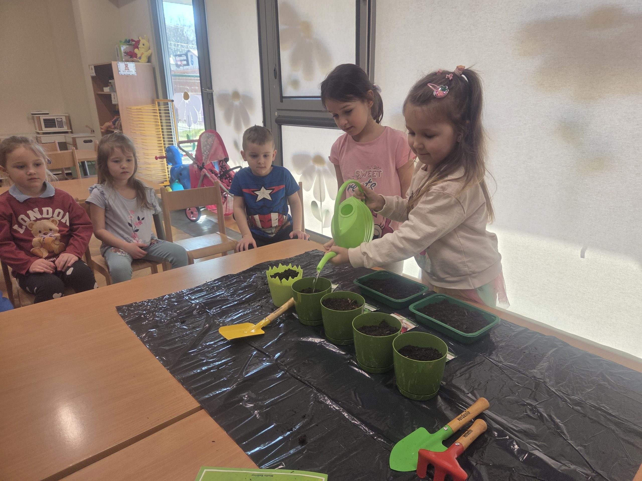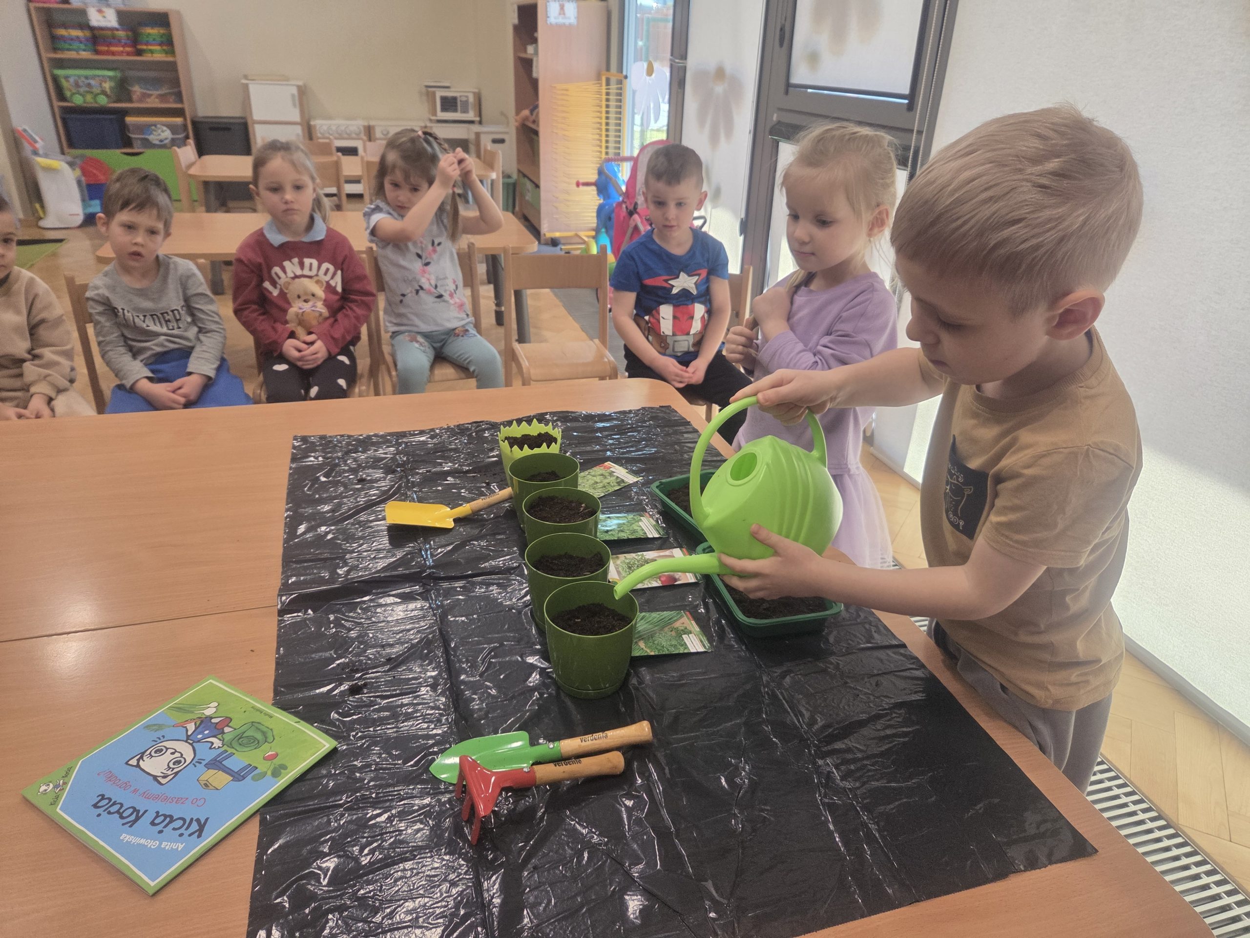20 marca, tuż przed pierwszym dniem wiosny, Zajączki postanowiły założyć własną hodowlę warzyw w naszej sali. Realizując kolejny temat z Programu „Z Kicią Kocią maluchy zmieniają się w zuchy”, najpierw dzieci wysłuchały opowiadania o tym jak Kicia Kocia wraz z przyjaciółmi siała warzywa w przedszkolu, a następnie przystąpiliśmy do pracy. Każdy z nas miał okazję od podstaw rozpocząć pracę – zasiać jakieś warzywo, czy też podlać je po skończonym wysiewie. Każdego dnia dzieci będą samodzielnie podlewać warzywa, aby uświadomić im jak ważne jest dbanie o rośliny/warzywa. Oby już wkrótce wyrosły pierwsze plony!