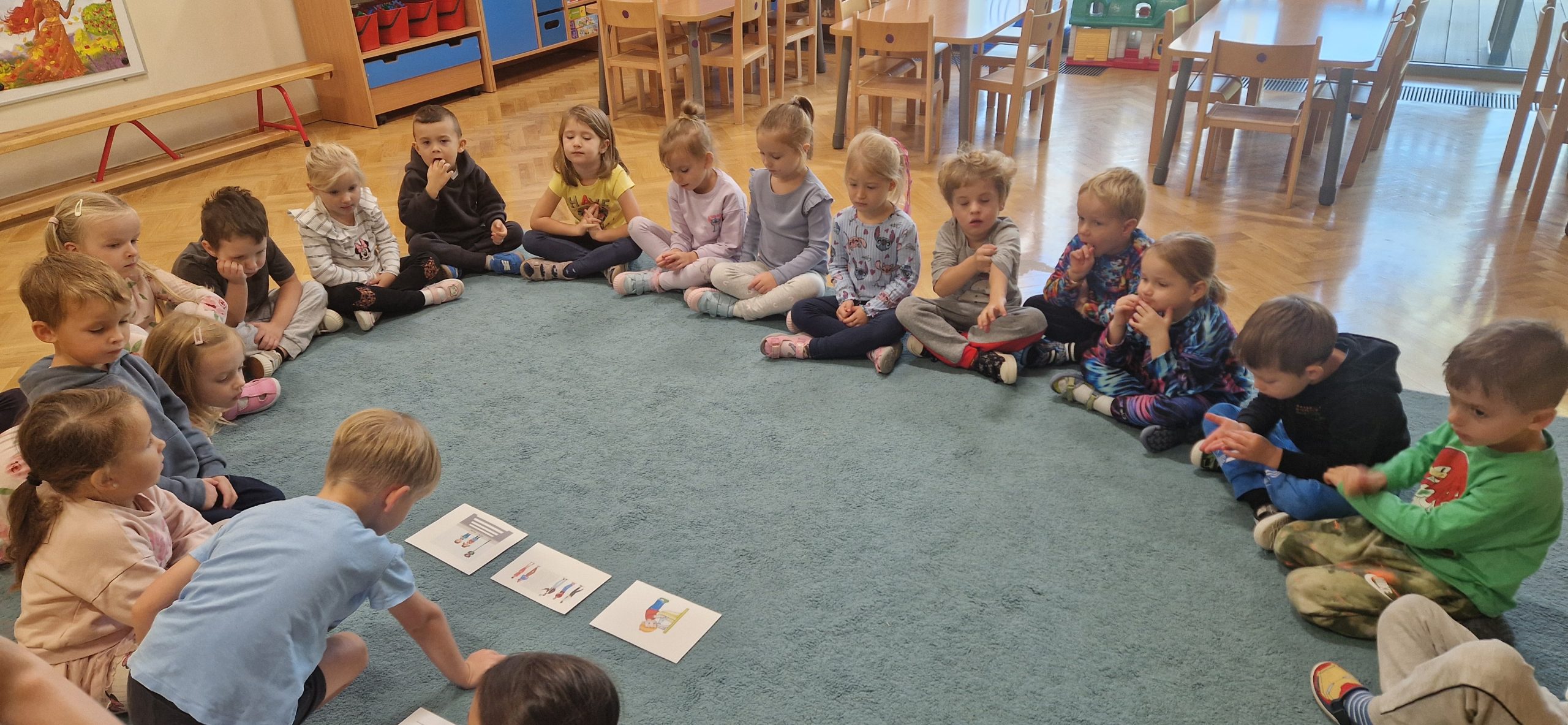 Dzieci z naszej grupy miały przyjemność uczestniczyć 06.10.2025 r. w zajęciach prowadzonych przez Panią psycholog pt. „Zasady panujące