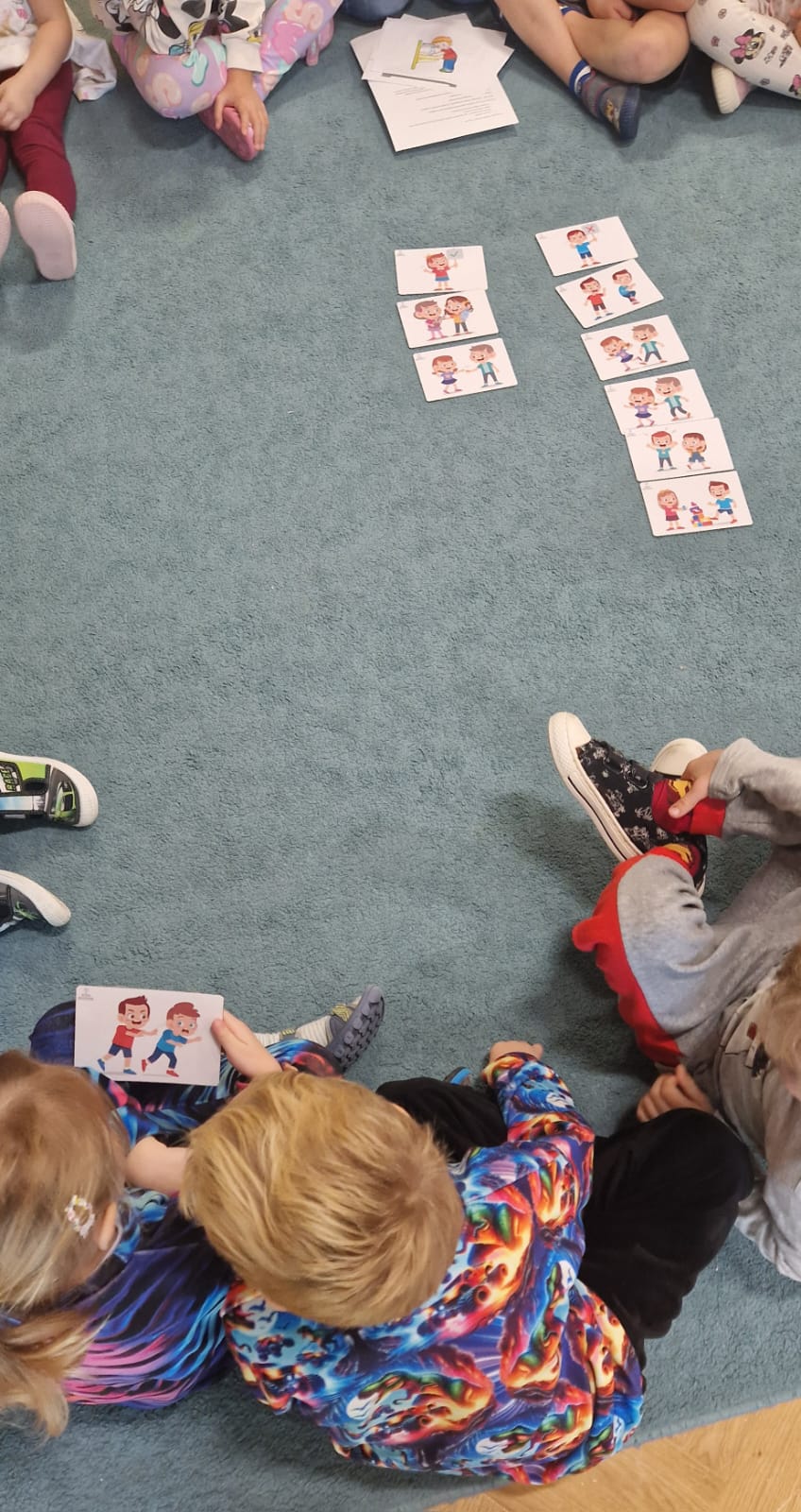 w grupie”. Podczas zajęć dzieci dowiedziały się, co to są zasady i dlaczego należy je przestrzegać. Opisywały obrazki z różnymi sytuacjami i oceniały, czy dane zachowanie jest dobre, czy złe.