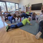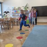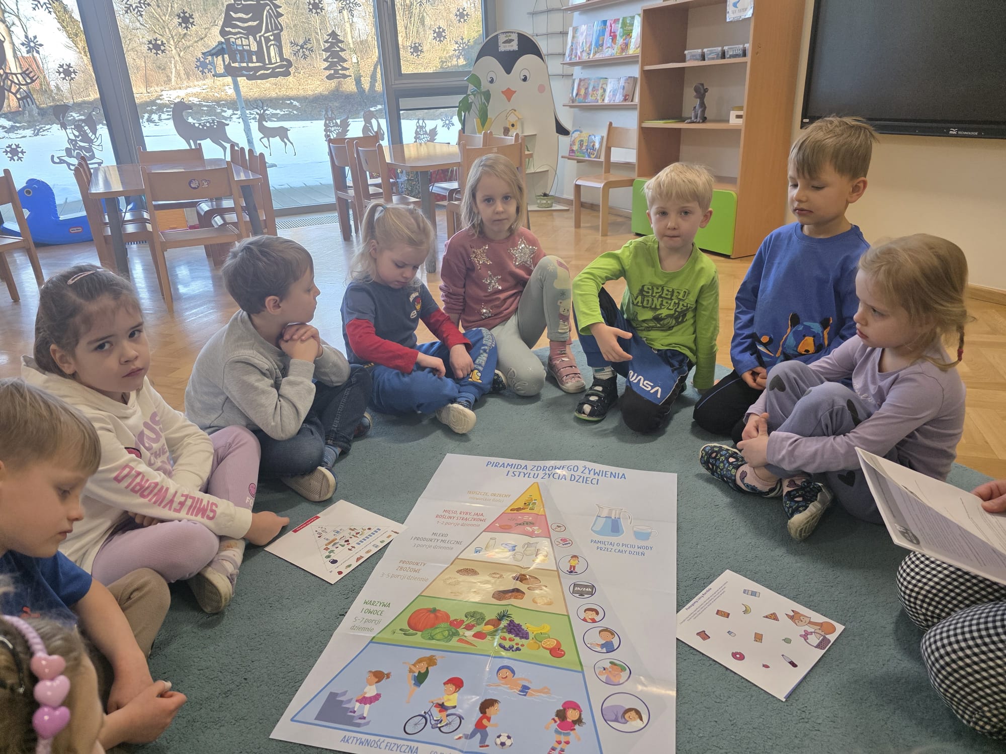 i potrzebne organizmowi, a których należy bezwzględnie unikać i dlaczego. Dzieci wzięły też udział w zabawach ruchowych: ” cukrowa przeszkoda” i wykonały ćwiczenia ruchowe z lisicą Karolinką.