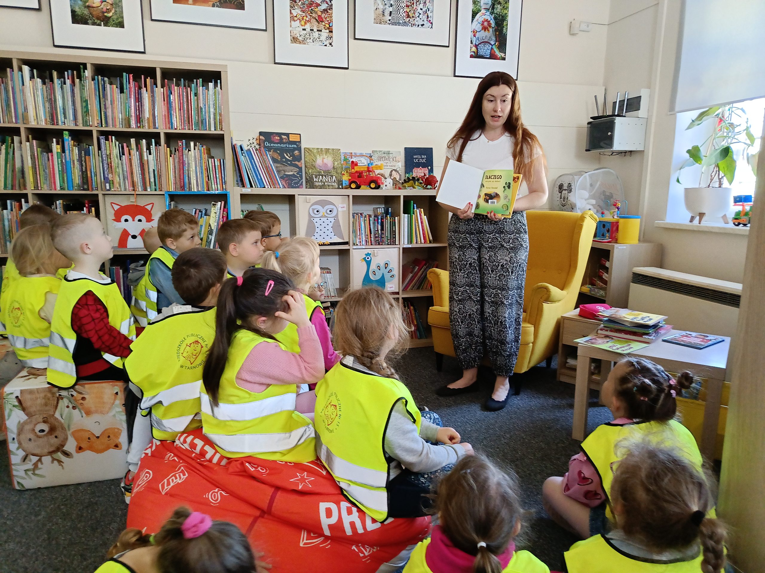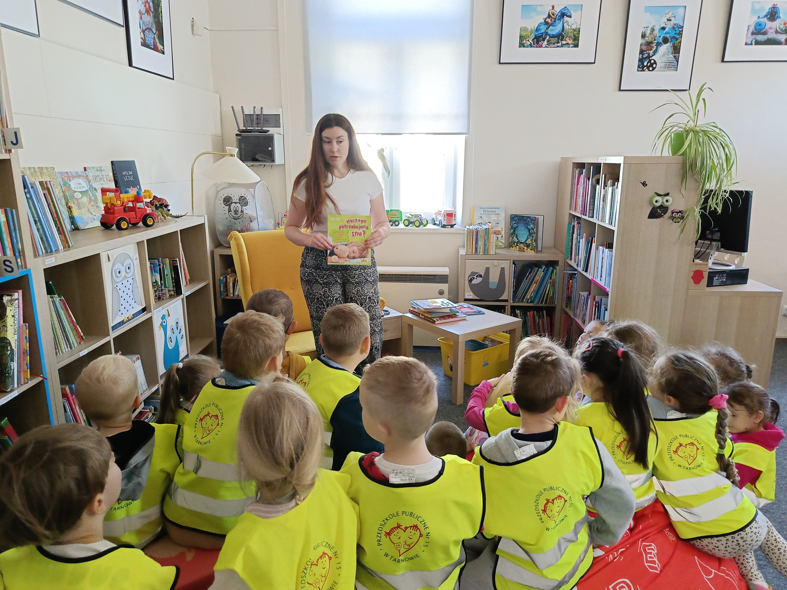 Dzieci w przyjazny i dostosowany do ich wieku sposób dowiedziały się, jak ważne jest codzienne dbanie o swoje zdrowie. Podczas spotkania rozmawialiśmy o znaczeniu zdrowego odżywiania – dzieci wymieniały produkty które są dobre dla naszego organizmu, a których warto unikać. Nie zabrakło również zachęty do codziennej gimnastyki oraz zabaw i aktywności na świeżym powietrzu . Przedszkolaki przypomniały sobie też zasady higieny: jak i kiedy należy myć ręce, dlaczego trzeba dbać o zęby oraz jak ważne jest utrzymywanie czystości ciała. Rozmawialiśmy również o roli snu w życiu dziecka. Dzieci z dużym zaangażowaniem uczestniczyły w zajęciach – chętnie odpowiadały na pytania, rozwiązywały zagadki i dzieliły się swoją wiedzą. Serdecznie dziękujemy Paniom pracującym w Bibliotece za zaproszenie i przygotowanie tak wartościowych zajęć! Jesteśmy przekonani, że ta wizyta na długo pozostanie w pamięci naszych przedszkolaków i zachęci je do dbania o zdrowie każdego dnia!