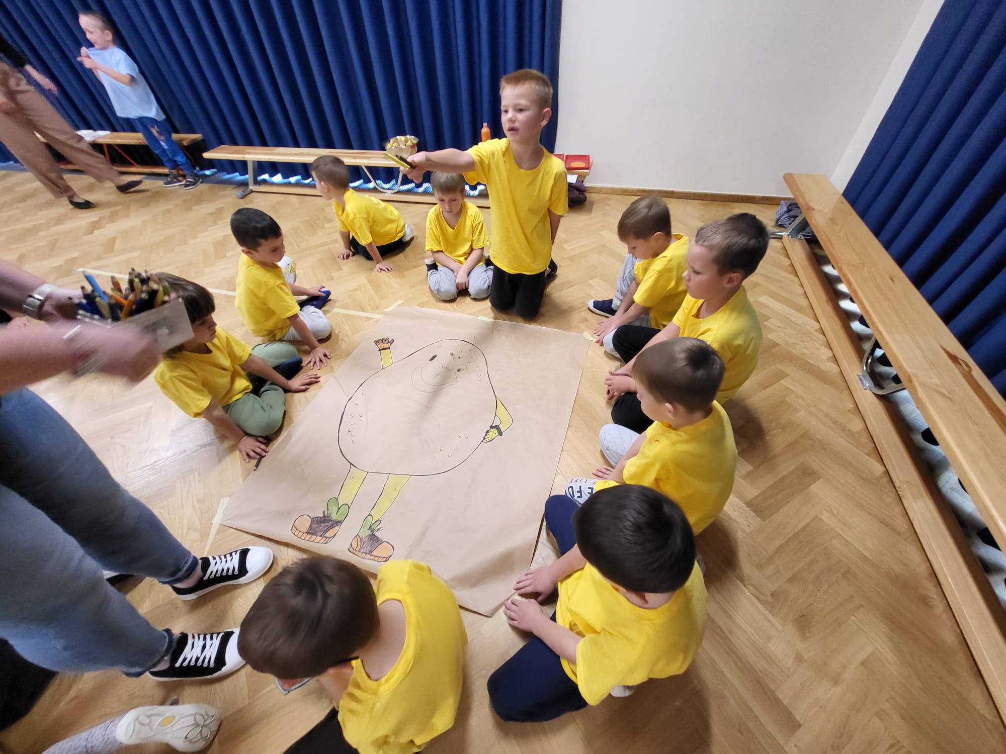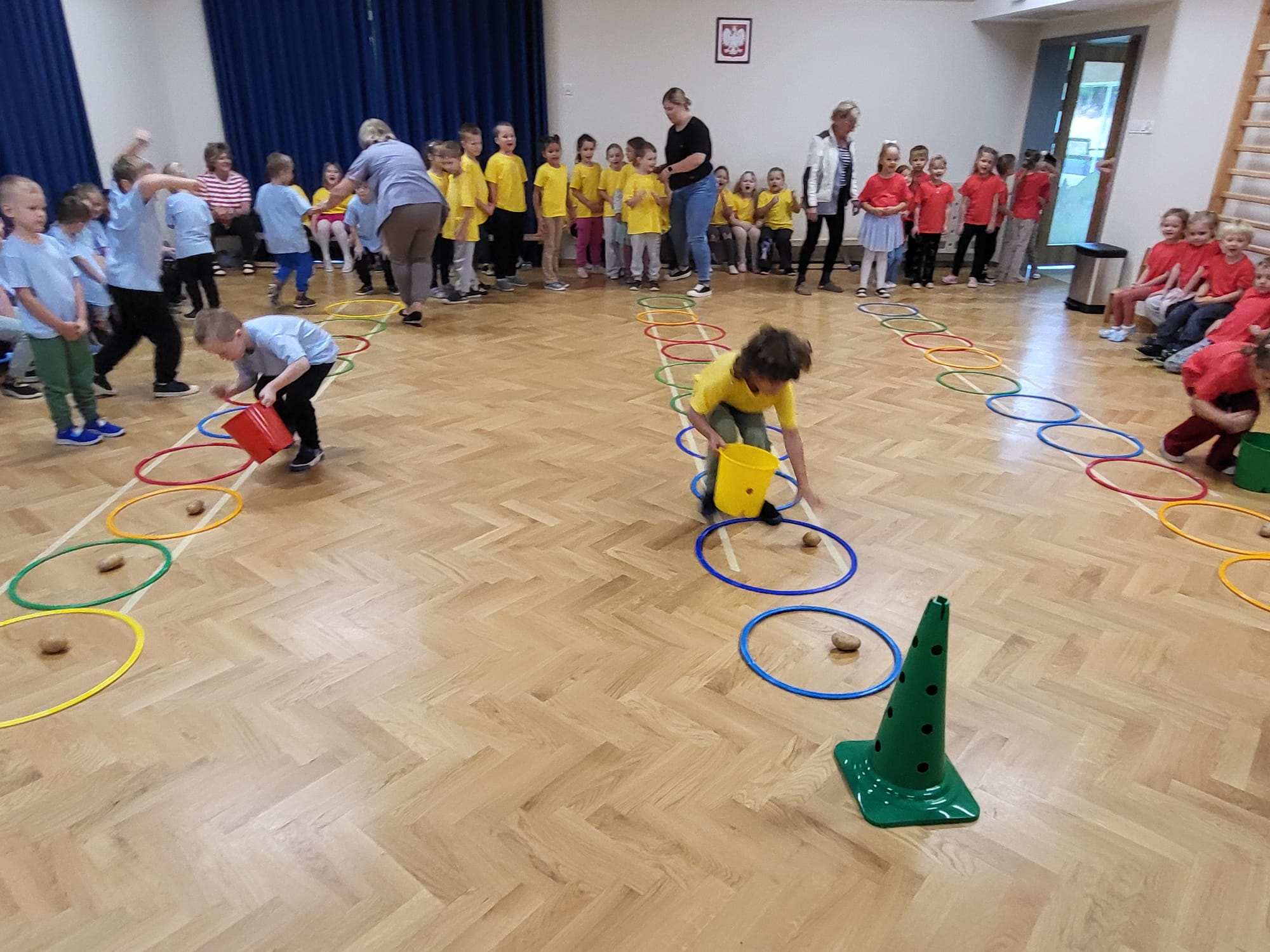 W naszym przedszkolu grupy starsze, w tym „Sowy”, świętowały Dzień Ziemniaka – pełen ruchu, uśmiechu i ciekawych zadań. Dzieci z zapałem uczestniczyły w różnorodnych konkurencjach, takich jak sadzenie i zbieranie ziemniaków, bieg z ziemniakiem na łyżce, łuskanie grochu czy rozpoznawanie owoców i warzyw z zamkniętymi oczami. Wspólna zabawa dostarczyła przedszkolakom wiele radości
